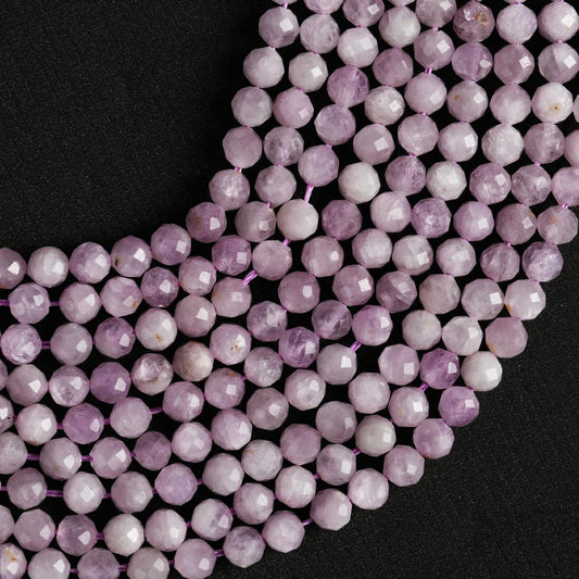 Natural Kunzite Gemstone Round Micro Faceted Beads String 15.5 Inches Long 2/3/4/6 MM for Jewelry Making and Crafting - AS & JG
