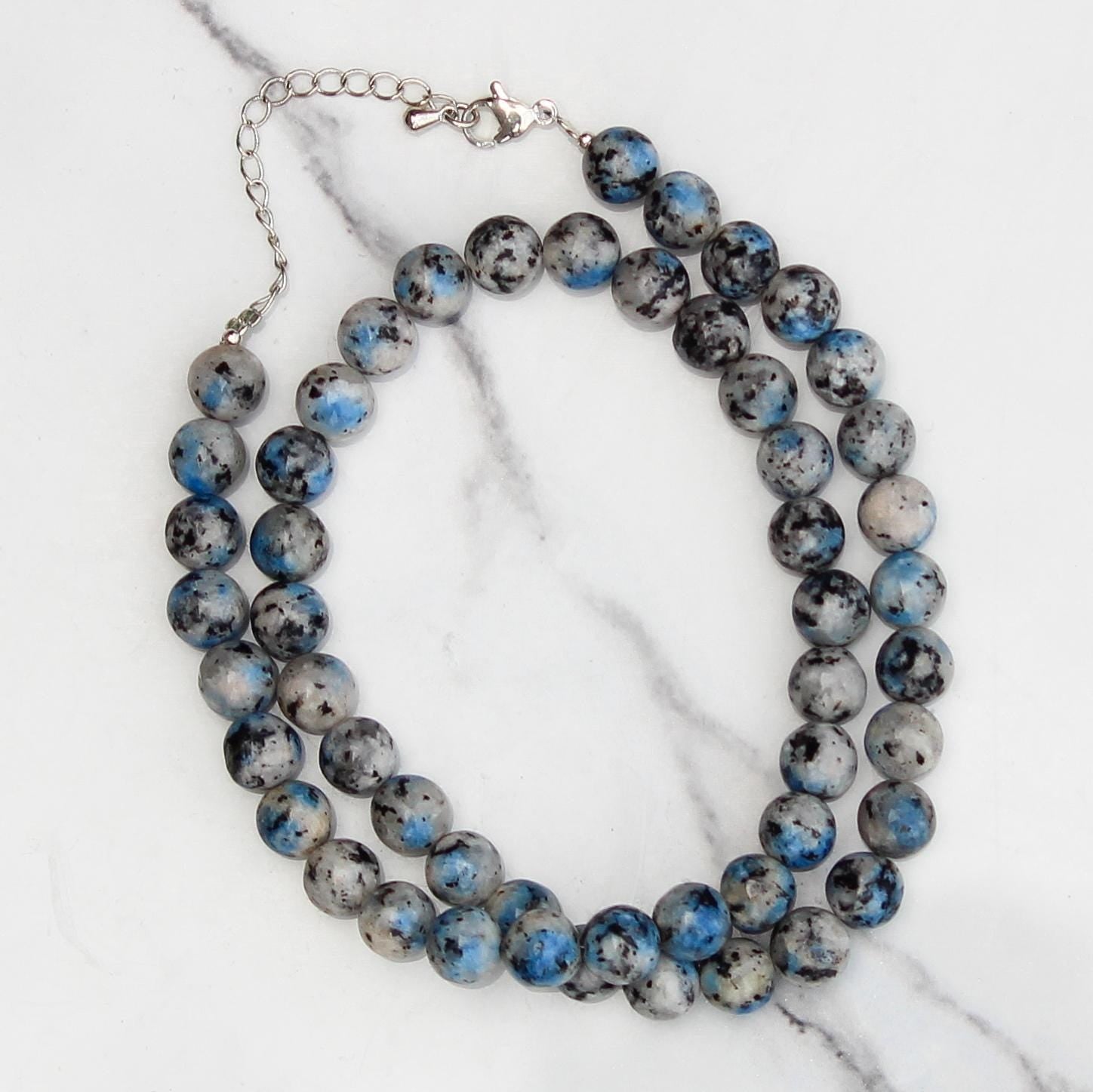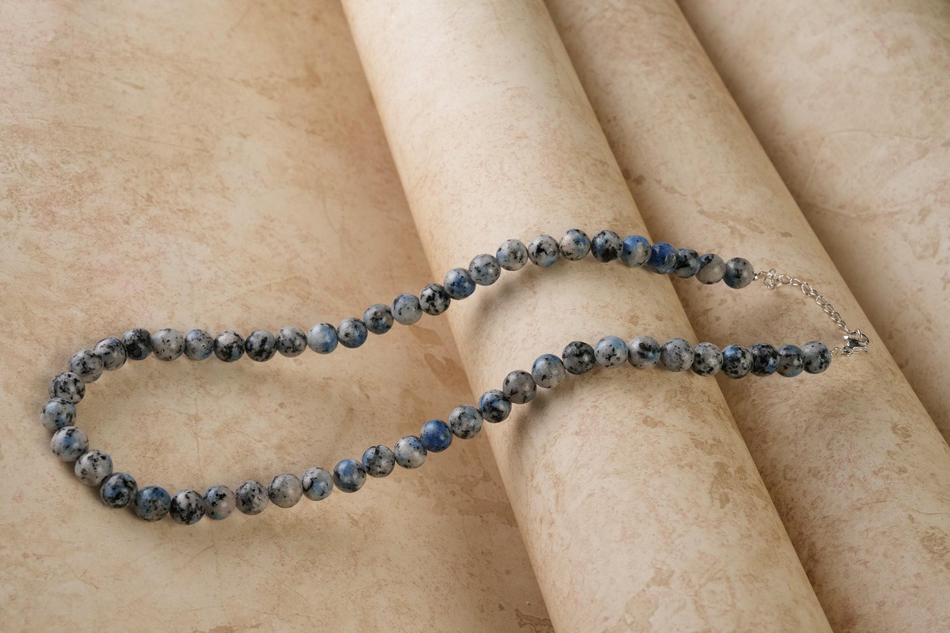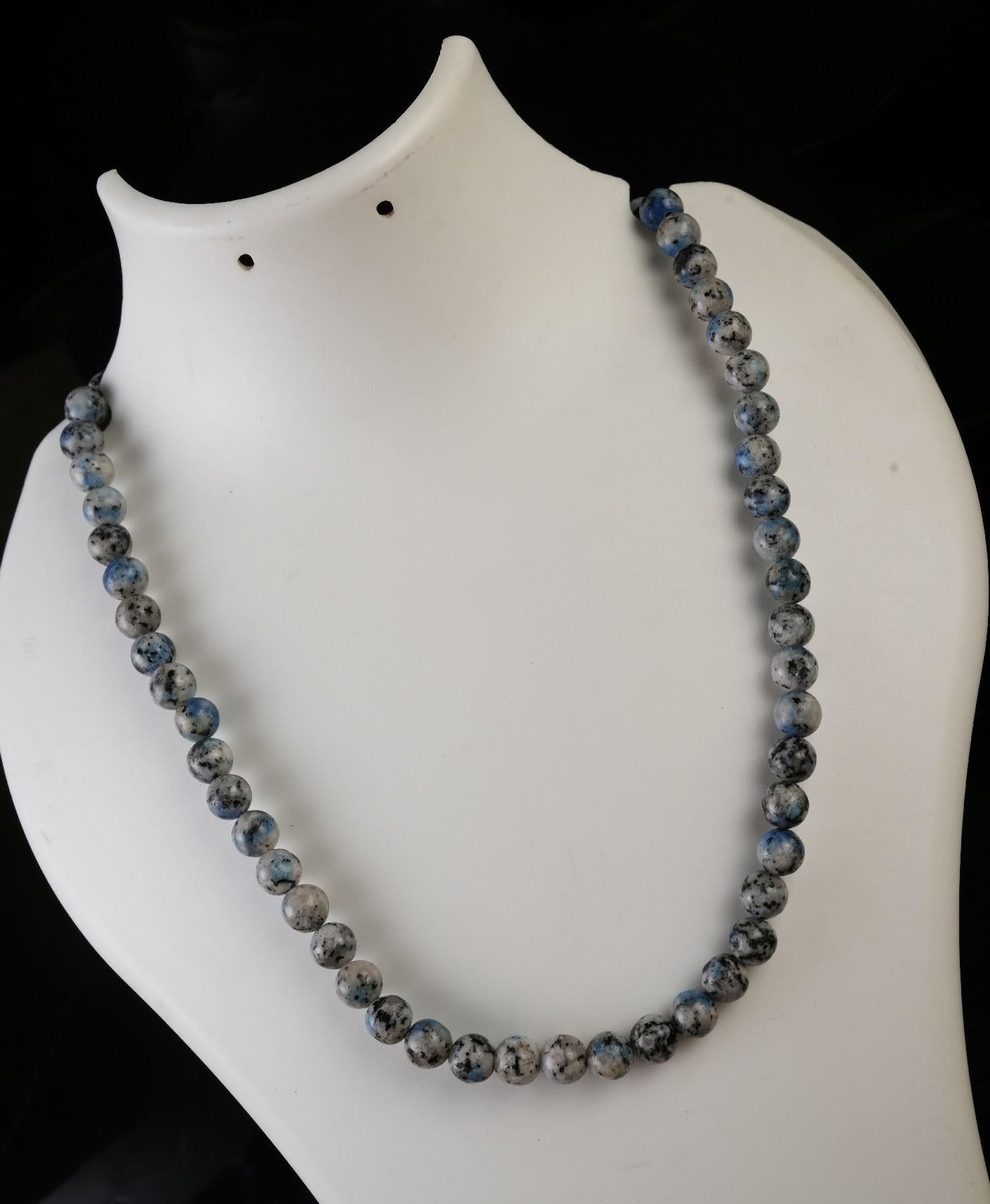 Necklace Length : 16.5 Inches + 2.5 Inches Adjustable Chain- **Premium Quality**: Crafted from genuine K2 Jasper, this necklace showcases the unique beauty of natural stones, ensuring unparalleled quality and durability that lasts a lifetime.- **Mindful Design**: Each 8 MM round smooth bead is meticulously handcrafted, making every necklace a one-of-a-kind piece. The soothing colors and textures promote tranquility and mindfulness in your daily life.- **Adjustable Comfort**: Featuring an adjustable design, this mala necklace can be easily customized to fit any neck size. Enjoy versatility in styling—wear it long or short to suit your mood or outfit!- **Spiritual Connection**: K2 Jasper is known for its grounding properties, helping you stay centered while enhancing spiritual awareness. Wear it during meditation or yoga sessions to deepen your practice and connect with your inner self.- **Thoughtful Gift Choice**: Perfect for birthdays, anniversaries, or just because! This stunning necklace makes a heartfelt gift for the special women in your life who appreciate both style and meaning.Embrace elegance and serenity with our handcrafted Genuine K2 Jasper Beads Necklace—where beauty meets purpose!