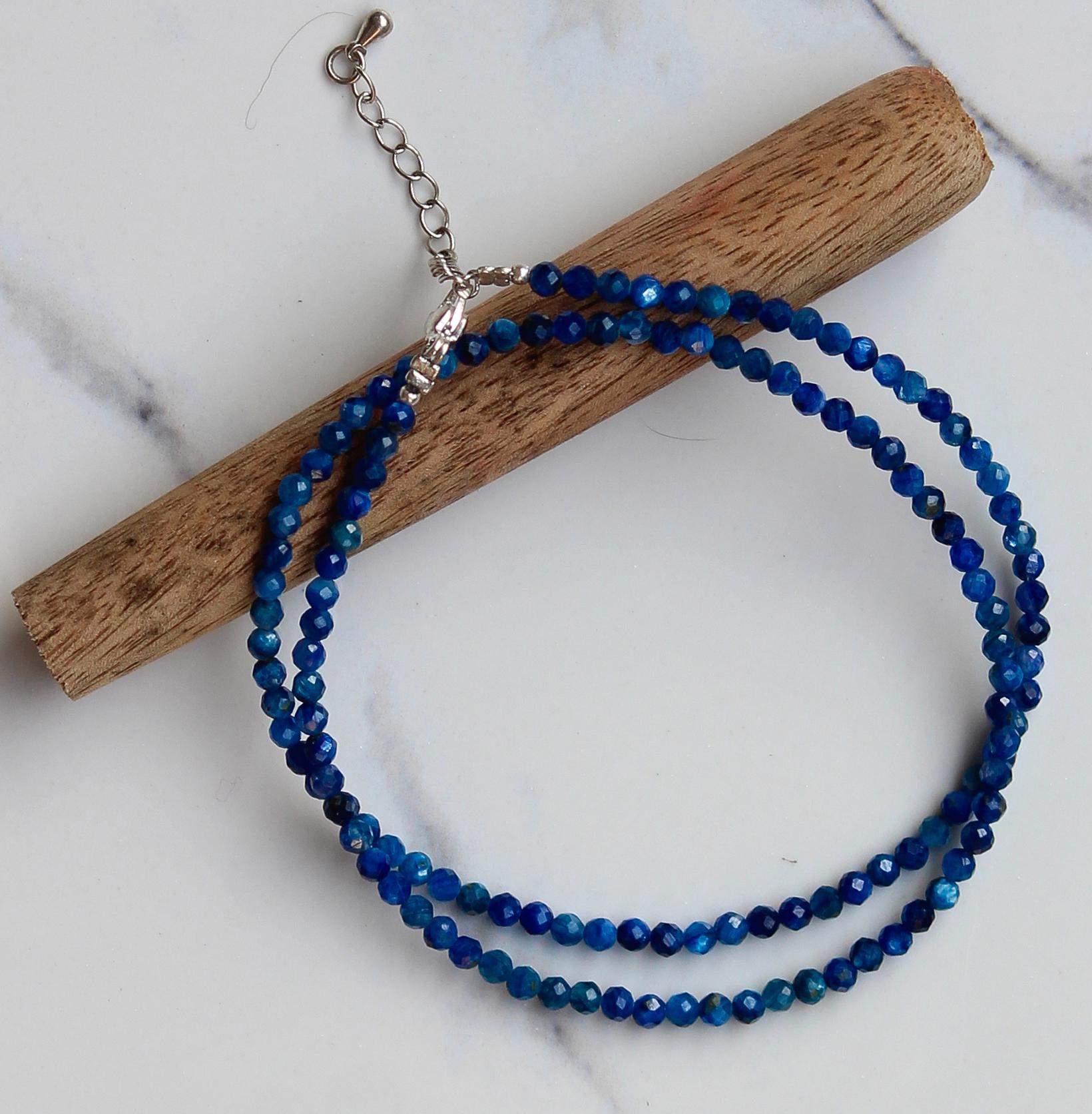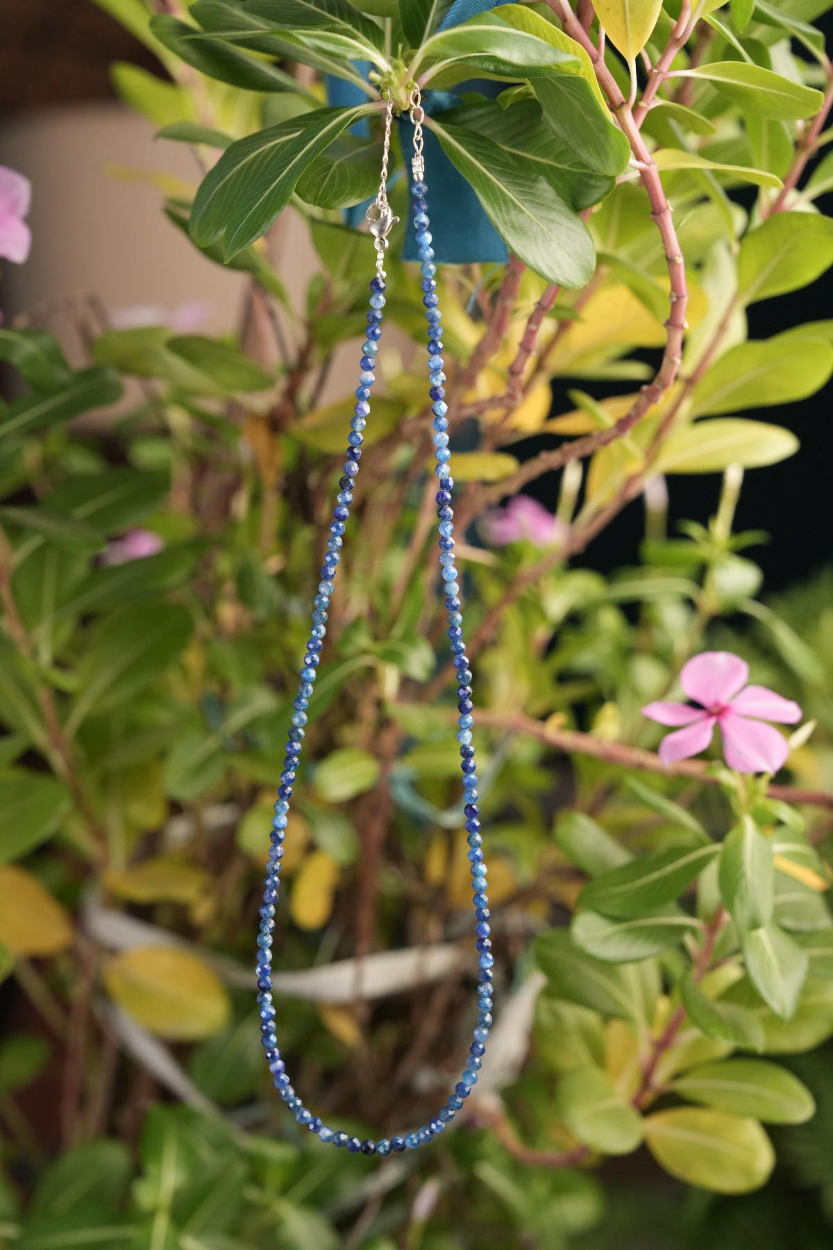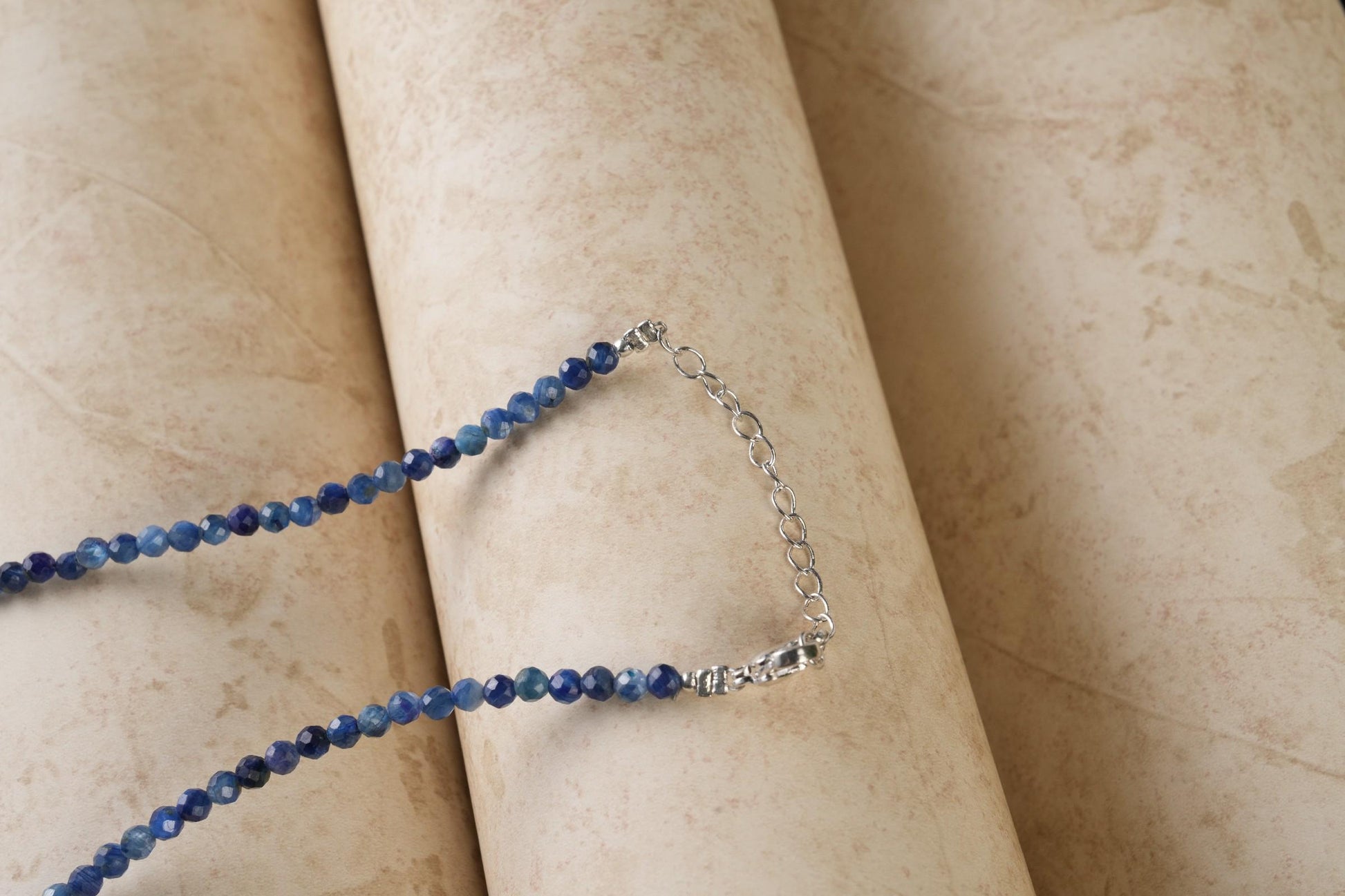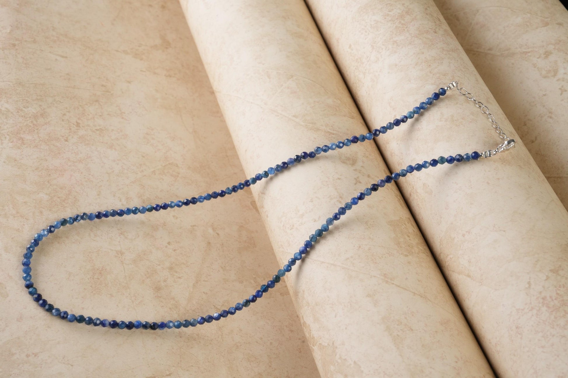 Genuine Kyanite Beads Necklace / Handcrafted Adjustable Mala Necklace / 3 MM Round Micro Faceted Beaded Necklace Jewelry - AS & JG