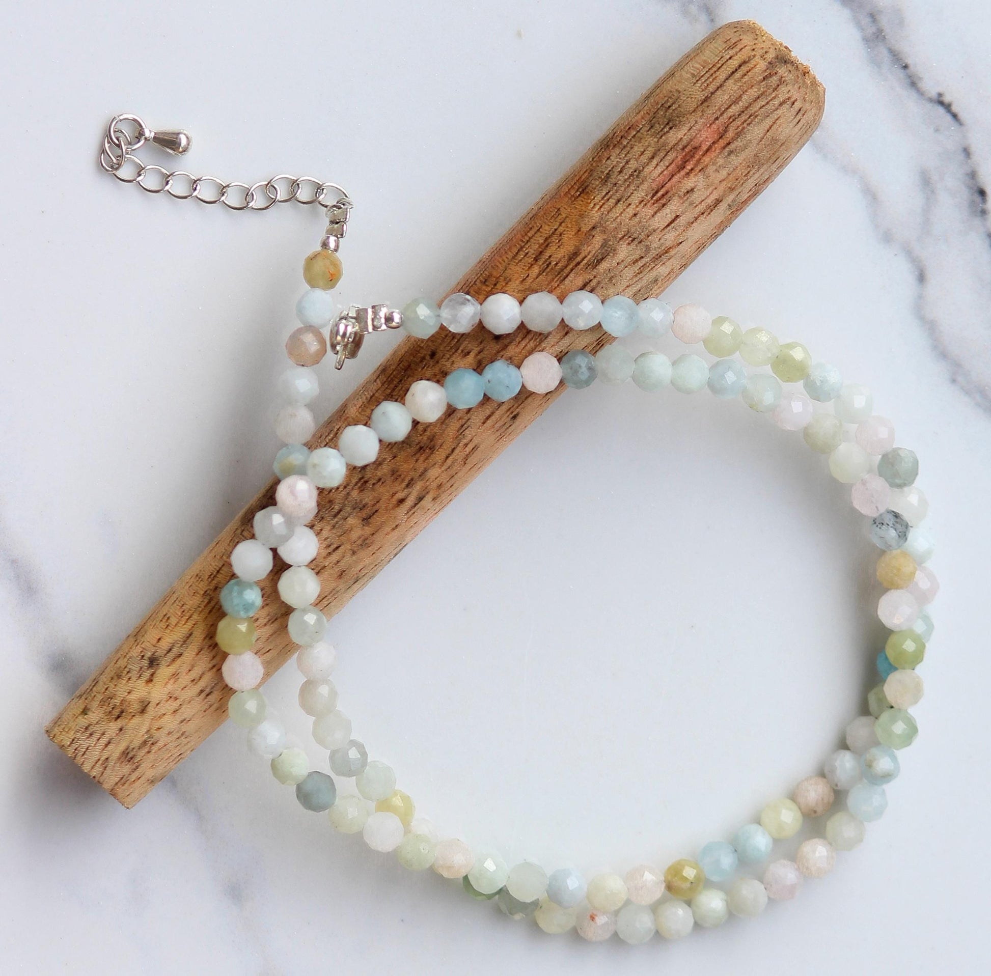 Genuine Morganite Beads Necklace / Handcrafted Adjustable Mala Necklace / 3 MM Round Micro Faceted Beaded Necklace Jewelry - AS & JG