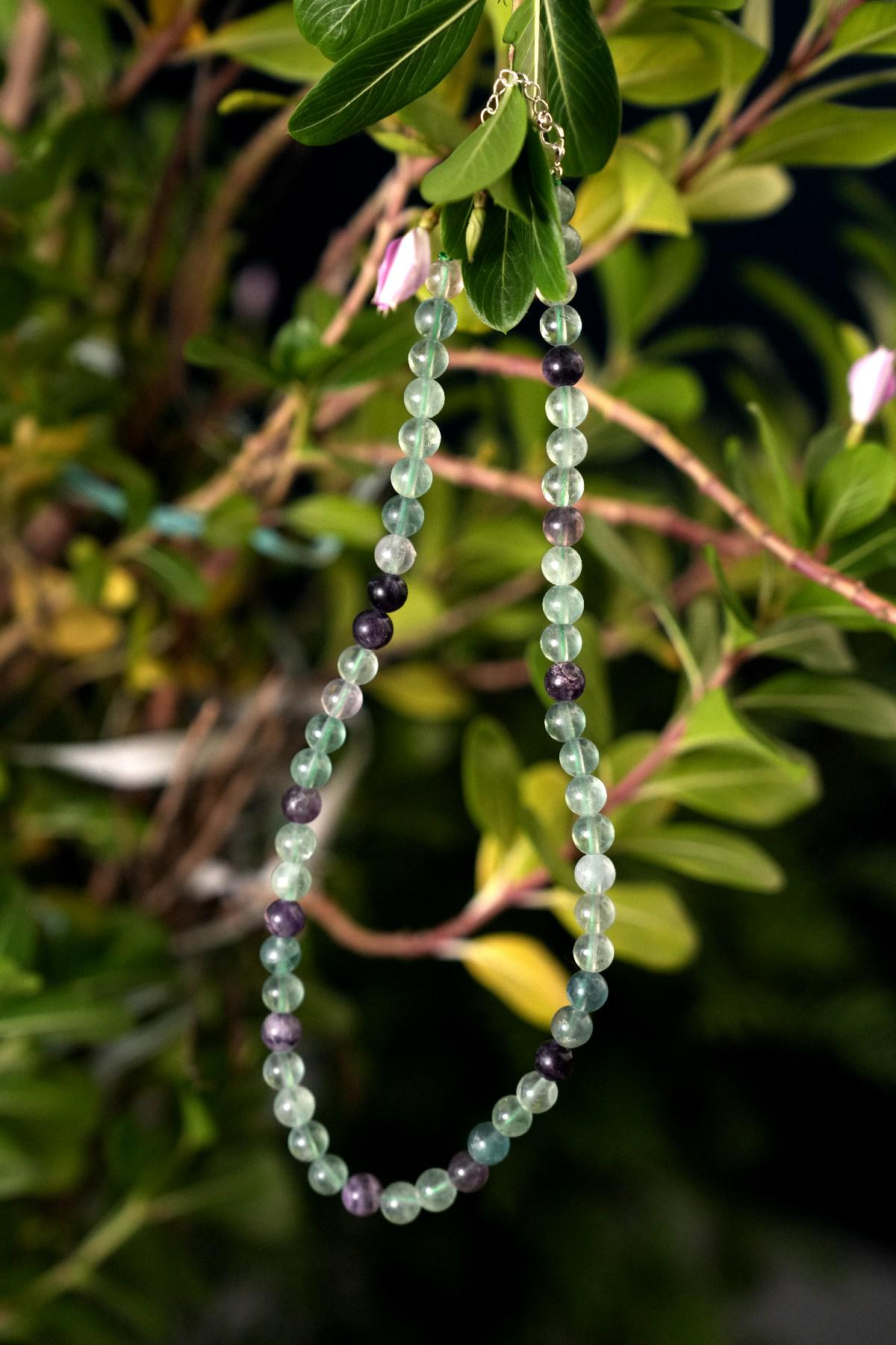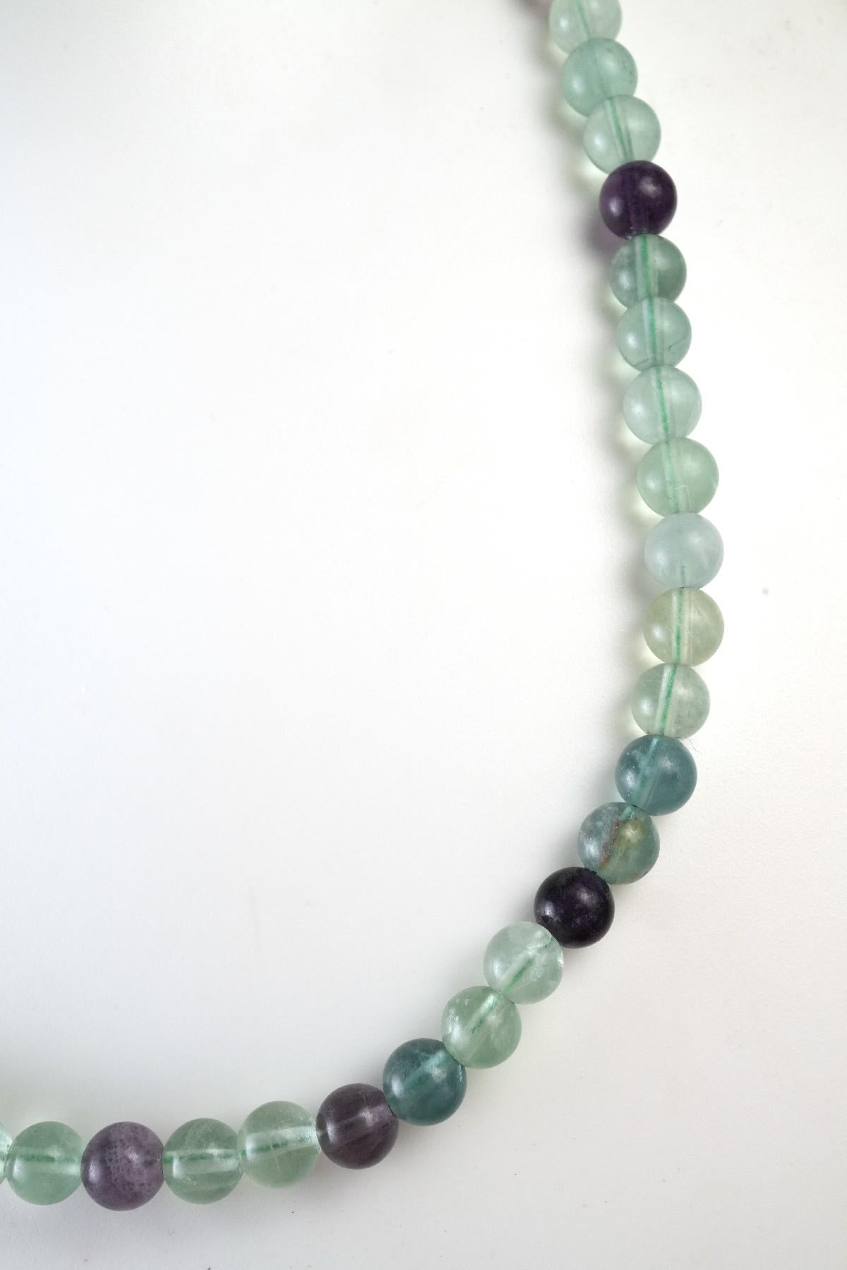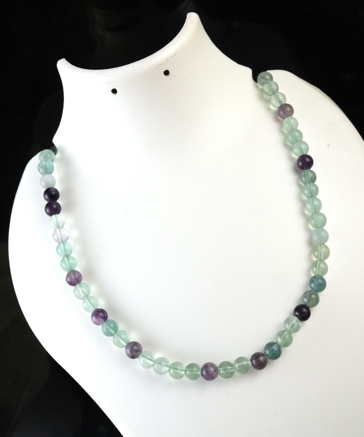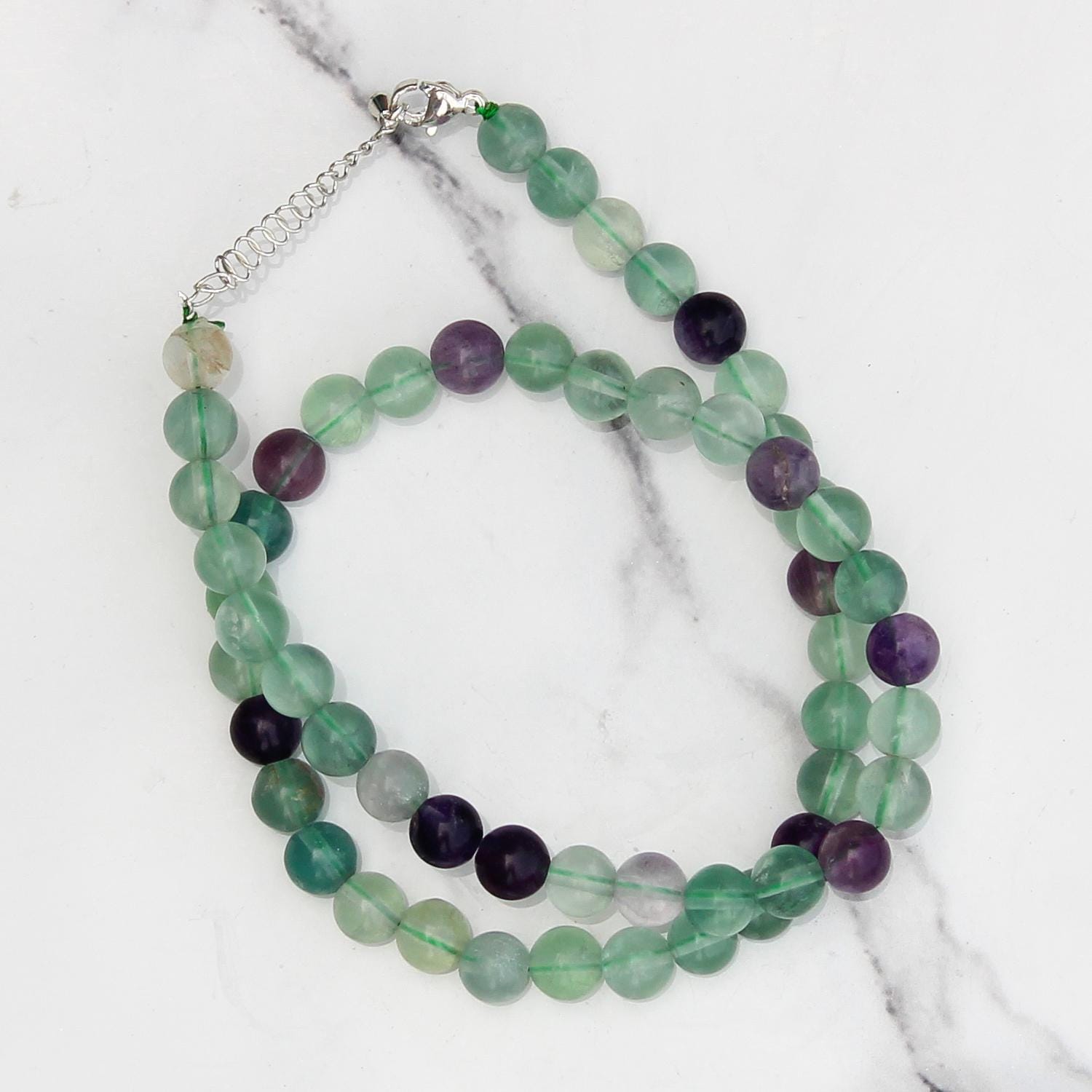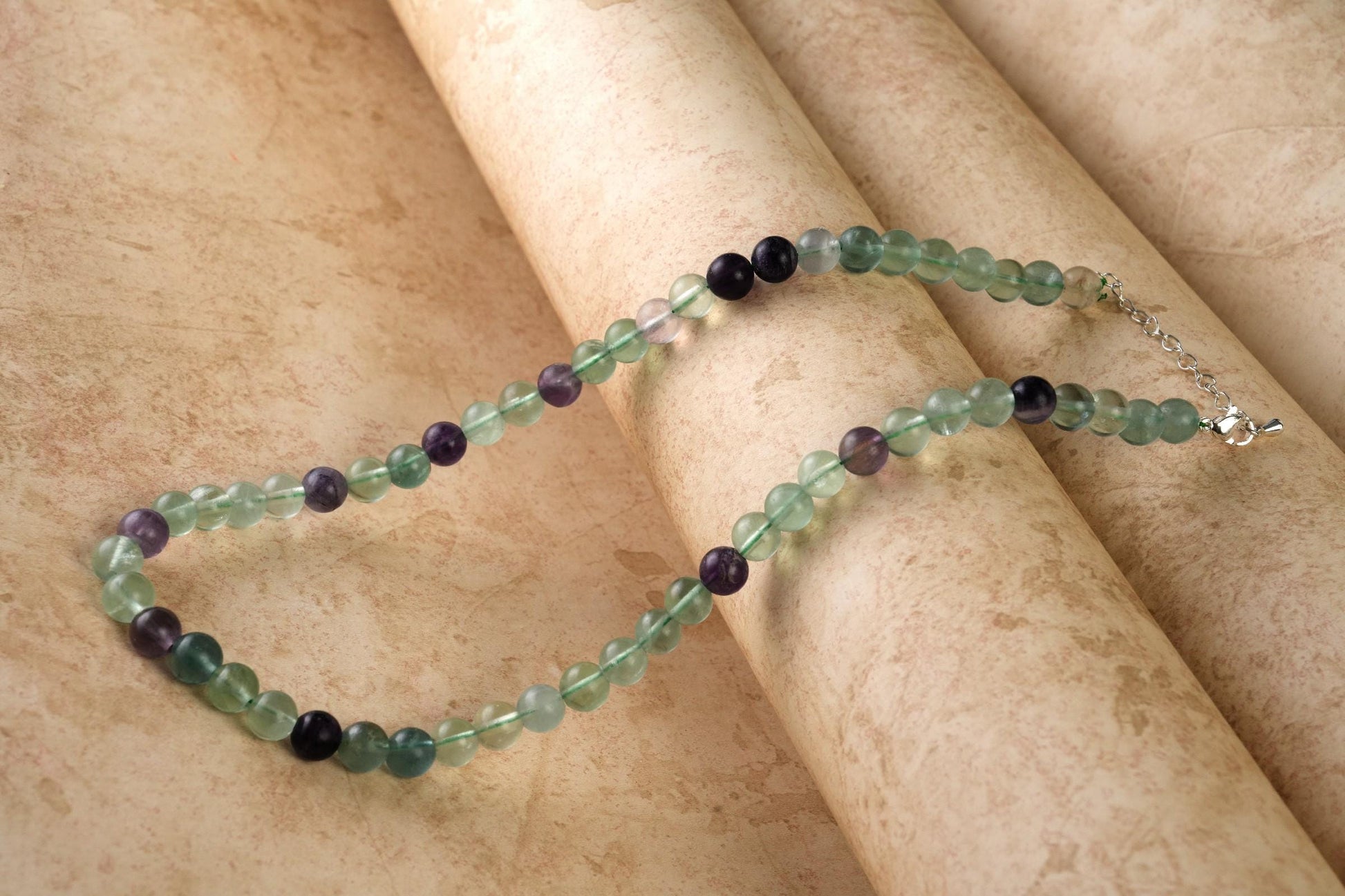 Necklace Length : 16.5 Inches + 2.5 Inches Adjustable Chain- **Premium Quality:** Crafted from genuine multi fluorite beads, this necklace promises exceptional quality and durability. Each bead is carefully selected to ensure you receive a piece that stands the test of time.- **Healing Properties:** Embrace the calming energy of fluorite! Known for its ability to promote clarity and balance, wearing this necklace can help enhance your focus and emotional well-being throughout your day.- **Adjustable Design:** The handcrafted adjustable feature allows you to wear it at your preferred length, making it versatile enough for any occasion—whether dressing up for a night out or adding flair to your everyday look.- **Artisan Craftsmanship:** Each 8 mm round smooth bead is meticulously strung together by skilled artisans, resulting in a stunning piece that reflects both elegance and individuality. The unique color variations in each bead make every necklace one-of-a-kind!- **Perfect Gift Choice:** Looking for a thoughtful gift? This mala necklace is an ideal choice for birthdays, anniversaries, or just because! Its beauty and meaningful properties make it a cherished addition to anyone's jewelry collection.Elevate your style while embracing tranquility with our Genuine Multi Fluorite Beads Necklace—where beauty meets purpose!