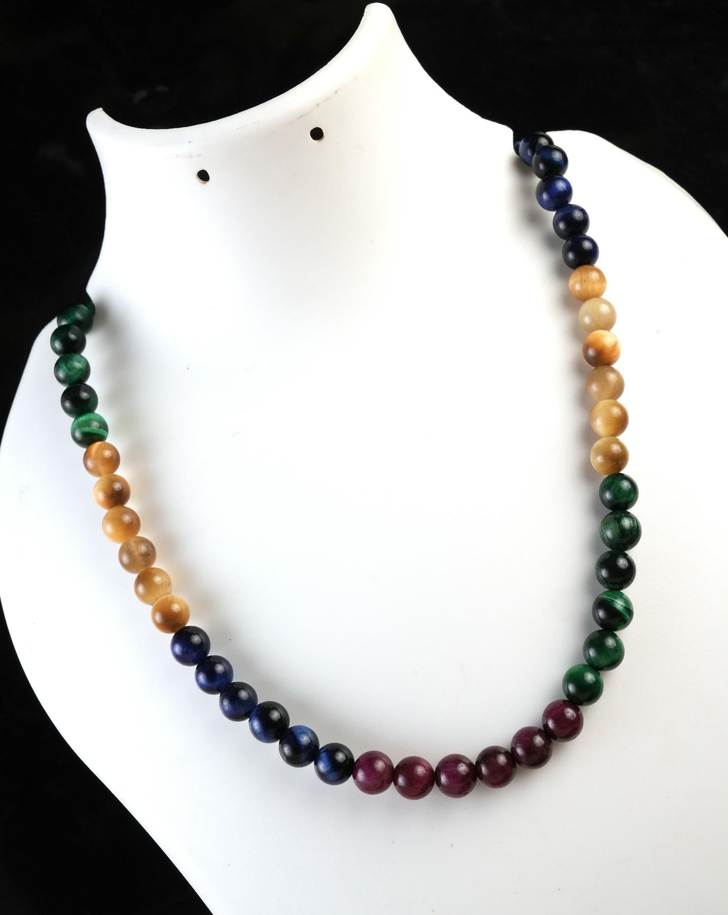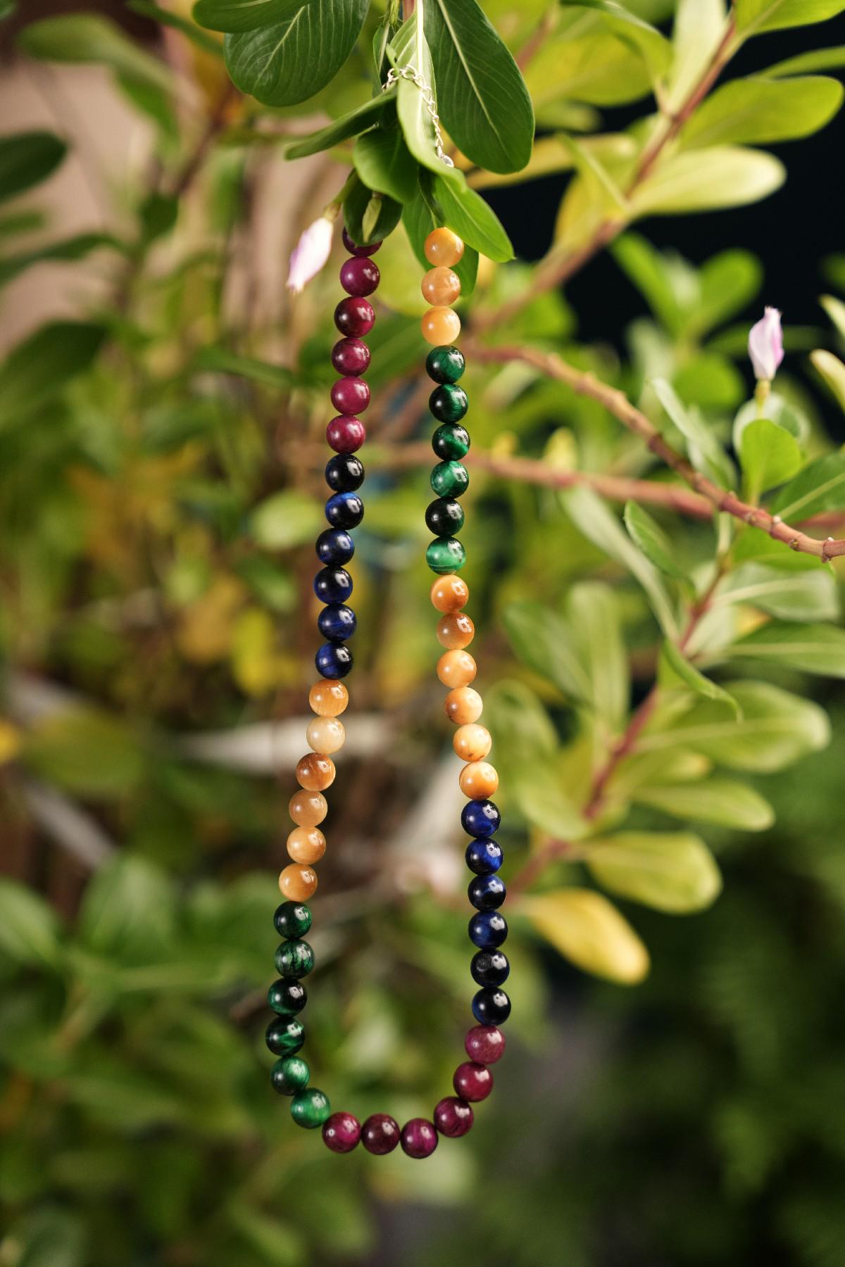 ### Genuine Multi Tiger's Eye Beads Necklace