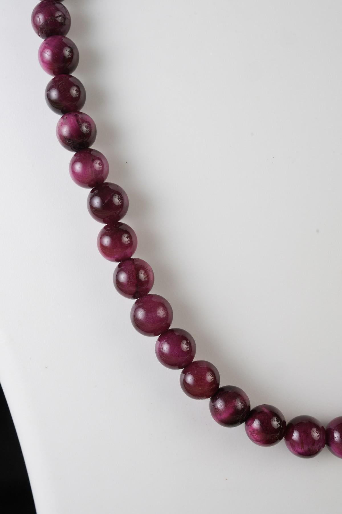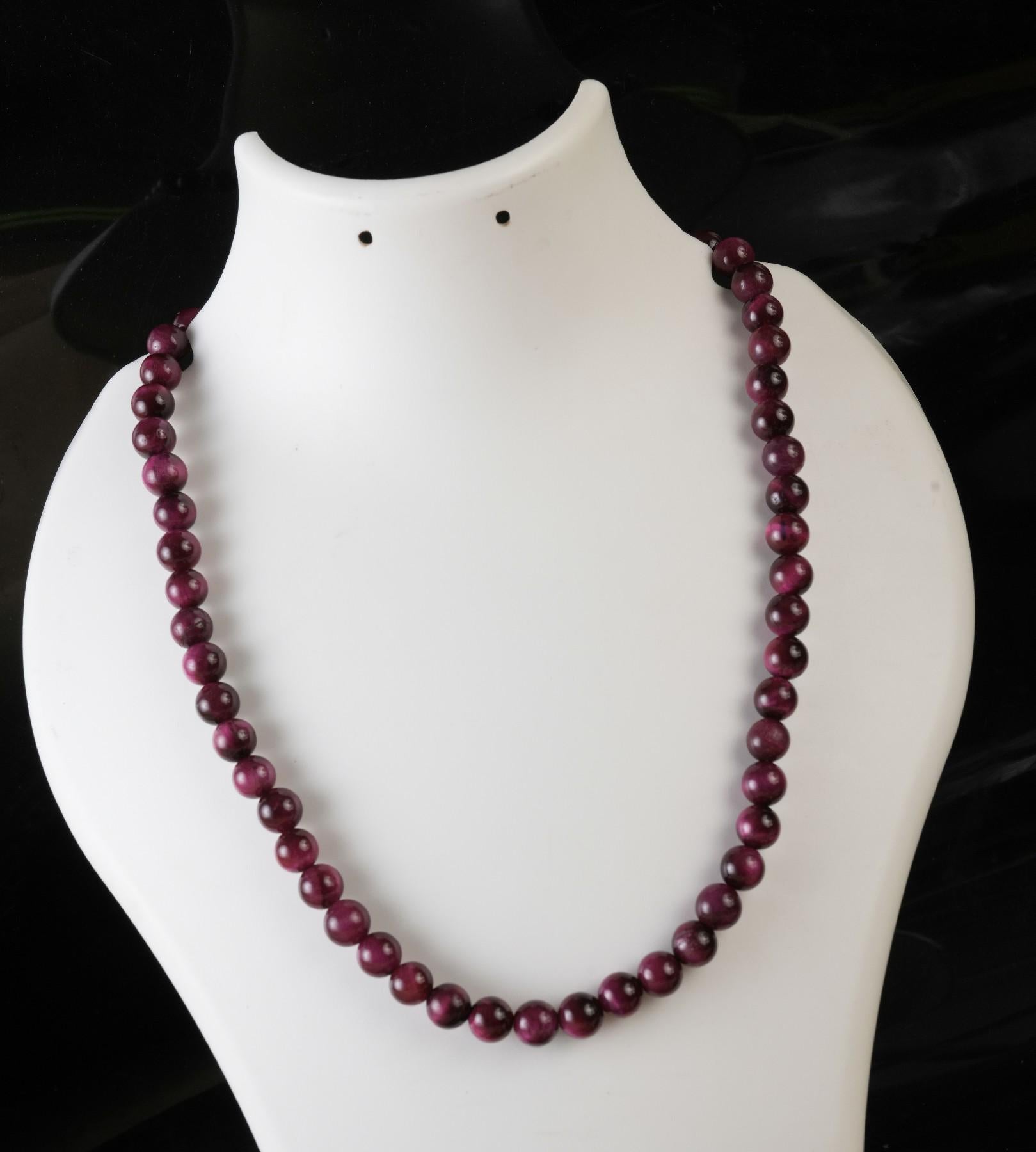 Necklace Length : 16.5 Inches + 2.5 Inches Adjustable Chain- **Premium Quality**: Crafted from genuine Pink Tiger's Eye, this necklace boasts top-tier materials that ensure both durability and elegance. Enjoy a piece of jewelry that stands the test of time while radiating beauty.- **Mindful Design**: Each 8 MM round bead is meticulously handcrafted to create a smooth, luxurious feel against your skin. This adjustable mala necklace not only enhances your style but also serves as a reminder for mindfulness and meditation in your daily life.- **Versatile Wear**: Whether you're dressing up for a special occasion or adding flair to your everyday outfit, this necklace adapts effortlessly. Its adjustable design allows you to customize the length for any neckline, making it the perfect accessory for every wardrobe.- **Aesthetic Appeal**: The warm hues of Pink Tiger's Eye bring a touch of tranquility and positivity. This stunning color palette complements various outfits, making it an essential addition to your jewelry collection.- **Empowering Energy**: Known for its protective properties, Pink Tiger’s Eye promotes confidence and clarity. Wearing this necklace can help you embrace challenges with courage while attracting good fortune into your life—perfect for those seeking balance and strength.Elevate your jewelry game with our Genuine Pink Tiger's Eye Beads Necklace—a beautiful blend of style, meaning, and versatility that will resonate deeply with you!
