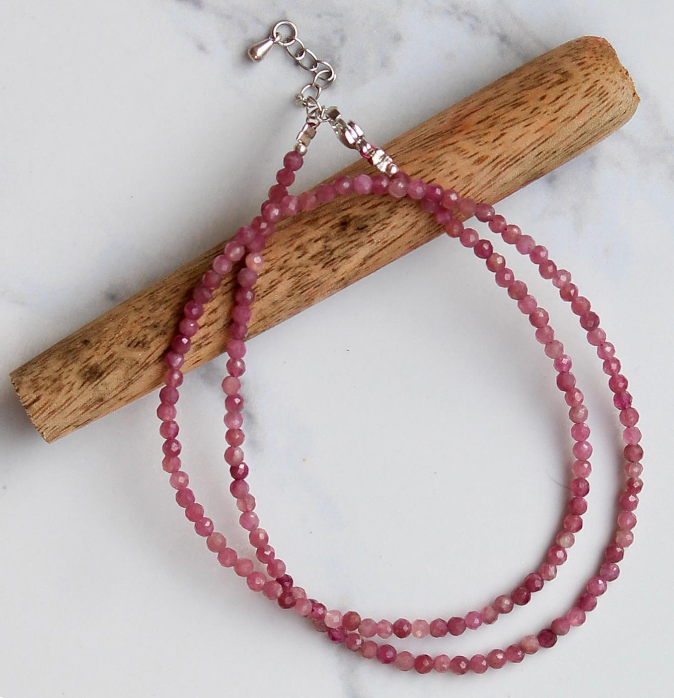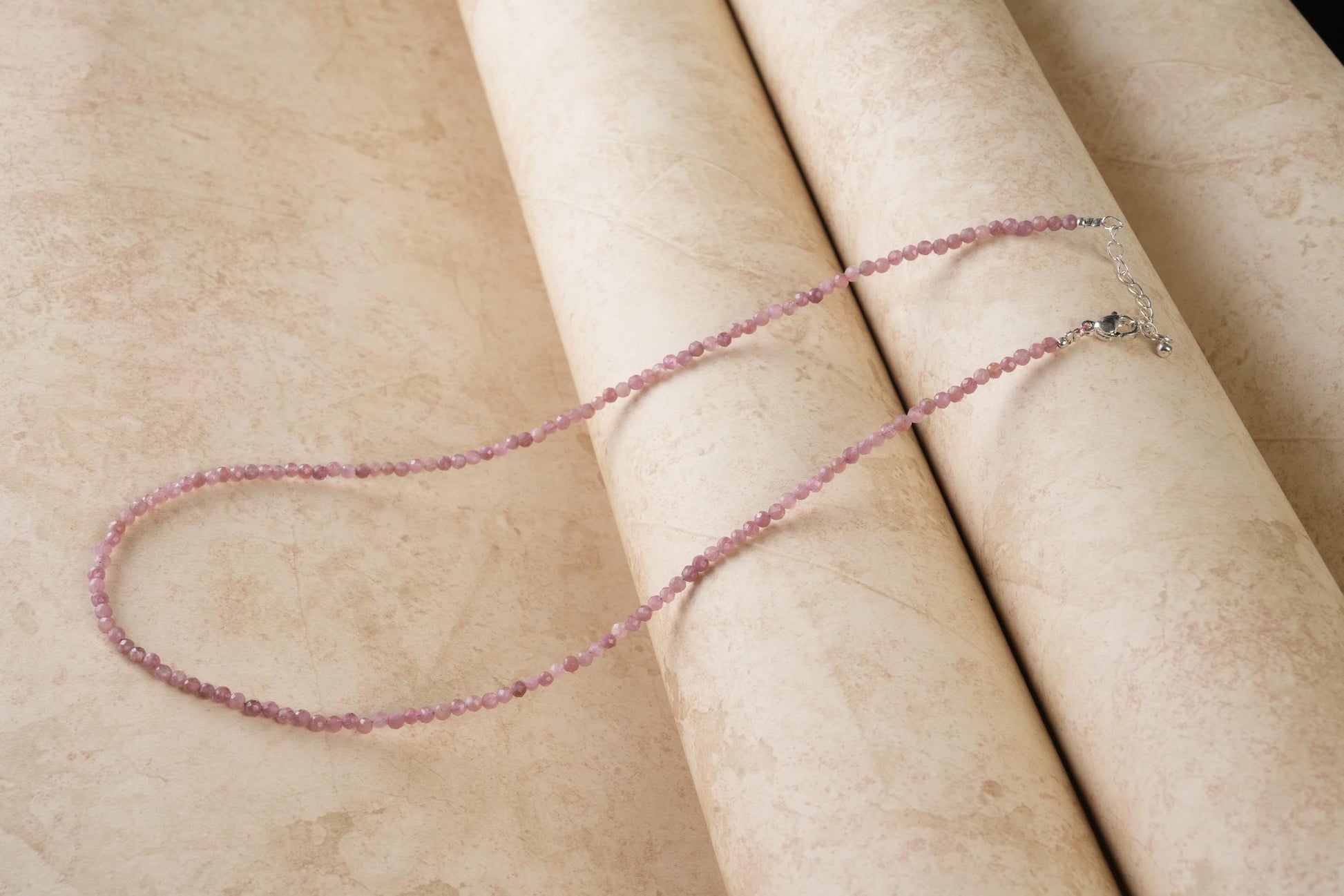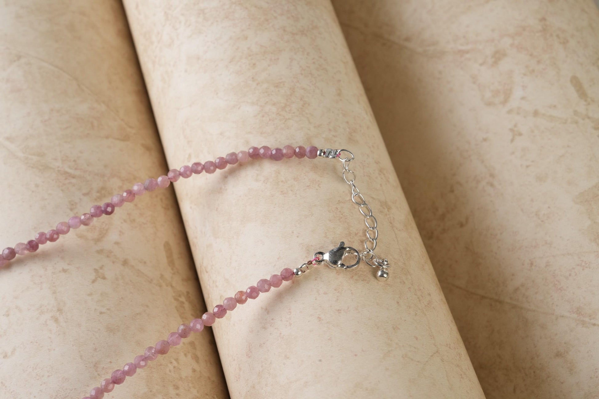 Genuine Pink Tourmaline Beads Necklace / Handcrafted Adjustable Mala Necklace / 3 MM Round Micro Faceted Beaded Necklace Jewelry - AS & JG