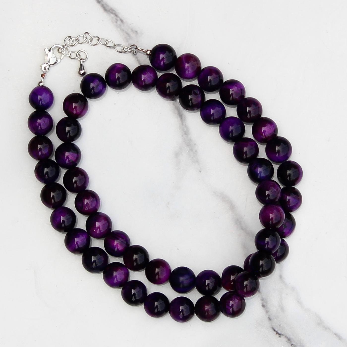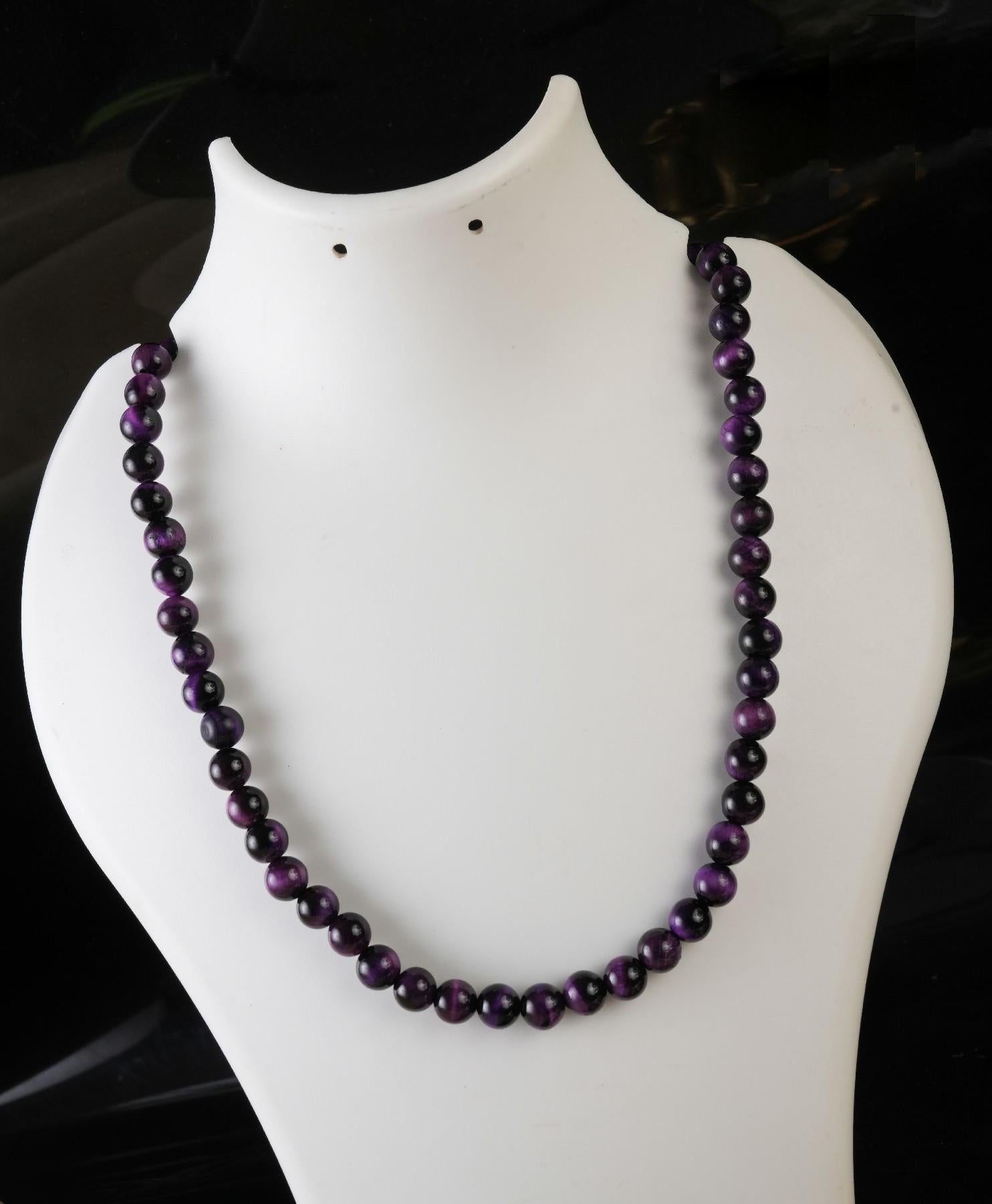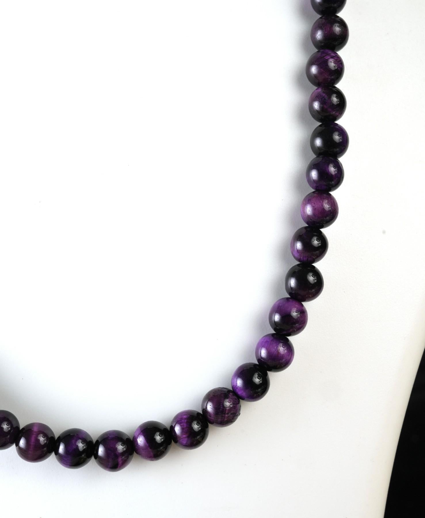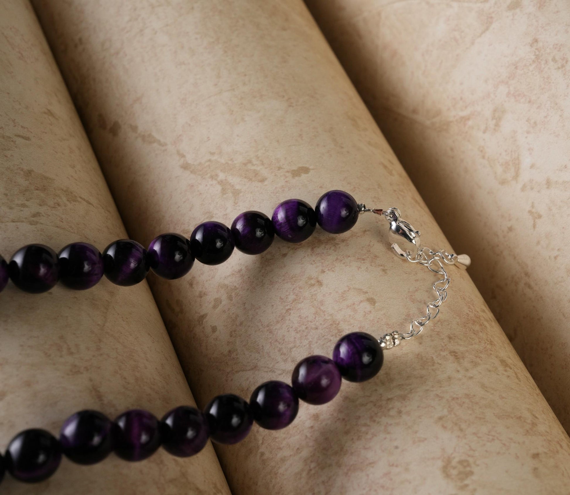Necklace Length : 16.5 Inches + 2.5 Inches Adjustable Chain- **Premium Quality:** Crafted from genuine purple tiger's eye, this necklace boasts unparalleled quality and durability, ensuring it remains a cherished piece in your jewelry collection for years to come.- **Healing Properties:** Embrace the calming energy of purple tiger's eye, known for its grounding and protective qualities. This necklace not only enhances your style but also promotes emotional balance and clarity in daily life.- **Handcrafted Elegance:** Each bead is meticulously handcrafted, featuring 8 MM round smooth beads that radiate sophistication. The artisanal touch ensures that no two necklaces are alike, making yours truly one-of-a-kind.- **Adjustable Comfort:** Designed with an adjustable feature, this mala necklace allows you to customize the fit for maximum comfort. Whether you prefer a snug or loose fit, it's perfect for any occasion—dress it up or wear it casually!- **Versatile Style Statement:** Effortlessly transition from day to night with this stunning accessory. Pair it with a simple tee or an elegant dress; its rich purple hues add a pop of color while complementing any outfit beautifully.- **Thoughtful Gift Idea:** Looking for the perfect gift? This handcrafted mala necklace makes an ideal present for birthdays, anniversaries, or just because! Share the beauty and benefits of genuine gemstones with someone special in your life.Elevate your jewelry game and embrace the unique charm of our Genuine Purple Tiger's Eye Beads Necklace today!