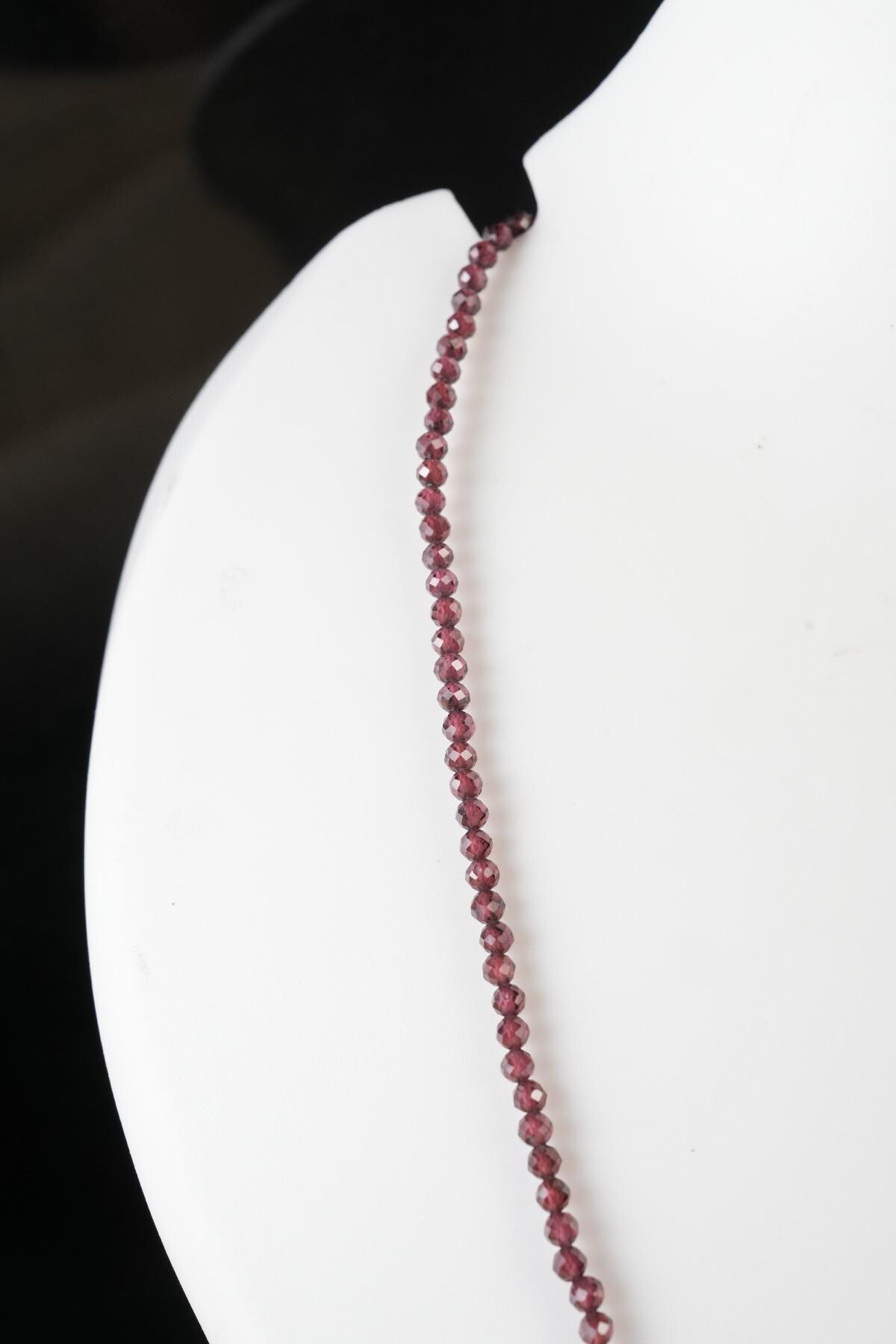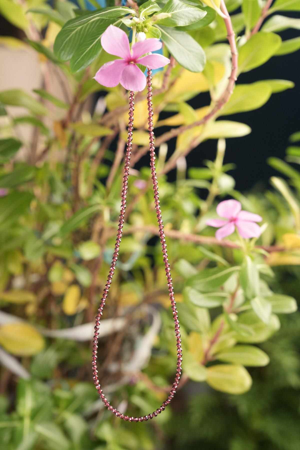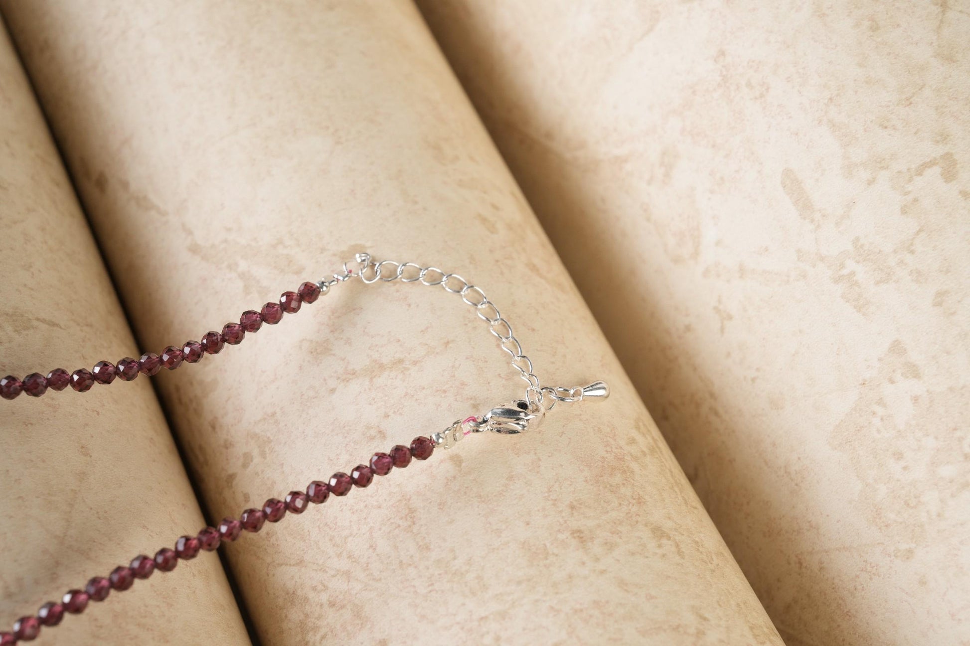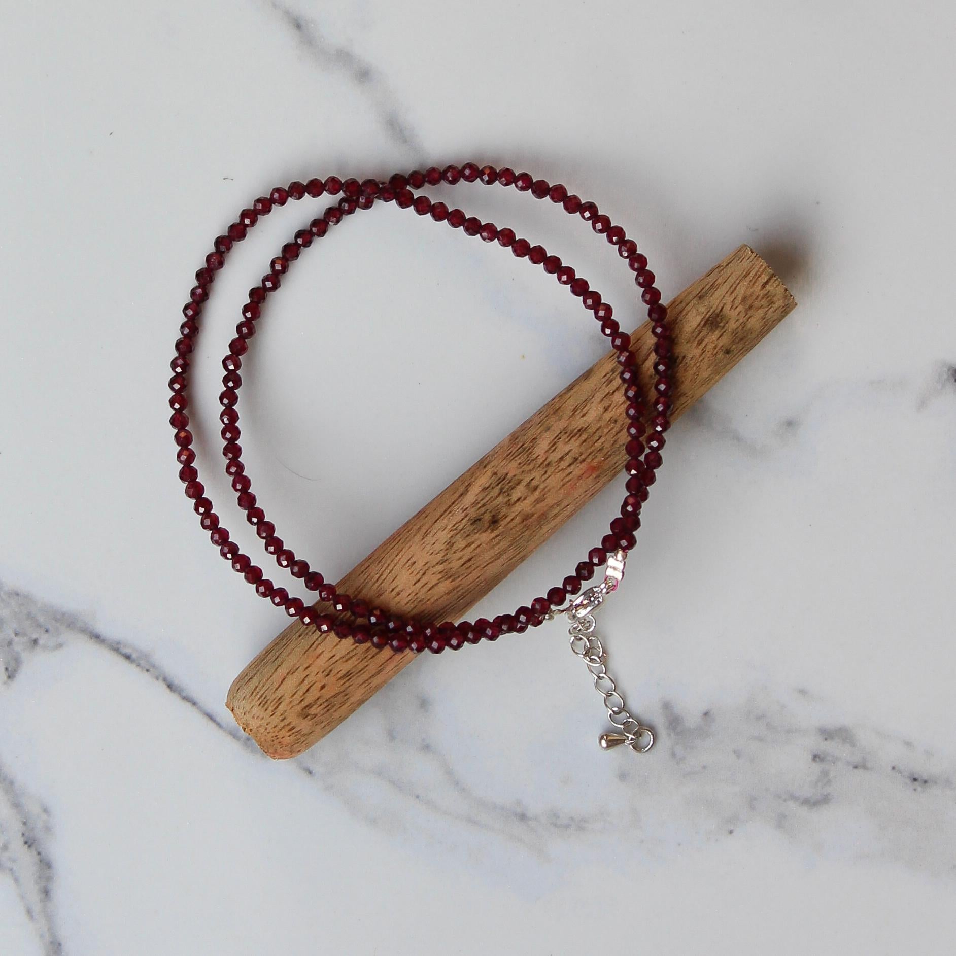 Necklace Length : 16.5 Inches + 2.5 Inches Adjustable Chain- **Premium Quality:** Crafted from genuine garnet beads, this necklace offers unparalleled quality and durability. Each bead is meticulously selected to ensure a stunning finish that stands the test of time.- **Elegant Versatility:** The handcrafted adjustable design allows you to wear this mala necklace at your preferred length, making it perfect for layering or wearing solo. Whether dressing up for a special occasion or adding flair to your everyday outfit, this piece adapts effortlessly.- **Micro Faceted Brilliance:** Featuring 3 MM round micro faceted beads, the intricate cuts catch and reflect light beautifully. This adds a dazzling sparkle that elevates your style while promoting positive energy and grounding.- **Artisan Craftsmanship:** Every necklace is lovingly handcrafted by skilled artisans, ensuring each piece is unique. The attention to detail in the craftsmanship not only enhances its beauty but also connects you with the artistry behind every strand.- **Empowering Energy:** Garnet is known as a stone of passion and vitality. Wearing this necklace can help boost your confidence and inspire motivation in daily life—making it more than just an accessory; it's a source of empowerment.Embrace elegance and intention with our Genuine Garnet Beads Necklace—a timeless addition that resonates with both beauty and purpose!