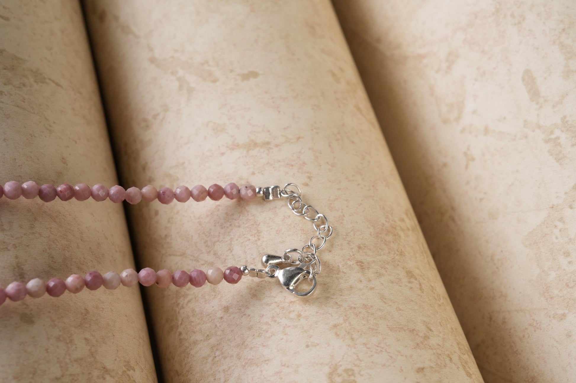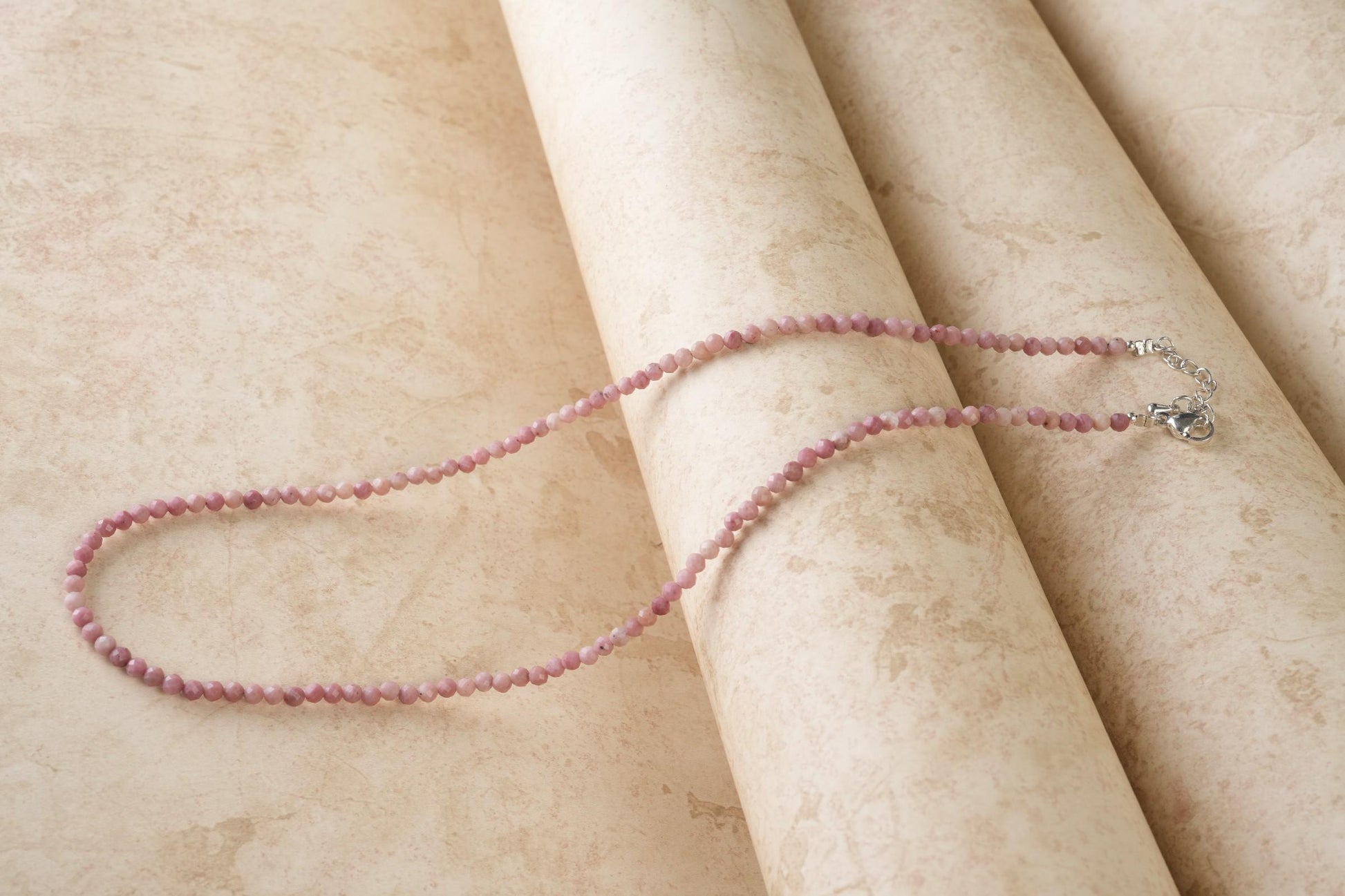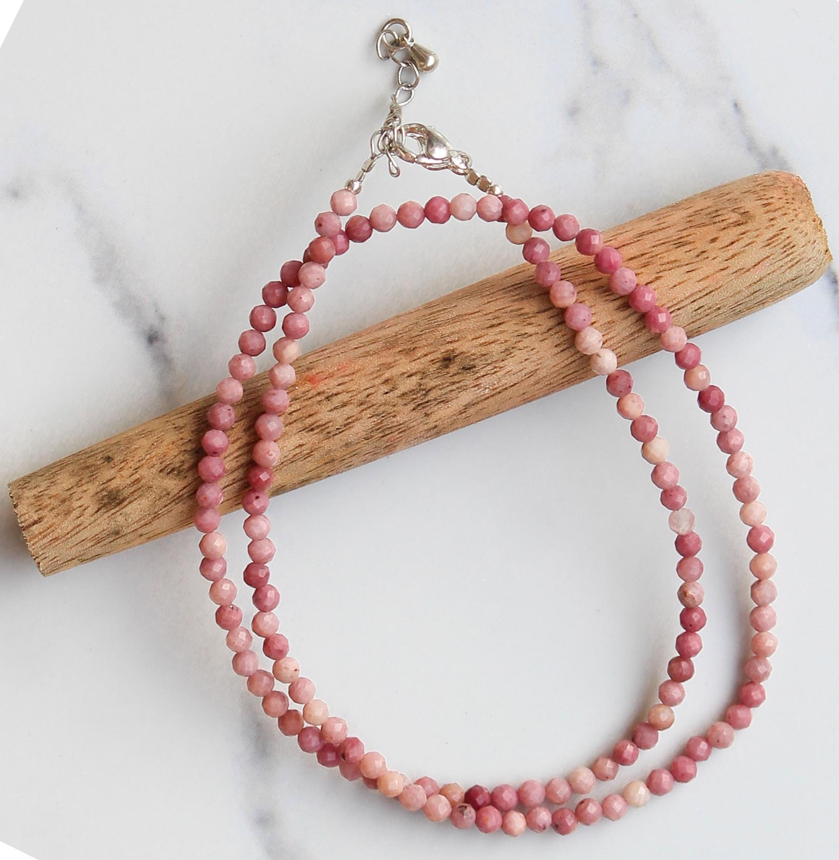 Genuine Rhodonite Beads Necklace / Handcrafted Adjustable Mala Necklace / 3 MM Round Micro Faceted Beaded Necklace Jewelry - AS & JG