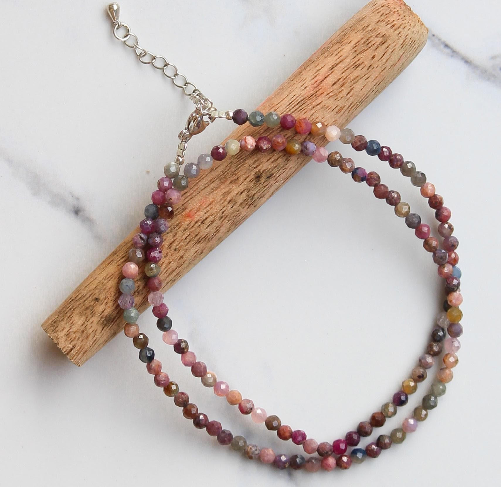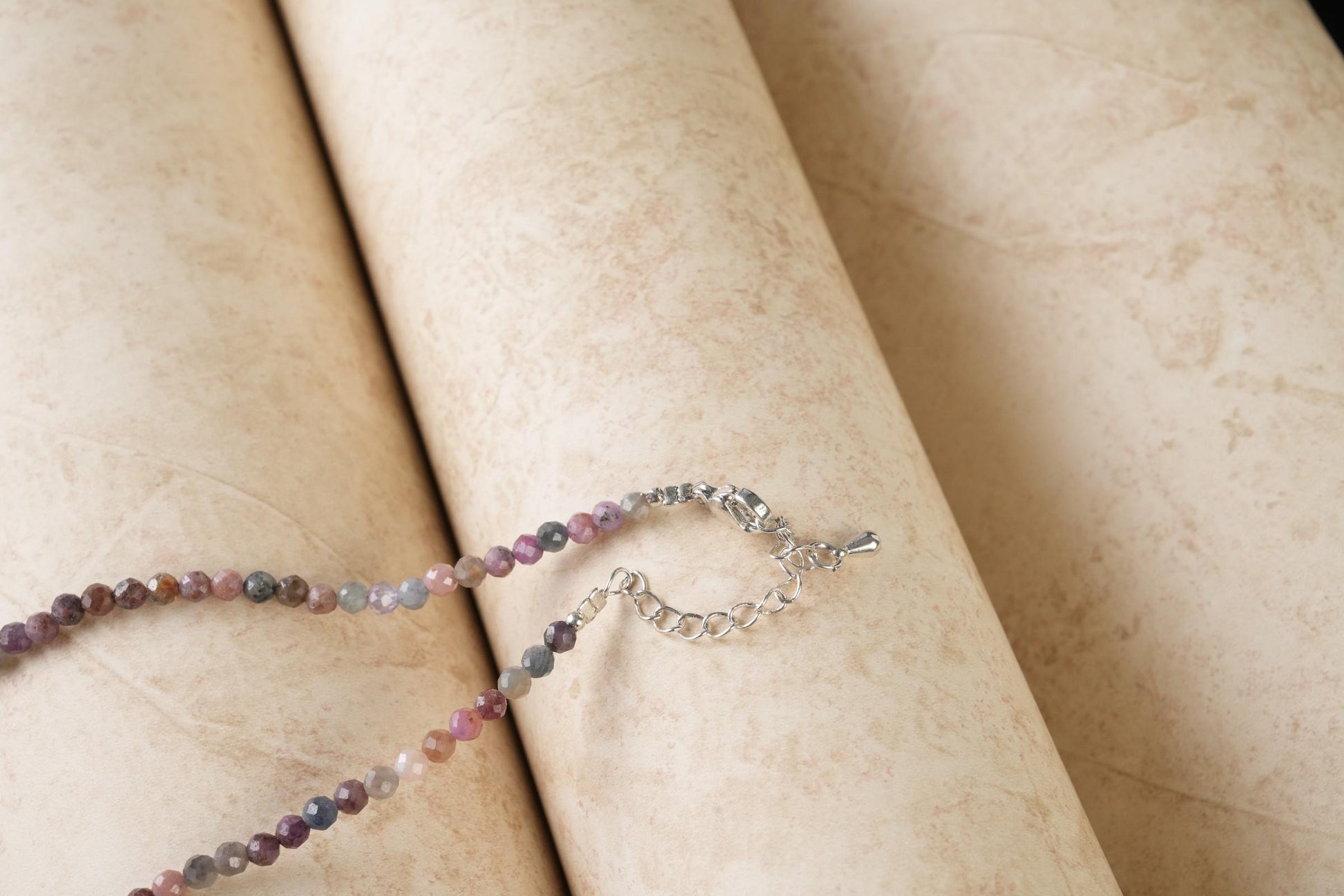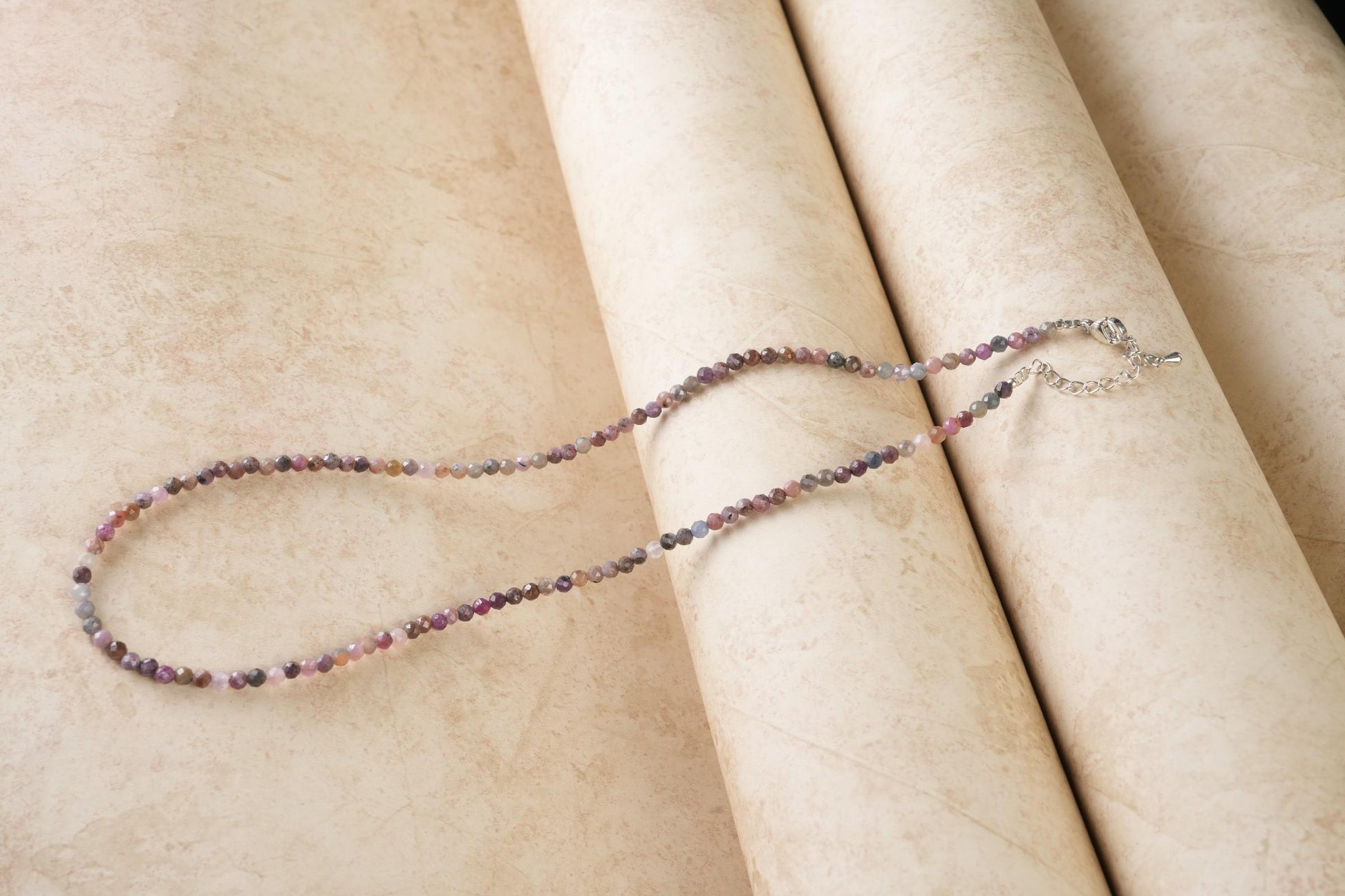 Genuine Ruby Sapphire Beads Necklace / Handcrafted Adjustable Mala Necklace / 3 MM Round Micro Faceted Beaded Necklace Jewelry - AS & JG