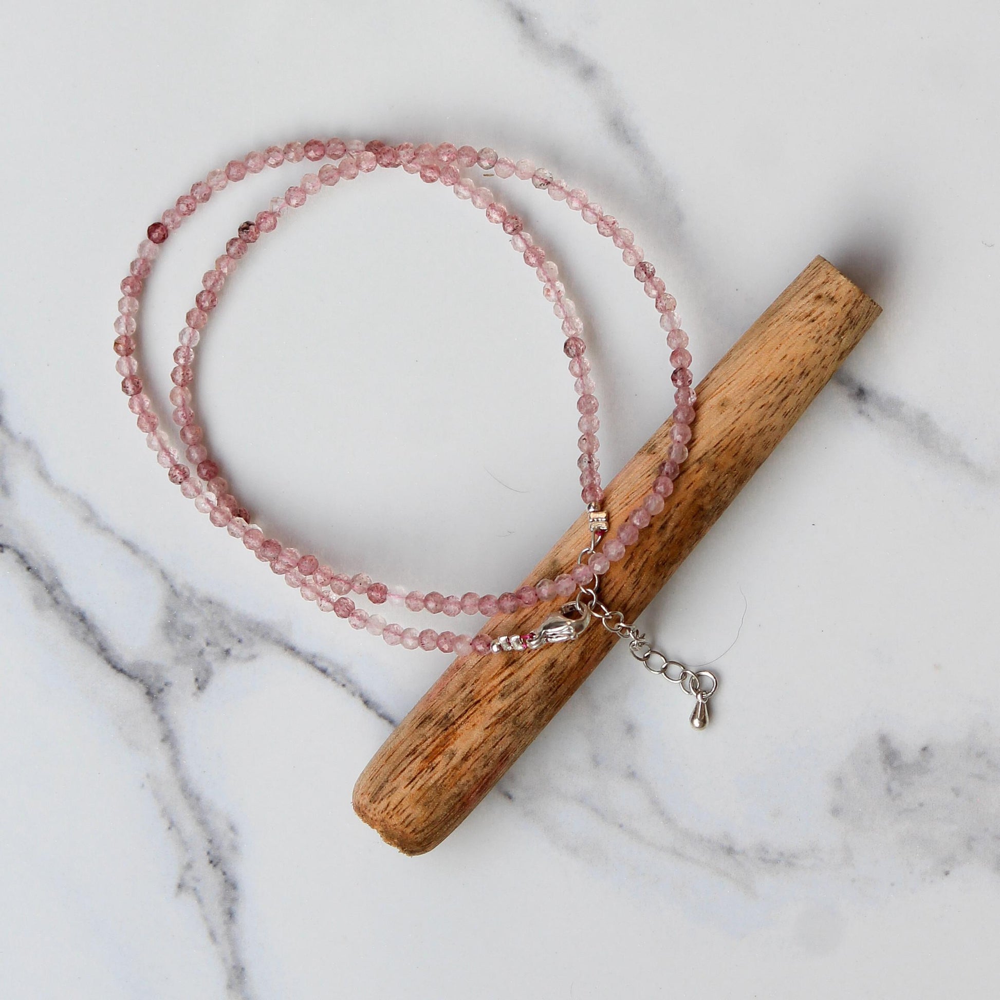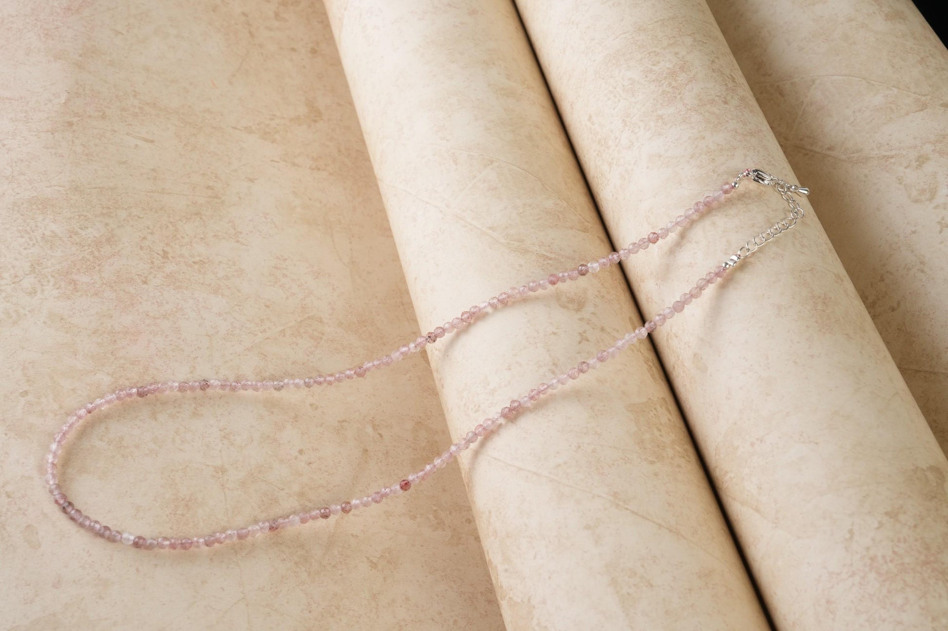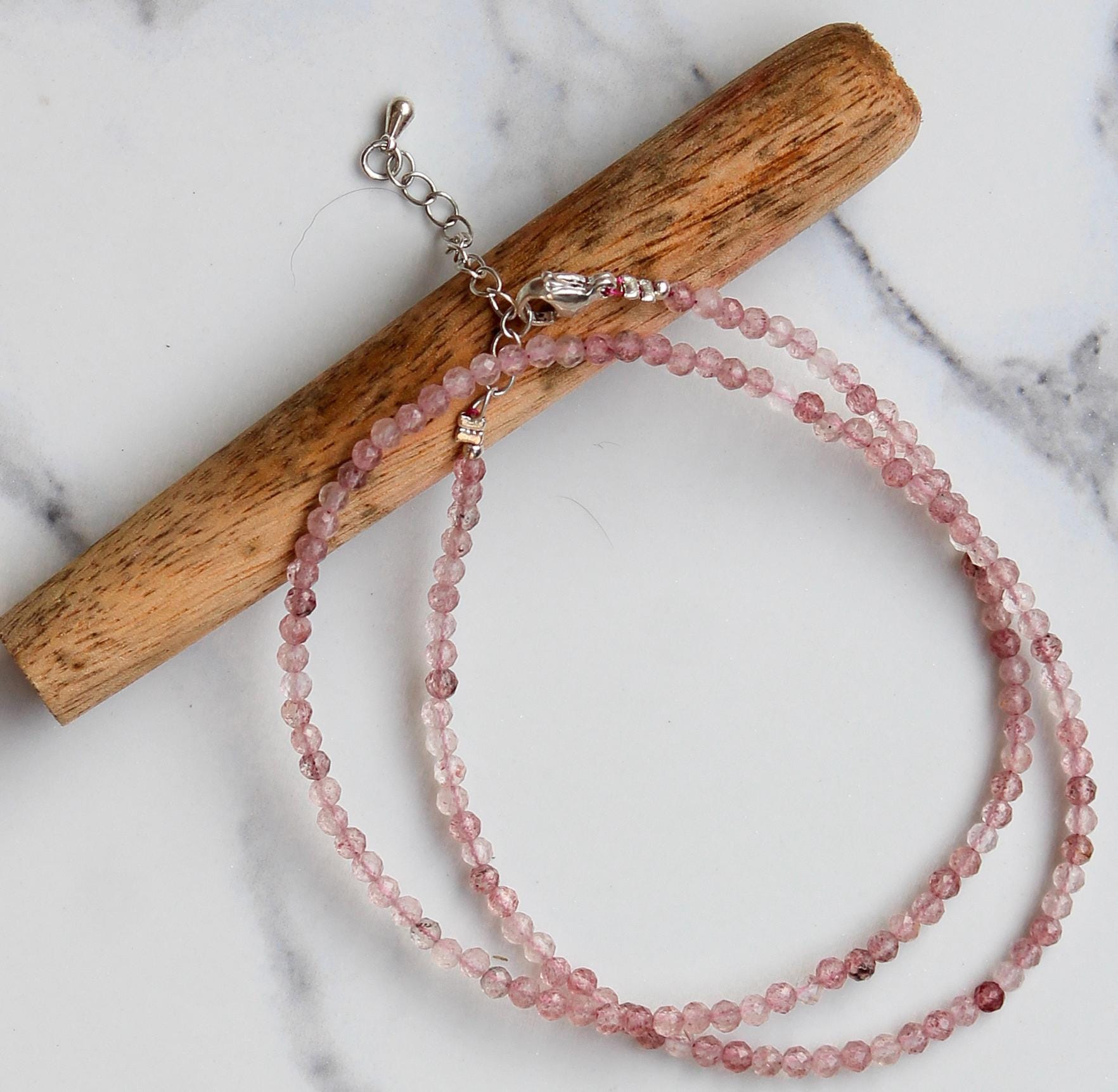 Genuine Strawberry Quartz Beads Necklace / Handcrafted Adjustable Mala Necklace / 3 MM Round Micro Faceted Beaded Necklace Jewelry - AS & JG