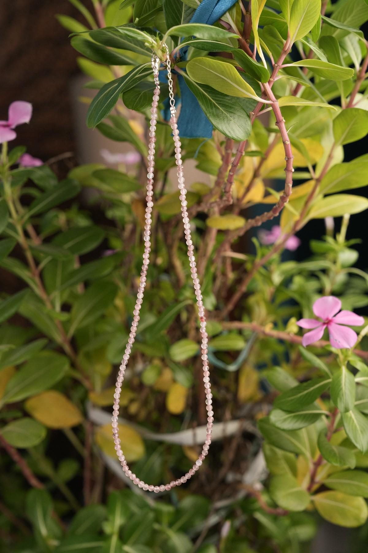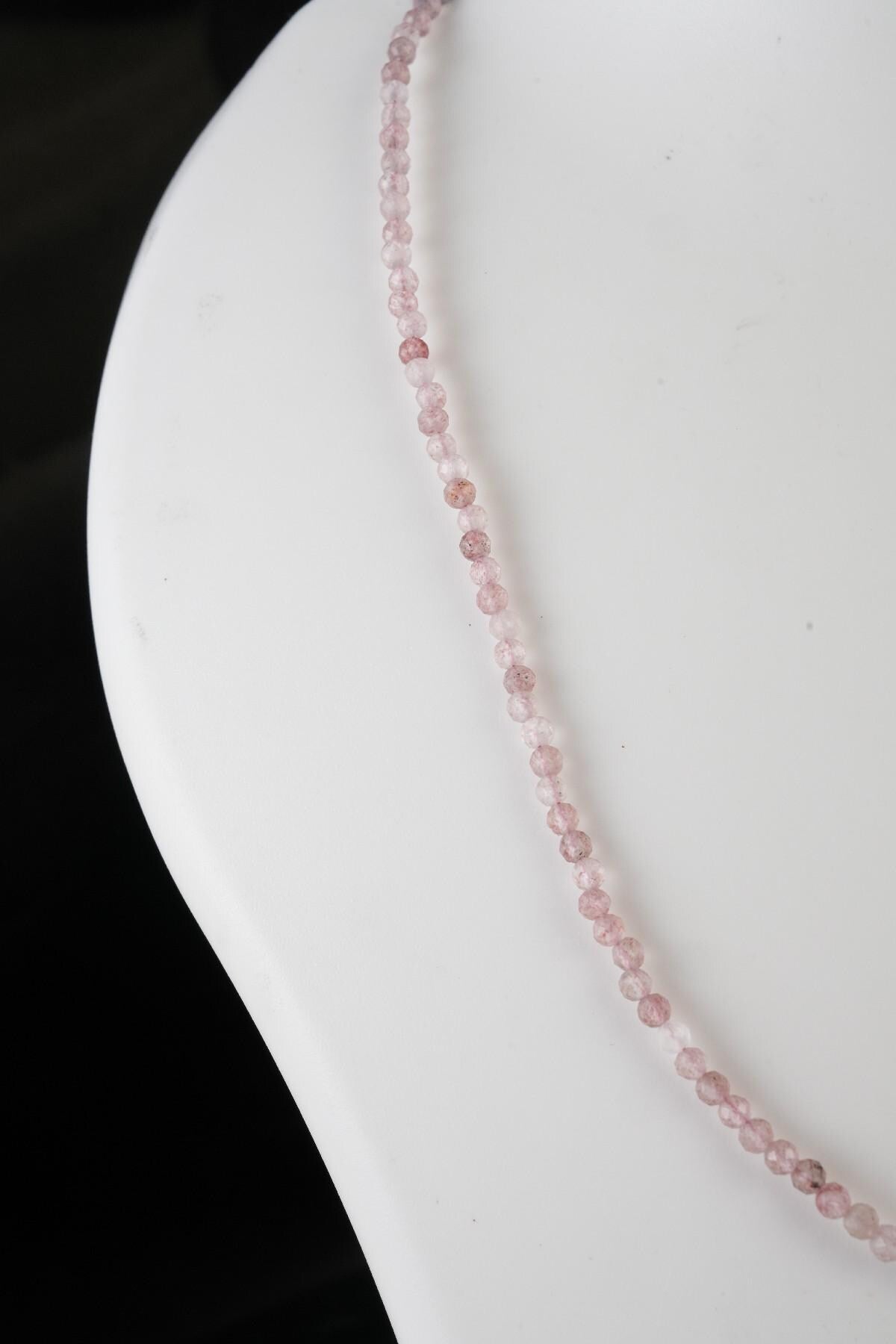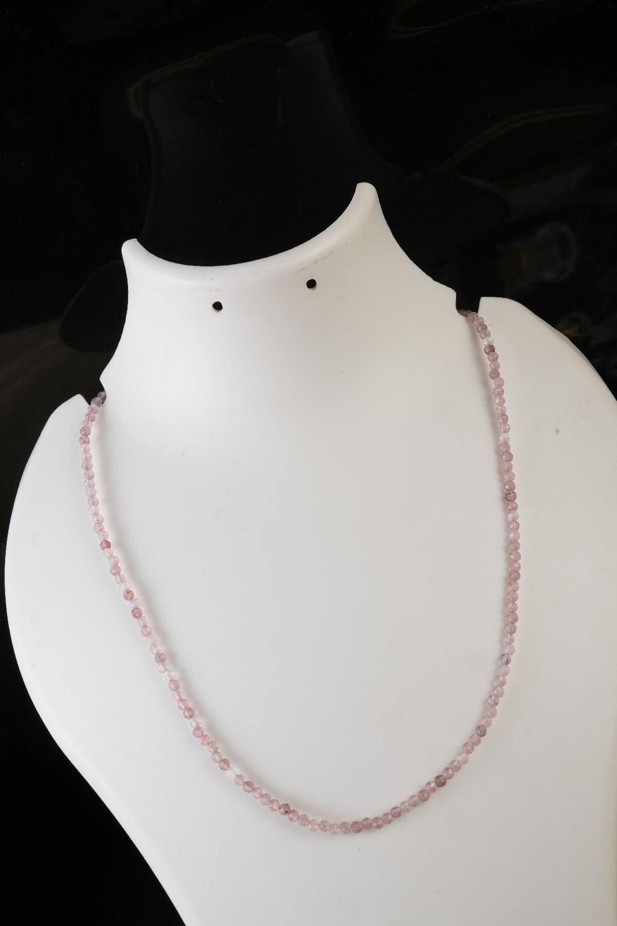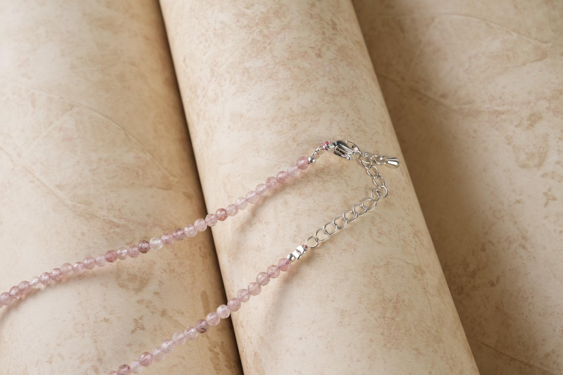 Genuine Strawberry Quartz Beads Necklace / Handcrafted Adjustable Mala Necklace / 3 MM Round Micro Faceted Beaded Necklace Jewelry - AS & JG