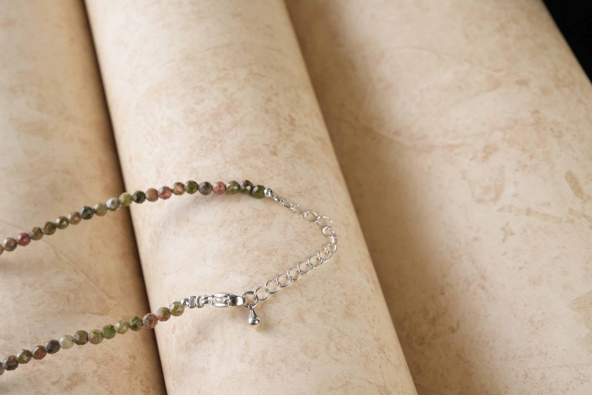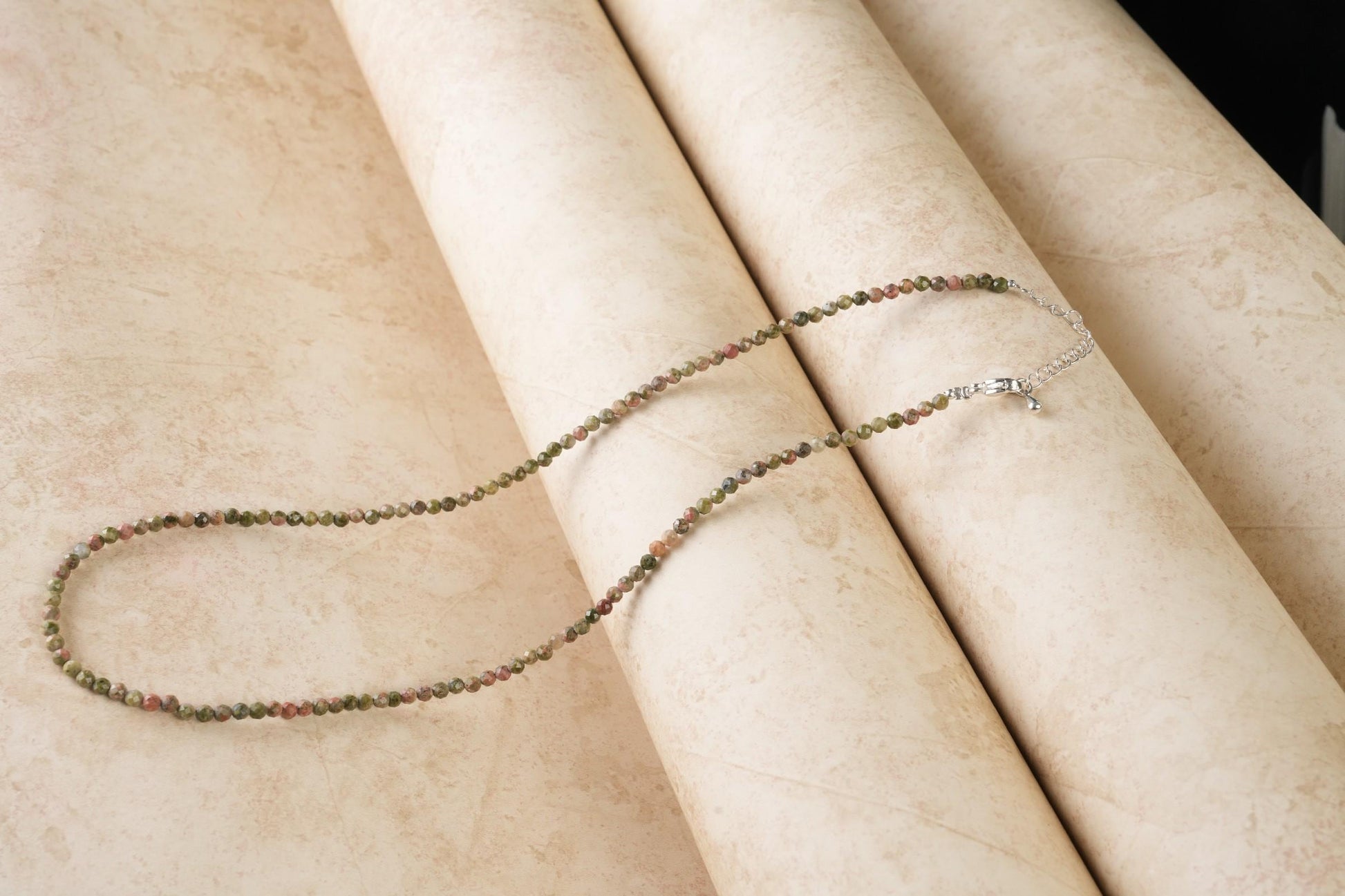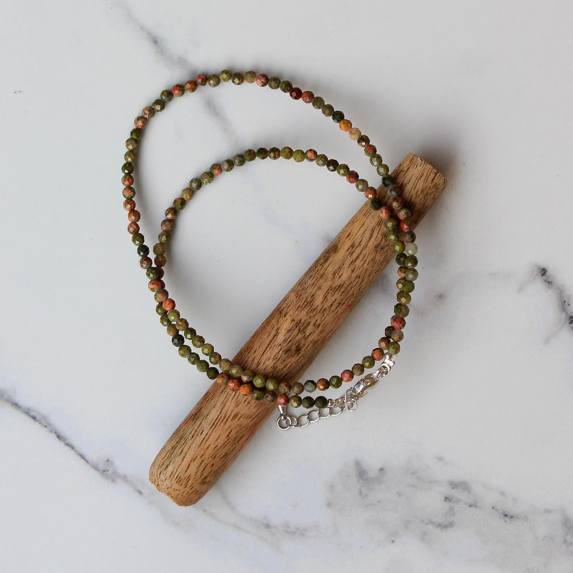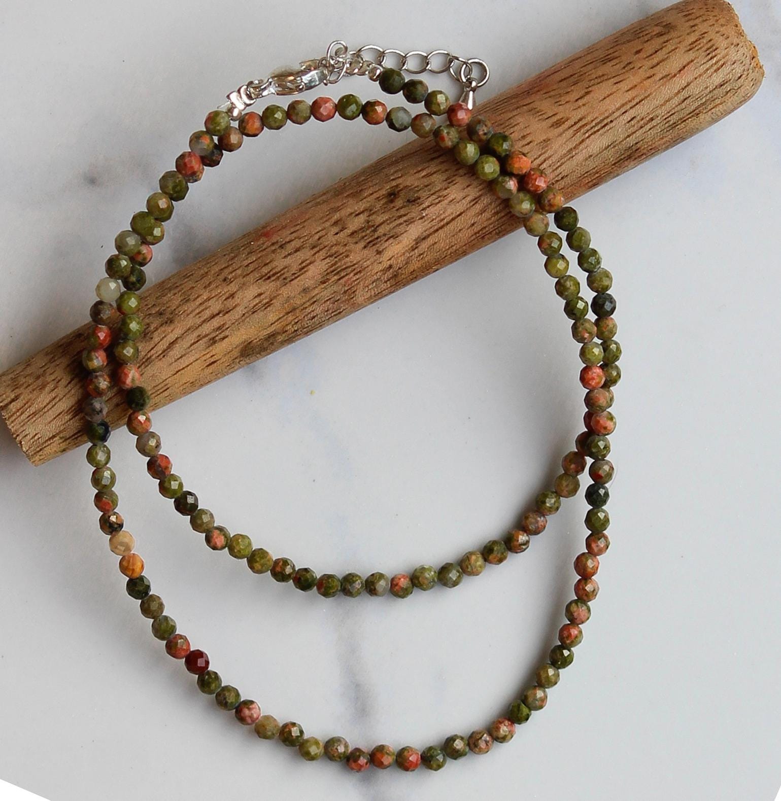 Genuine Unakite Beads Necklace / Handcrafted Adjustable Mala Necklace / 3 MM Round Micro Faceted Beaded Necklace Jewelry - AS & JG