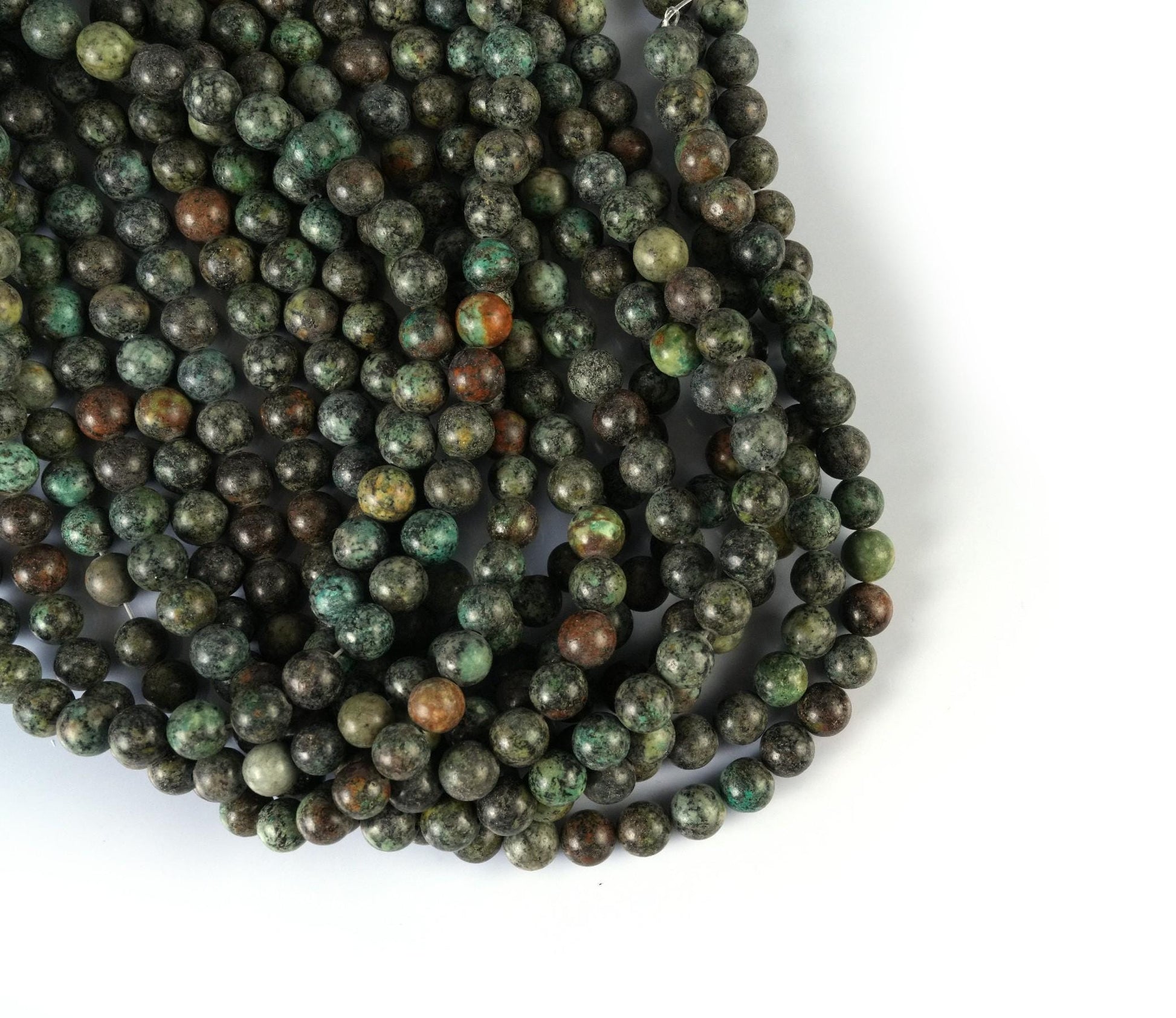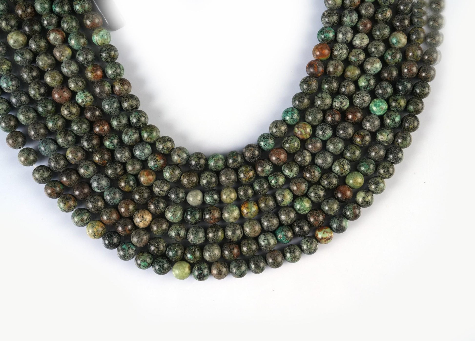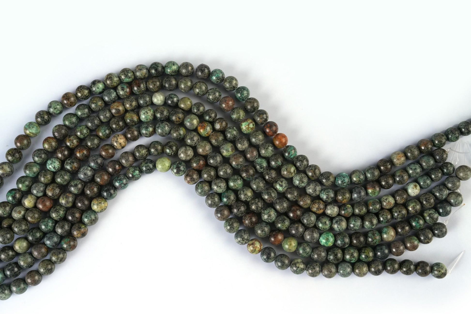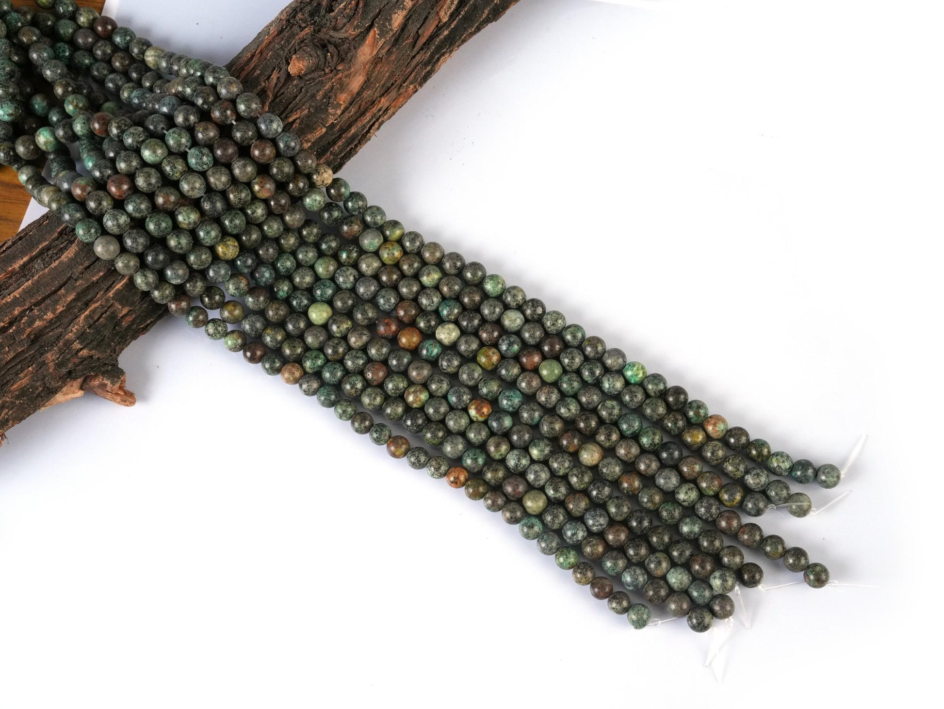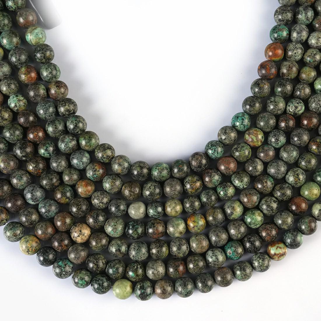 String Length : 15.5 Inches Each- **Premium Quality**: Crafted from authentic African turquoise, these smooth round beads guarantee exceptional quality and durability, perfect for all your jewelry-making needs.- **Versatile Sizing Options**: Available in 4mm, 6mm, 8mm, and 10mm sizes, these beads offer flexibility for various projects. Whether you're designing delicate earrings or bold statement necklaces, you’ll find the perfect fit!- **Natural Beauty**: Each bead showcases unique patterns and colors that reflect the beauty of nature. The earthy tones of turquoise can enhance any design, adding a touch of elegance and sophistication to your creations.- **Easy to Work With**: Smooth surfaces make stringing a breeze! Enjoy hassle-free crafting as these beads glide effortlessly onto your thread or wire—ideal for both beginners and seasoned artisans alike.- **Inspire Creativity**: Unleash your imagination with these stunning gemstone beads! Perfect for DIY jewelry enthusiasts looking to create one-of-a-kind pieces that tell a story—your story. Transform simple designs into cherished treasures!Elevate your crafting experience with our Natural African Turquoise Gemstone Beads. Let their beauty inspire you to create meaningful jewelry that resonates with your style!Number of beads per 15.5" strandWe sell our products by the strand, not by the number of beads. The following chart is for reference only. It's for traditional round-shaped beads string continuously without spacer beads or knots in between.4mm in diameter- about 96pcs/strand 6mm in diameter- about 68pcs/strand 8mm in diameter- about 48pcs/strand 10mm in diameter- about 38pcs/strand Note: -Bead sizes are approximate and may have a variation of +/- 0.5mm. -Drill hole sizes are approximate and may have a variation of +/- 0.2mm. -All natural gemstones vary in color and pattern. We try our best to make our photos represent the real products in person.