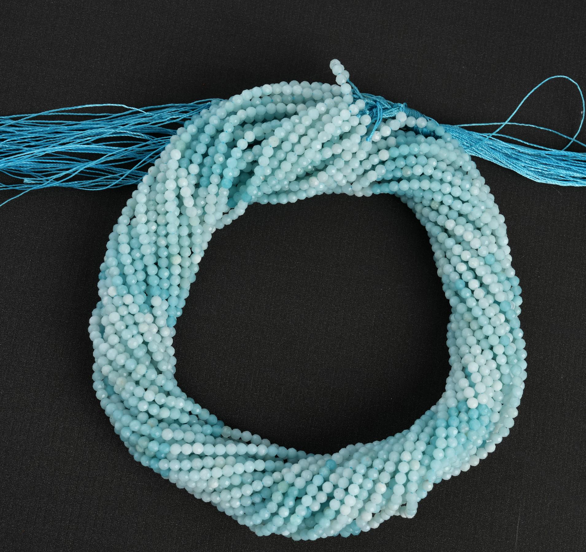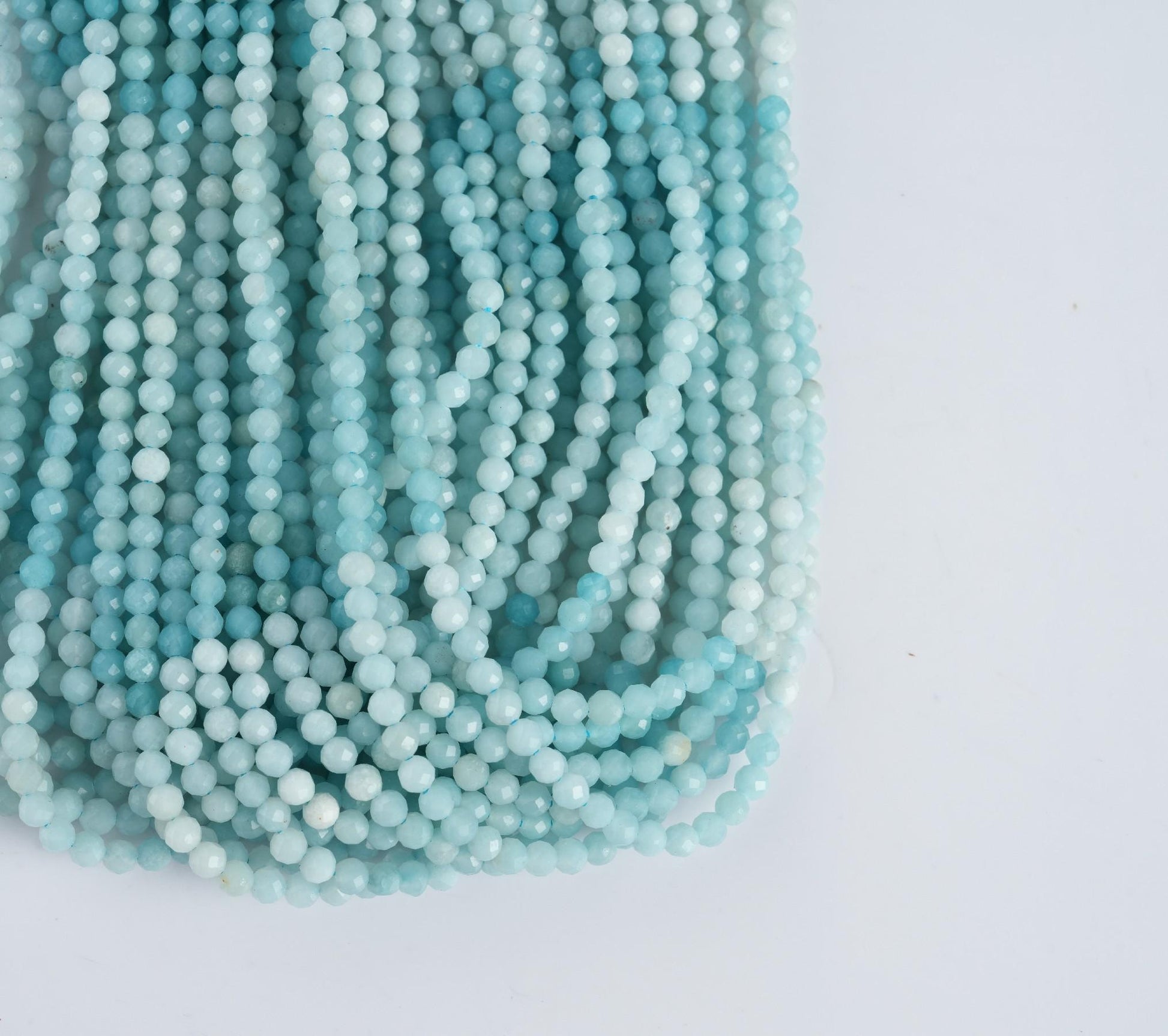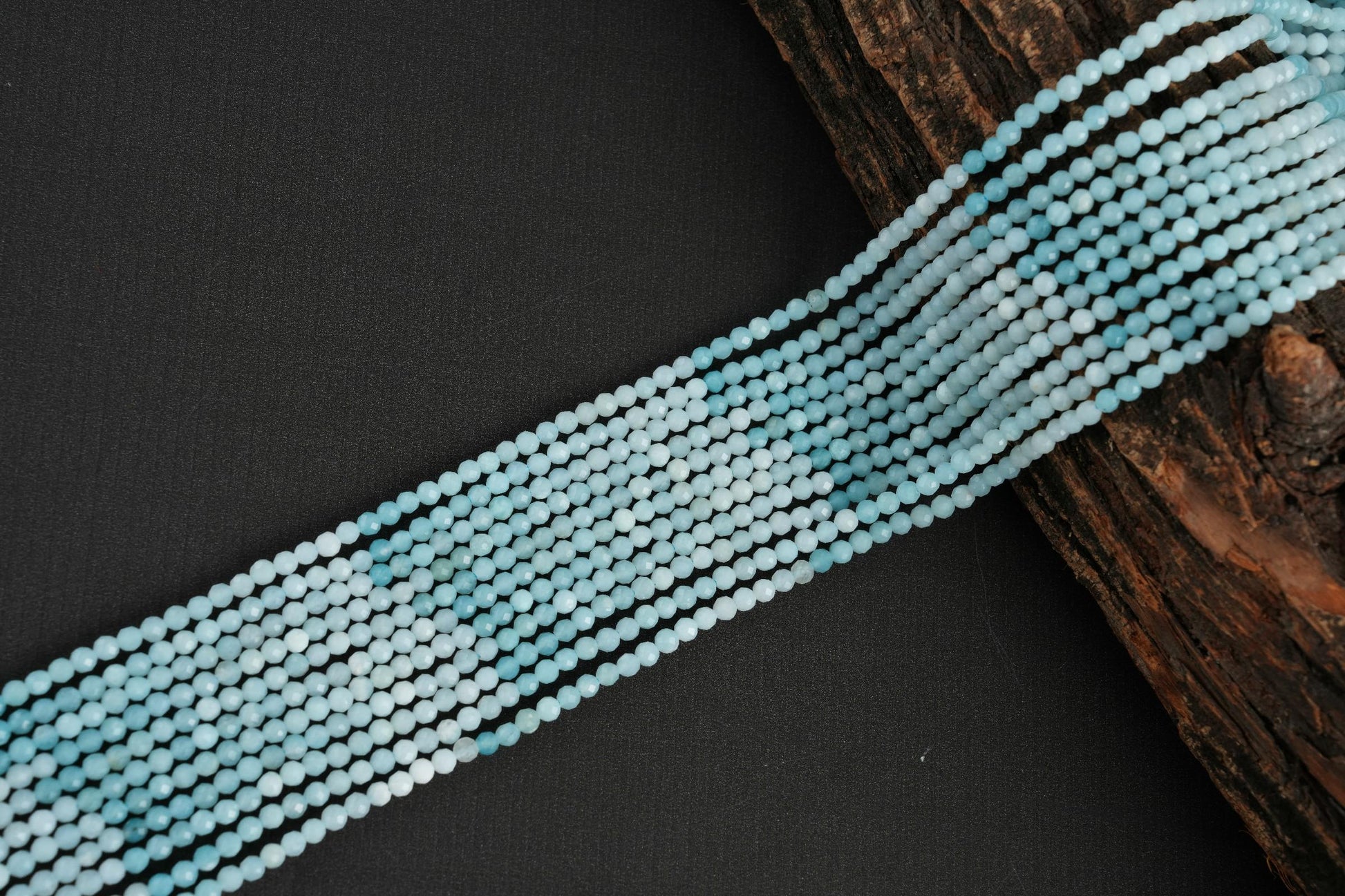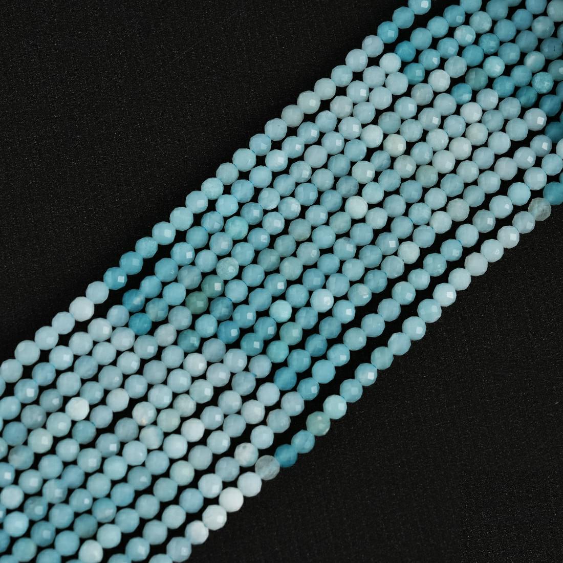 String Length : 15.5 Inches Each- **Premium Quality**: Crafted from exquisite natural Amazonite, these micro faceted beads promise unparalleled quality and durability. Each bead is a testament to nature's artistry, ensuring your creations are not only beautiful but built to last.- **Vibrant Color Palette**: Featuring stunning shades of blue, green, and earthy tones, the unique coloration of these beads adds depth and character to any jewelry piece. Perfect for those looking to infuse their designs with a touch of nature’s elegance.- **Versatile Sizing Options**: Available in 2mm, 3mm, 4mm, and 6mm sizes, these beads cater to all your crafting needs. Whether you're creating delicate earrings or bold statement necklaces, you’ll find the perfect fit for every project.- **Design Excellence**: The round micro faceting enhances light reflection beautifully, giving each bead a sparkling finish that catches the eye. This attention to detail elevates your jewelry designs from ordinary to extraordinary.- **Creative Inspiration**: Ideal for both seasoned jewelers and DIY enthusiasts alike! These beads open up endless possibilities for creativity—design personalized gifts or unique accessories that reflect your individual style and story.Transform your jewelry-making experience with our Natural Amazonite Shaded Gemstone Beads—where beauty meets craftsmanship!Number of beads per 15.5" strandWe sell our products by the strand, not by the number of beads. The following chart is for reference only. It's for traditional round-shaped beads strung continuously without spacer beads or knots in between.2mm in diameter- about 195pcs/strand 3mm in diameter- about 130pcs/strand 4mm in diameter- about 96pcs/strand 6mm in diameter- about 68pcs/strand Note: -Bead sizes are approximate and may have a variation of +/- 0.5mm. -Drill hole sizes are approximate and may have a variation of +/- 0.2mm. -All natural gemstones vary in color and pattern. We try our best to make our photos represent the real products in person