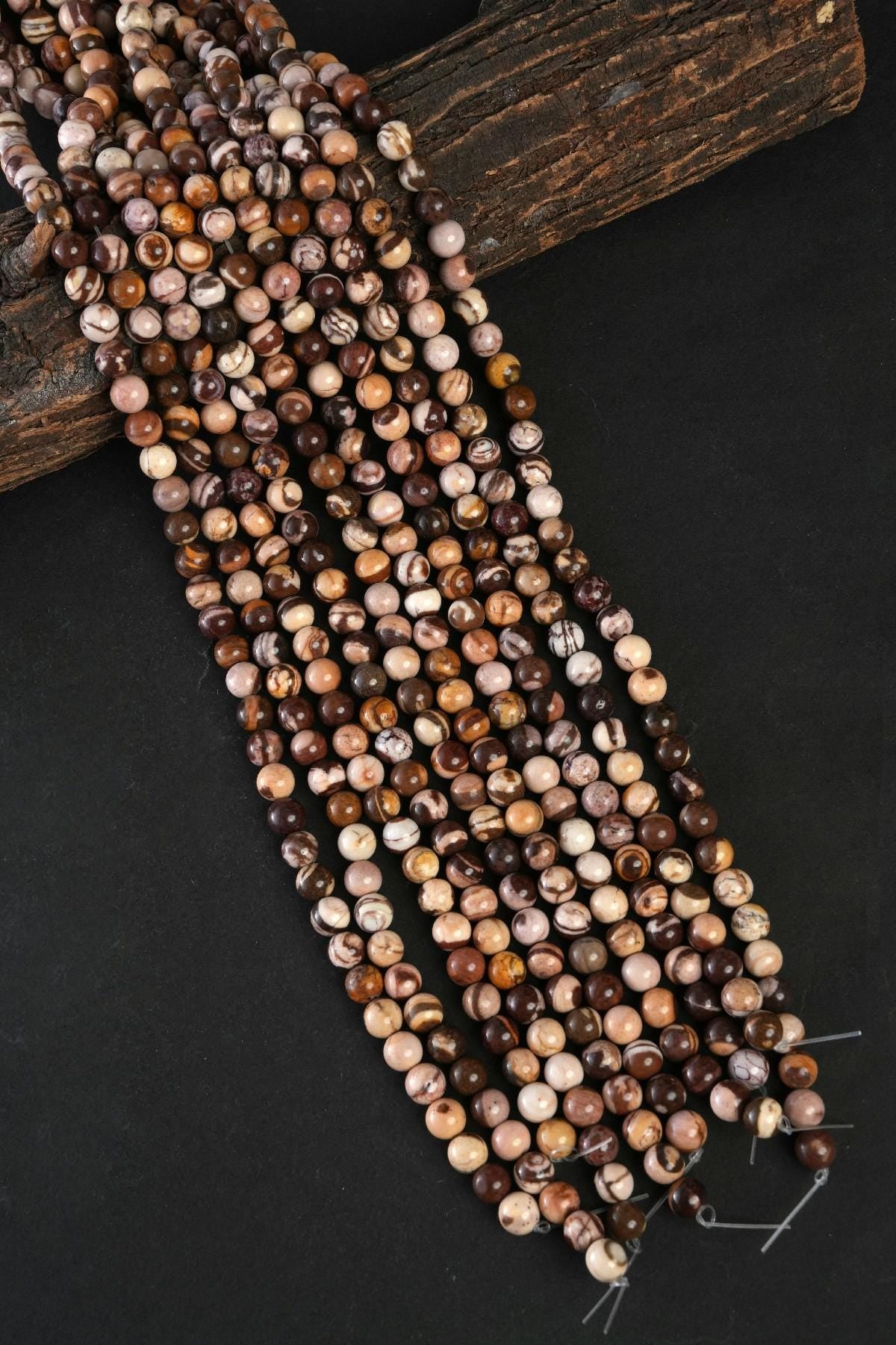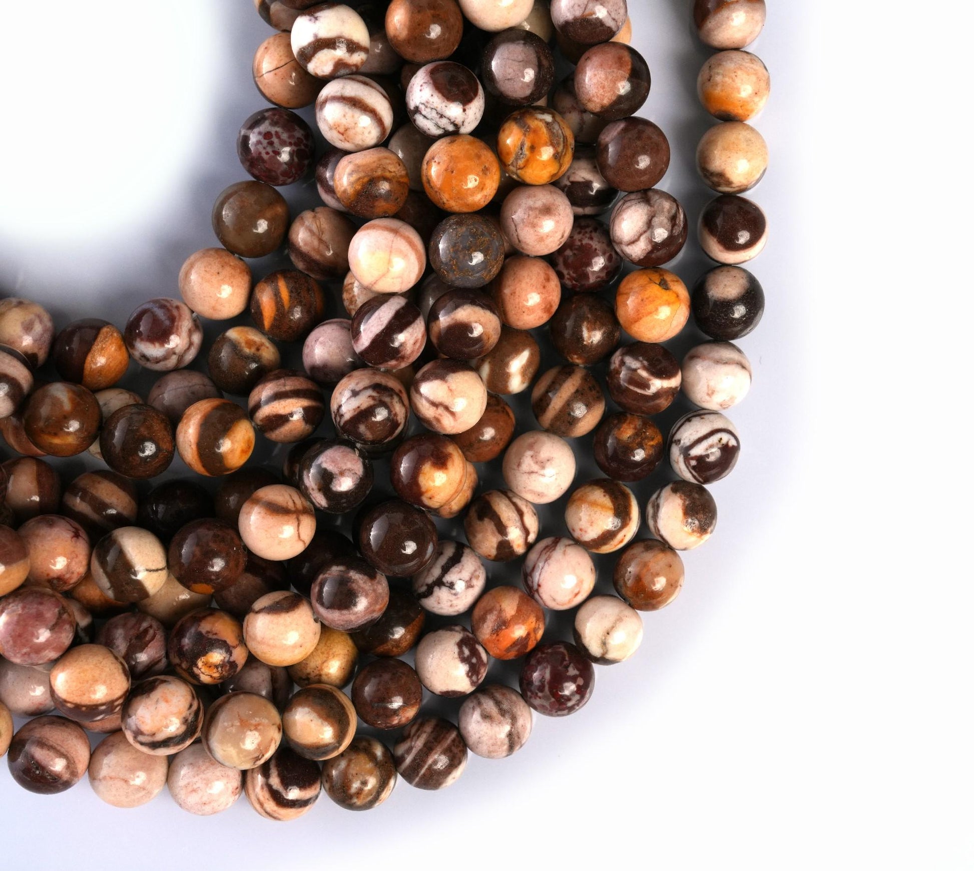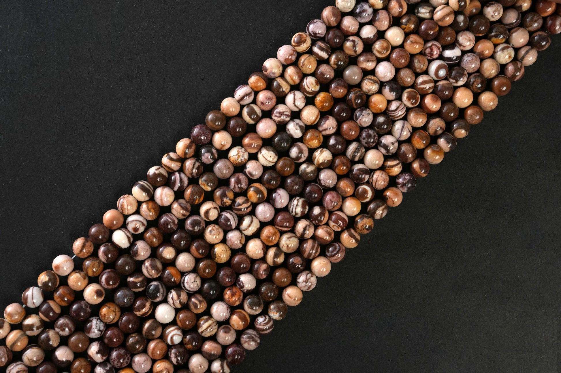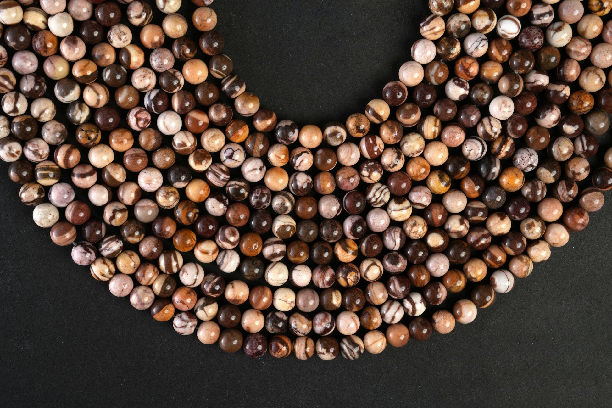 String Length : 15.5 Inches Each **Premium Quality**: Crafted from authentic Australian Zebra Jasper, these smooth round beads offer exceptional durability and a luxurious feel, making them perfect for all your jewelry-making endeavors.- **Versatile Sizes**: Available in 4mm, 6mm, 8mm, and 10mm sizes, this string of beads allows you to unleash your creativity. Mix and match sizes to create stunning designs that cater to any occasion or personal style!- **Unique Patterns**: Each bead showcases distinct zebra-like stripes in earthy tones of black, cream, and brown. No two pieces are alike—this natural variation ensures that your creations will be one-of-a-kind treasures.- **Design Excellence**: Measuring a generous 15.5 inches long, this string provides ample material for crafting necklaces, bracelets, or earrings. The smooth finish enhances the overall aesthetic while ensuring comfort against the skin.- **Inspire Creativity**: Perfect for both beginners and seasoned crafters alike! These beads not only elevate your DIY projects but also serve as a source of inspiration—turning simple ideas into beautiful realities that reflect your unique personality.Transform your crafting experience with our Natural Australian Zebra Jasper Beads—where quality meets creativity!Number of beads per 15.5" strandWe sell our products by the strand, not by the number of beads. The following chart is for reference only. It's for traditional round-shaped beads string continuously without spacer beads or knots in between.4mm in diameter- about 96pcs/strand 6mm in diameter- about 68pcs/strand 8mm in diameter- about 48pcs/strand 10mm in diameter- about 38pcs/strand Note: -Bead sizes are approximate and may have a variation of +/- 0.5mm. -Drill hole sizes are approximate and may have a variation of +/- 0.2mm. -All natural gemstones vary in color and pattern. We try our best to make our photos represent the real products in person.