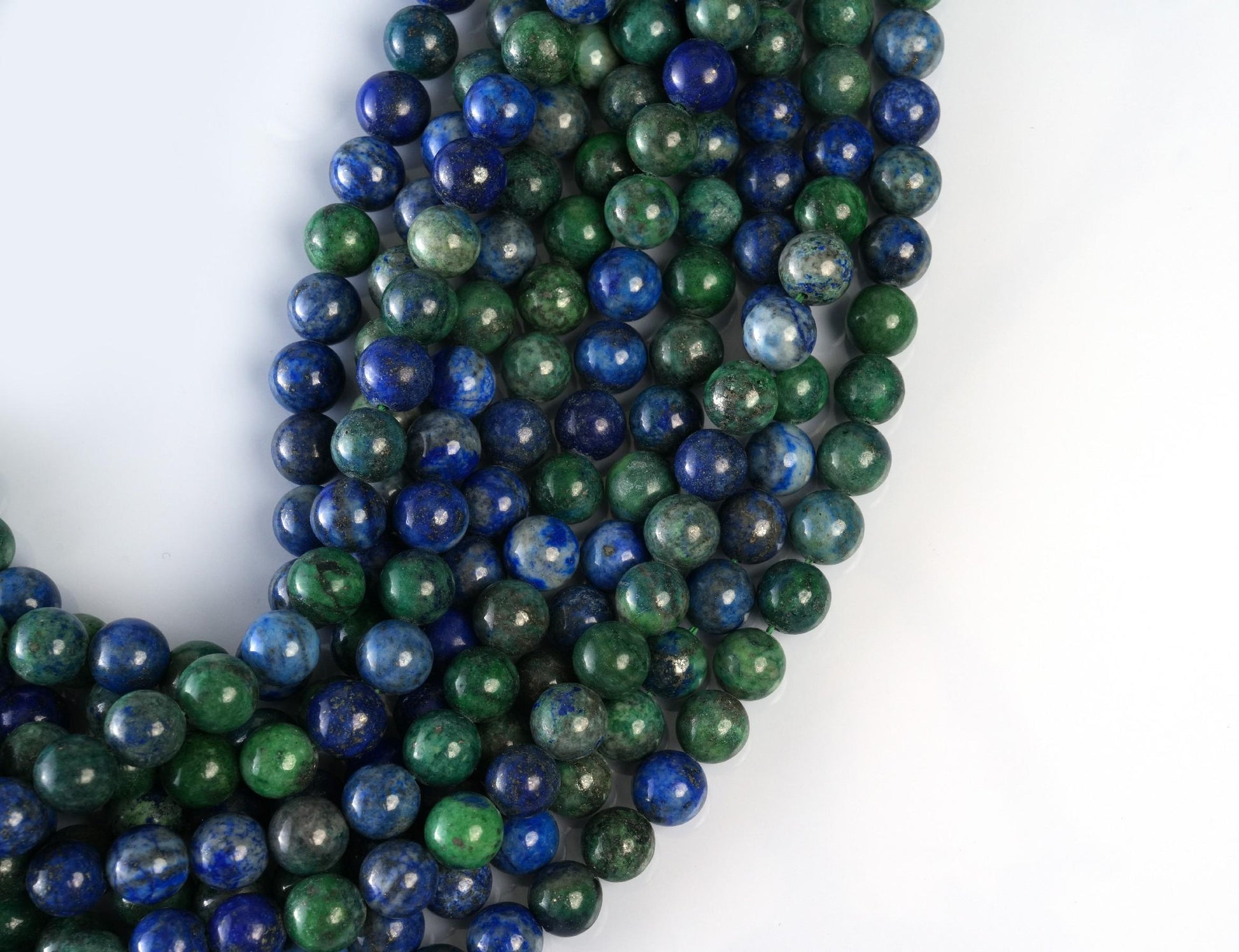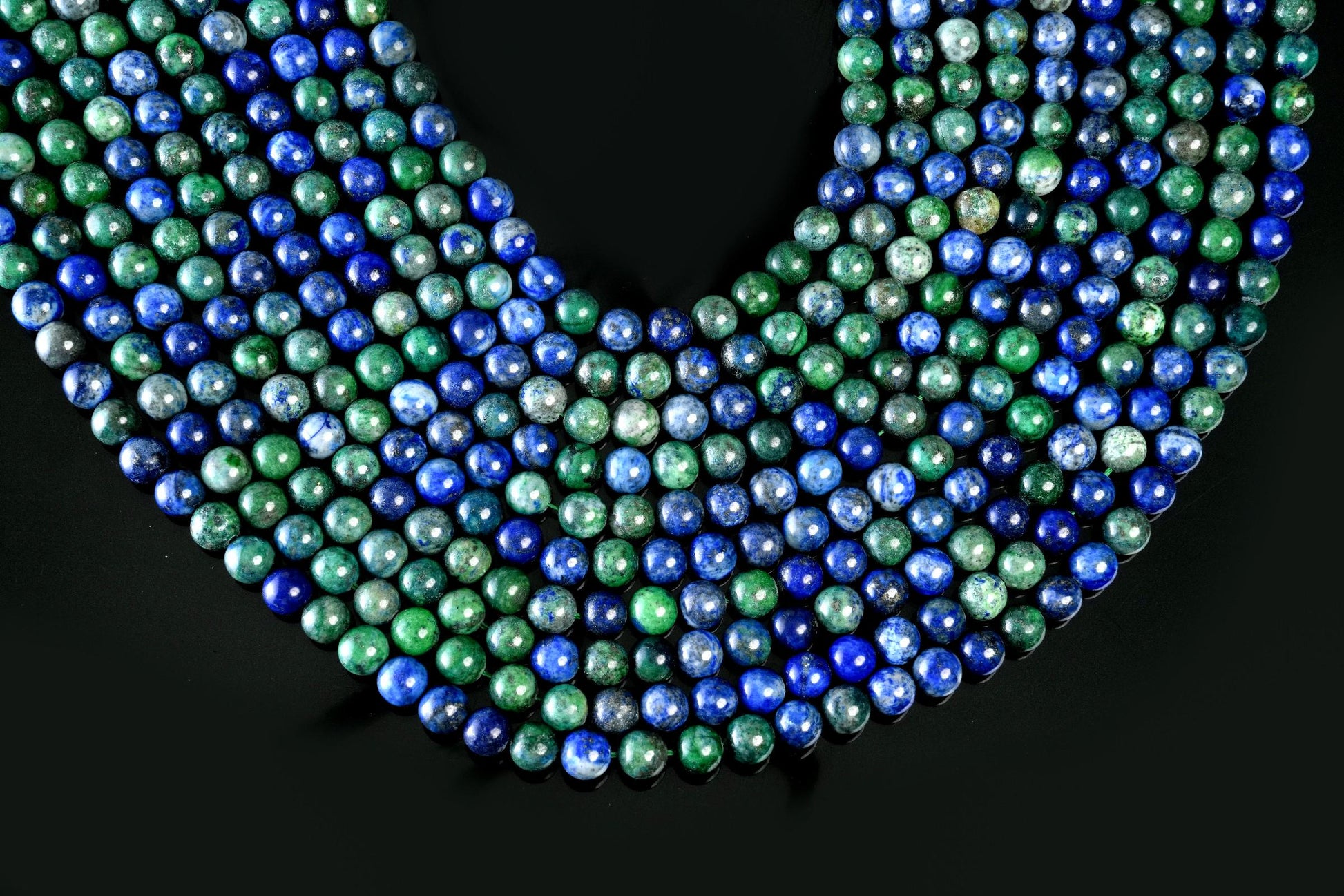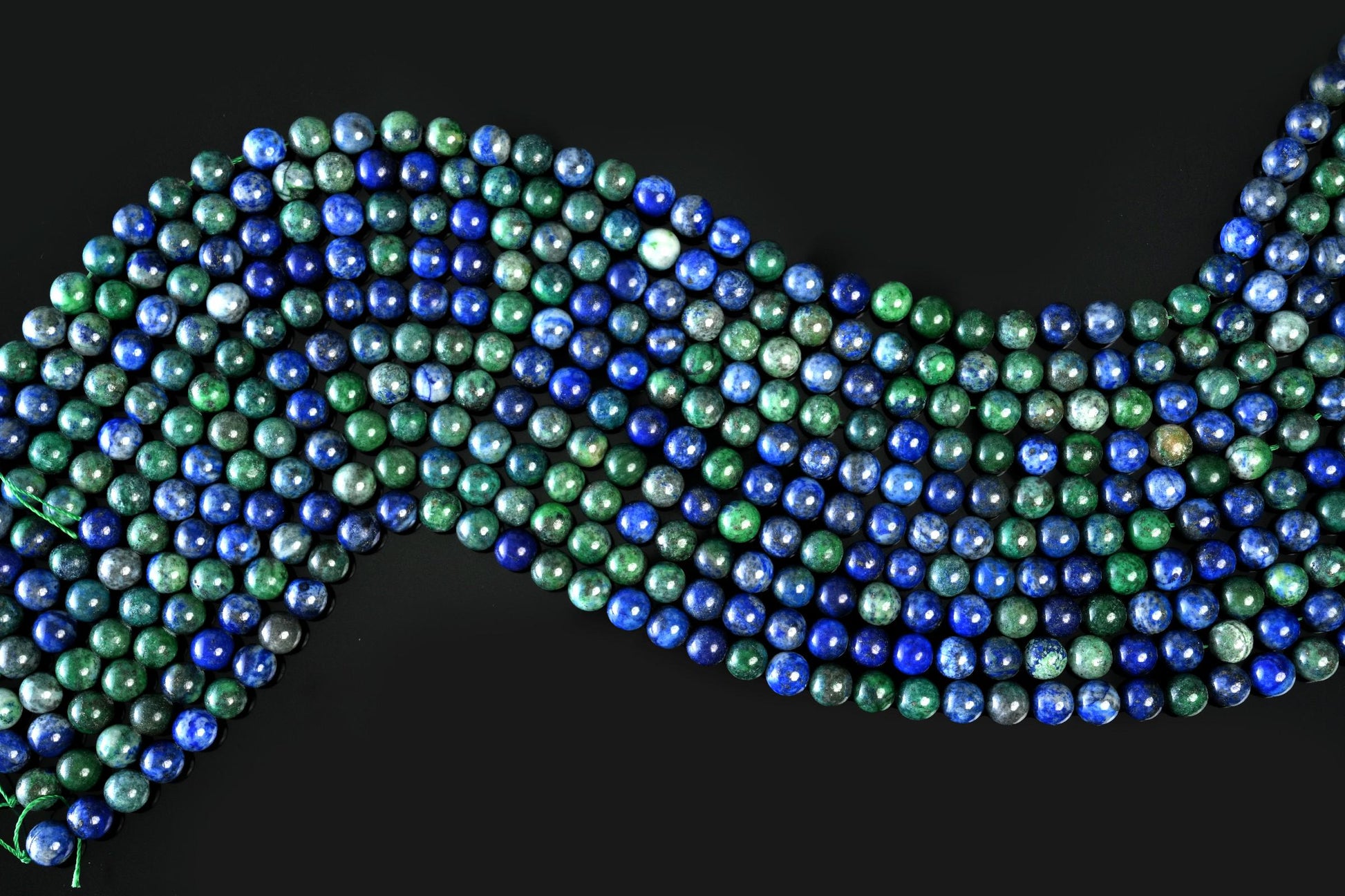 String Length : 15.5 Inches Each- **Premium Quality**: Crafted from exquisite natural azurite malachite, these round smooth beads boast exceptional quality and durability, making them perfect for all your jewelry-making endeavors.- **Vibrant Aesthetic**: Experience the stunning blend of deep blues and rich greens that only azurite malachite can offer. Each bead is a unique work of art, adding a touch of elegance and sophistication to your creations.- **Versatile Sizing Options**: Available in 4mm, 6mm, 8mm, and 10mm sizes, these beads provide endless possibilities for customization. Whether you're designing delicate necklaces or bold statement pieces, you’ll find the perfect fit for every project.- **Easy to Work With**: Smoothly polished surfaces ensure effortless stringing and crafting. Say goodbye to frustrating snagging or rough edges—these beads glide seamlessly onto your threads or wires!- **Inspire Creativity**: Unleash your inner artist! These gemstone beads are not just materials; they’re an invitation to express yourself. Create meaningful gifts or personal treasures that resonate with emotion and intention.- **Healing Properties**: Embrace the metaphysical benefits of azurite malachite—known for promoting emotional balance and clarity. Infuse your jewelry with positive energy that uplifts both the wearer and those around them.Elevate your crafting experience with our Natural Azurite Malachite Gemstone Beads—a beautiful blend of quality, versatility, and inspiration awaits!Number of beads per 15.5" strandWe sell our products by the strand, not by the number of beads. The following chart is for reference only. It's for traditional round-shaped beads string continuously without spacer beads or knots in between.4mm in diameter- about 96pcs/strand 6mm in diameter- about 68pcs/strand 8mm in diameter- about 48pcs/strand 10mm in diameter- about 38pcs/strand Note: -Bead sizes are approximate and may have a variation of +/- 0.5mm. -Drill hole sizes are approximate and may have a variation of +/- 0.2mm. -All natural gemstones vary in color and pattern. We try our best to make our photos represent the real products in person.