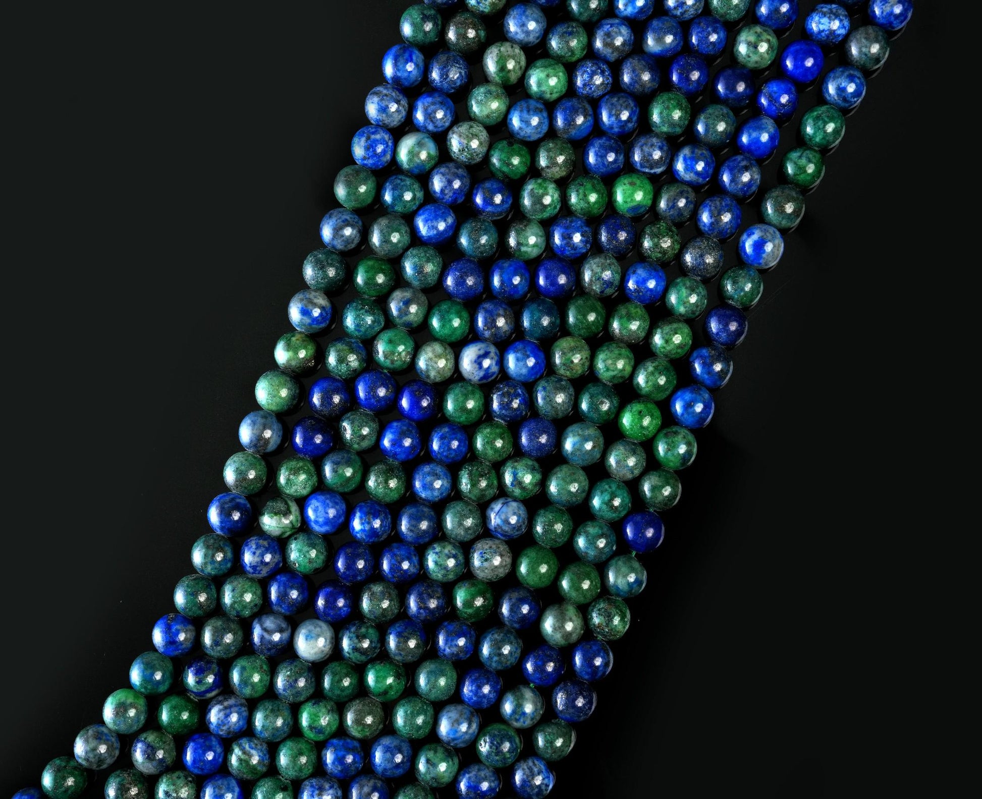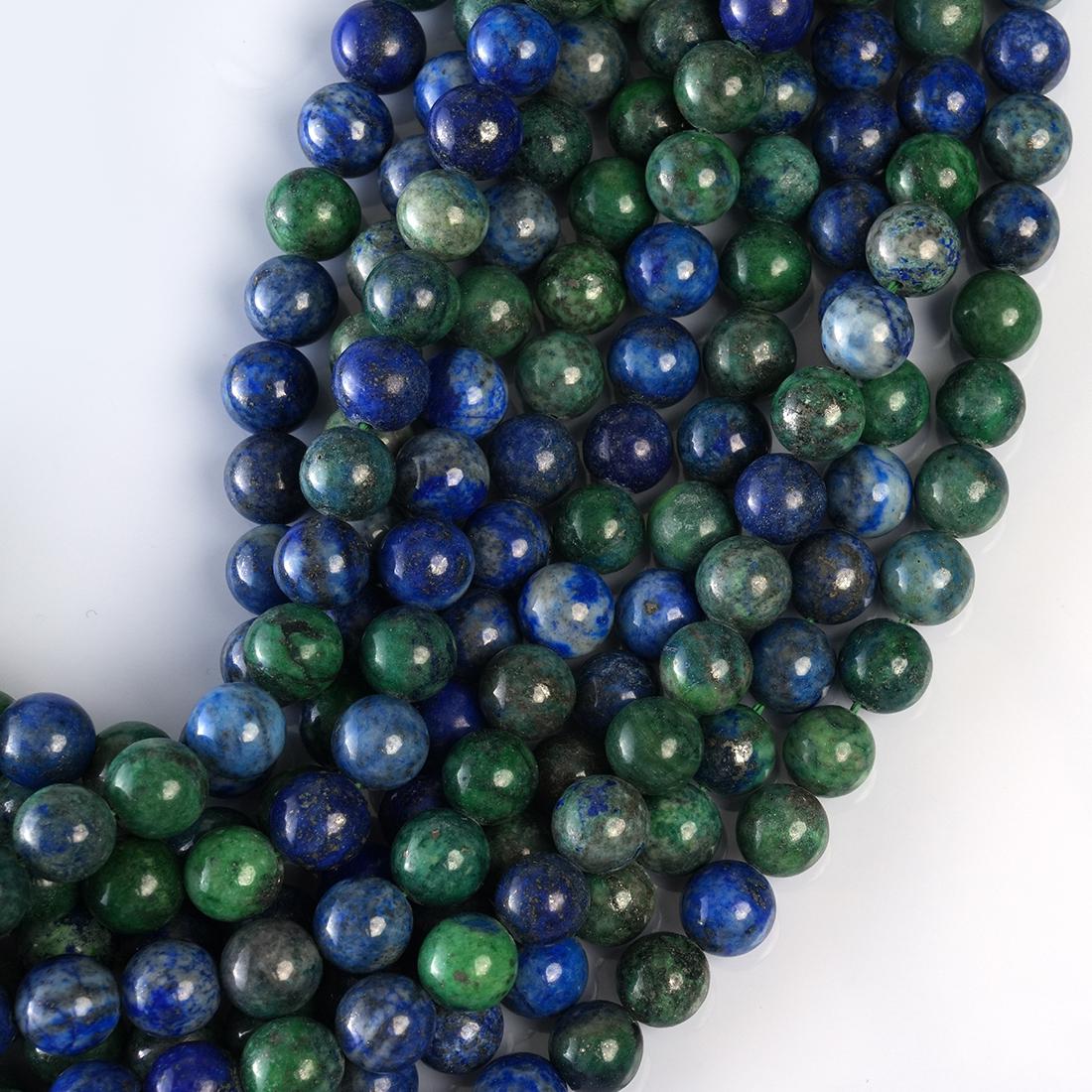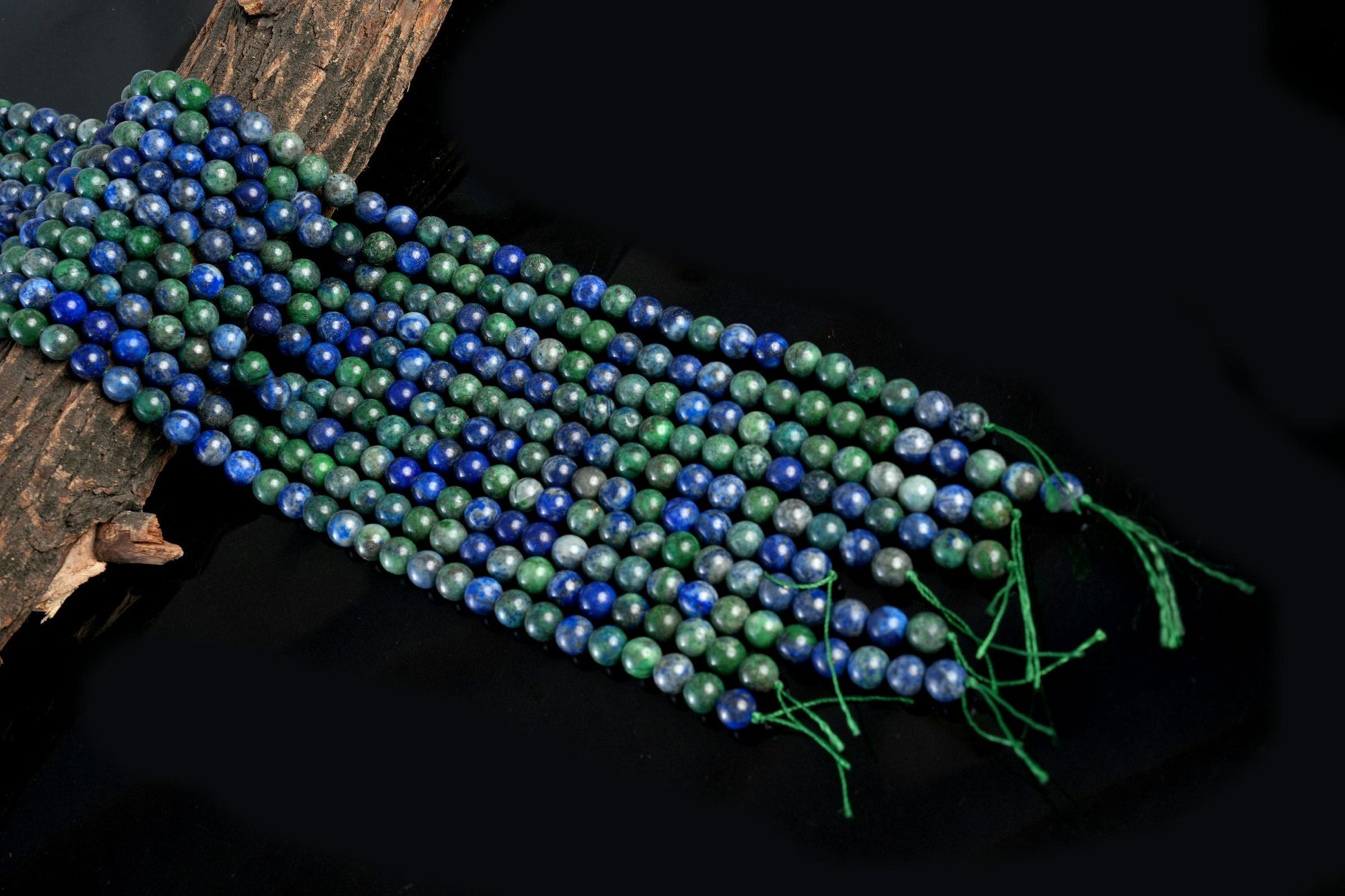 String Length : 15.5 Inches Each- **Premium Quality**: Crafted from exquisite natural azurite malachite, these round smooth beads boast exceptional quality and durability, making them perfect for all your jewelry-making endeavors.- **Vibrant Aesthetic**: Experience the stunning blend of deep blues and rich greens that only azurite malachite can offer. Each bead is a unique work of art, adding a touch of elegance and sophistication to your creations.- **Versatile Sizing Options**: Available in 4mm, 6mm, 8mm, and 10mm sizes, these beads provide endless possibilities for customization. Whether you're designing delicate necklaces or bold statement pieces, you’ll find the perfect fit for every project.- **Easy to Work With**: Smoothly polished surfaces ensure effortless stringing and crafting. Say goodbye to frustrating snagging or rough edges—these beads glide seamlessly onto your threads or wires!- **Inspire Creativity**: Unleash your inner artist! These gemstone beads are not just materials; they’re an invitation to express yourself. Create meaningful gifts or personal treasures that resonate with emotion and intention.- **Healing Properties**: Embrace the metaphysical benefits of azurite malachite—known for promoting emotional balance and clarity. Infuse your jewelry with positive energy that uplifts both the wearer and those around them.Elevate your crafting experience with our Natural Azurite Malachite Gemstone Beads—a beautiful blend of quality, versatility, and inspiration awaits!Number of beads per 15.5" strandWe sell our products by the strand, not by the number of beads. The following chart is for reference only. It's for traditional round-shaped beads string continuously without spacer beads or knots in between.4mm in diameter- about 96pcs/strand 6mm in diameter- about 68pcs/strand 8mm in diameter- about 48pcs/strand 10mm in diameter- about 38pcs/strand Note: -Bead sizes are approximate and may have a variation of +/- 0.5mm. -Drill hole sizes are approximate and may have a variation of +/- 0.2mm. -All natural gemstones vary in color and pattern. We try our best to make our photos represent the real products in person.