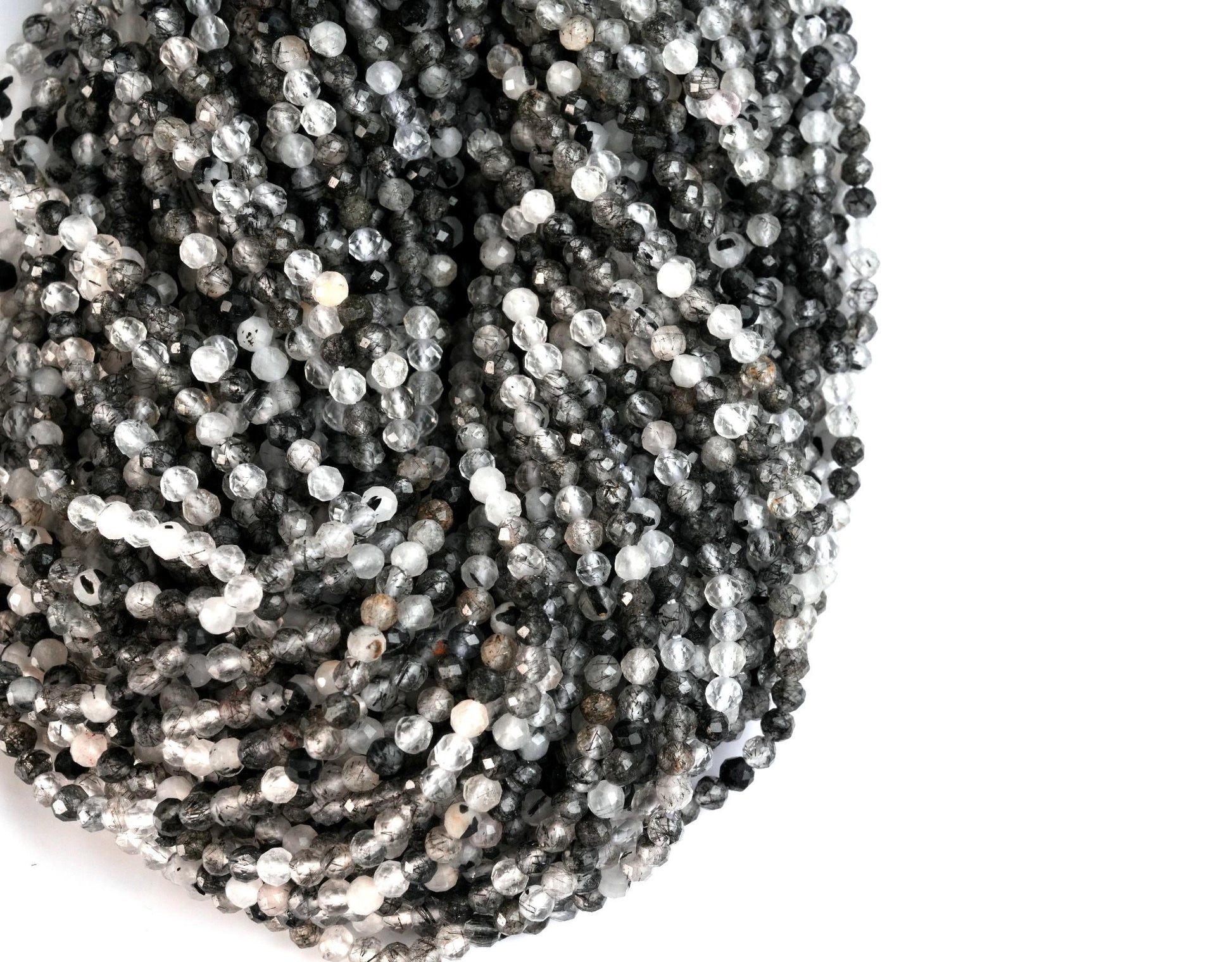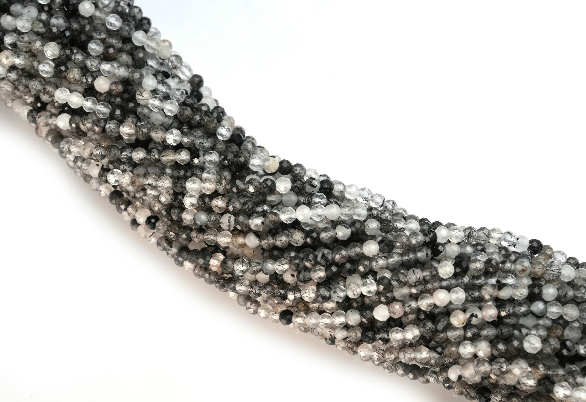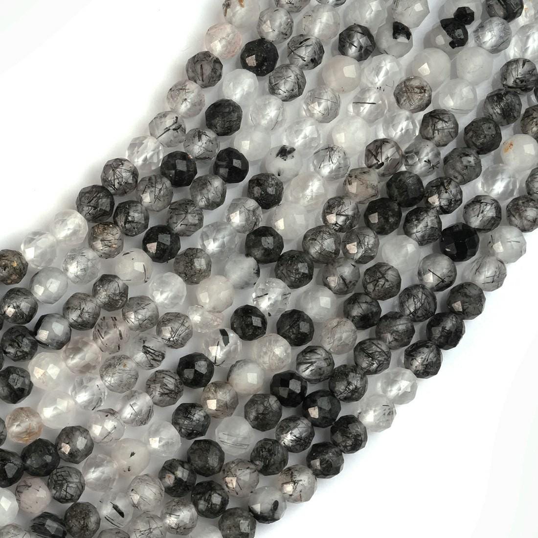 String Length : 15.5 Inches Each- **Premium Quality:** Crafted from authentic natural black rutile quartz, these micro-faceted beads boast exceptional durability and a stunning finish that elevates any jewelry piece.- **Versatile Sizes:** Available in 2mm, 3mm, and 4mm sizes, these beads offer endless possibilities for your crafting projects. Whether you're designing delicate earrings or bold statement necklaces, you’ll find the perfect fit for every creation.- **Unique Aesthetic:** Each bead is uniquely faceted to catch the light beautifully, creating a mesmerizing sparkle that adds depth and character to your designs. The striking black rutile inclusions make each piece one-of-a-kind—just like you!- **Crafting Made Easy:** With a generous string length of 15.5 inches, you'll have plenty of beads at your disposal to unleash your creativity without interruption. Ideal for both beginners and seasoned artisans alike!- **Embrace Your Creativity:** Perfect for jewelry making or other crafts, these beads allow you to express your personal style effortlessly. Transform ordinary materials into extraordinary pieces that reflect who you are—let your imagination run wild!Elevate your crafting experience with our Natural Black Rutile Quartz Gemstone Beads—where quality meets creativity!Number of beads per 15.5" strandWe sell our products by the strand, not by the number of beads. The following chart is for reference only. It's for traditional round-shaped beads string continuously without spacer beads or knots in between.2mm in diameter- about 195pcs/strand 3mm in diameter- about 130pcs/strand 4mm in diameter- about 96pcs/strand 6mm in diameter- about 68pcs/strand Note: -Bead sizes are approximate and may have a variation of +/- 0.5mm. -Drill hole sizes are approximate and may have a variation of +/- 0.2mm. -All natural gemstones vary in color and pattern. We try our best to make our photos represent the real products in person.