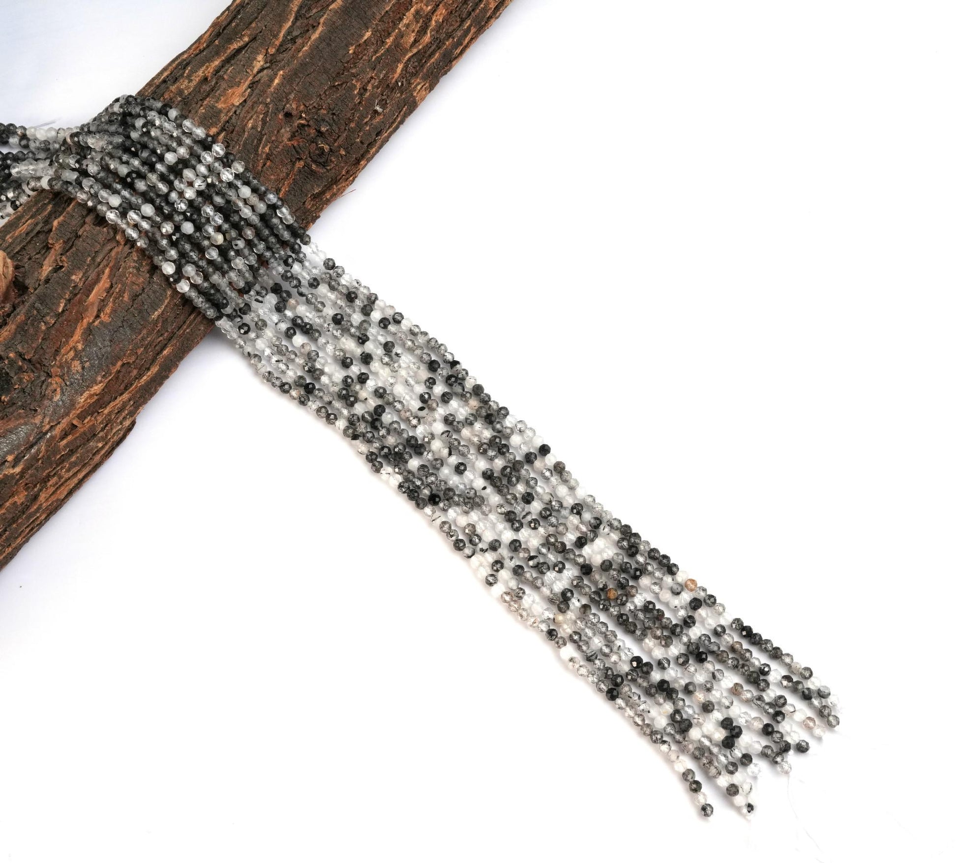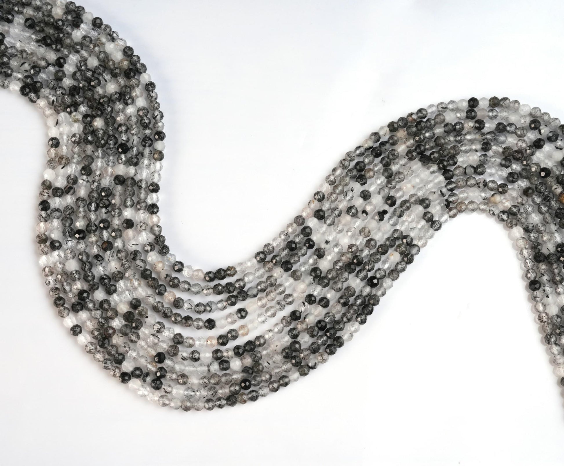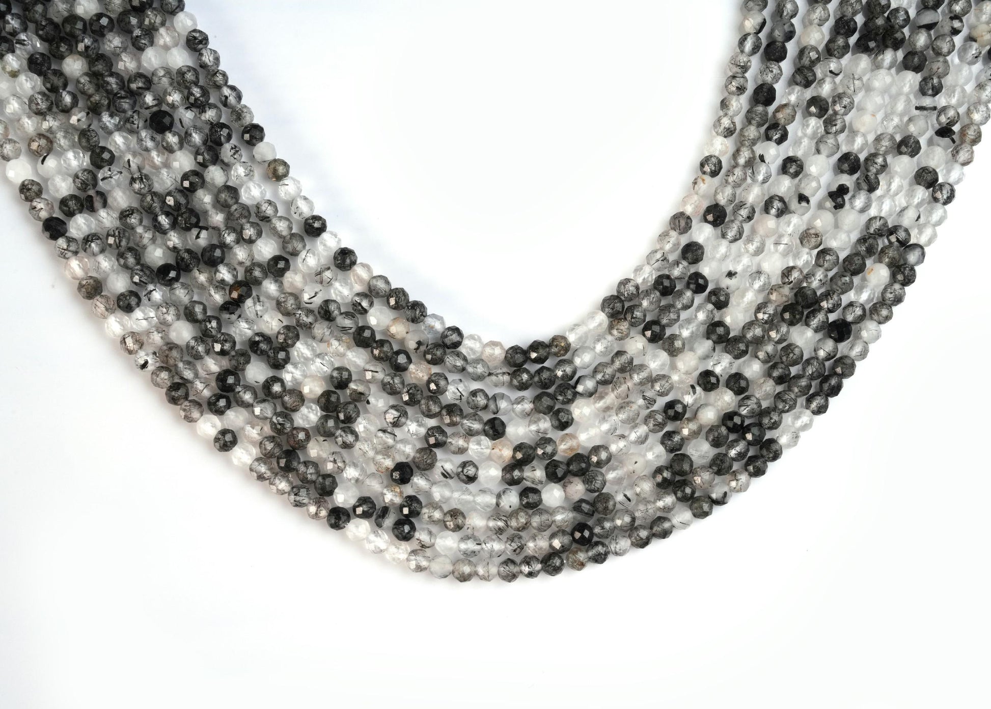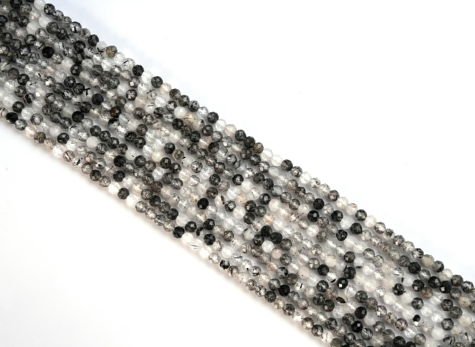 String Length : 15.5 Inches Each- **Premium Quality:** Crafted from authentic natural black rutile quartz, these micro-faceted beads boast exceptional durability and a stunning finish that elevates any jewelry piece.- **Versatile Sizes:** Available in 2mm, 3mm, and 4mm sizes, these beads offer endless possibilities for your crafting projects. Whether you're designing delicate earrings or bold statement necklaces, you’ll find the perfect fit for every creation.- **Unique Aesthetic:** Each bead is uniquely faceted to catch the light beautifully, creating a mesmerizing sparkle that adds depth and character to your designs. The striking black rutile inclusions make each piece one-of-a-kind—just like you!- **Crafting Made Easy:** With a generous string length of 15.5 inches, you'll have plenty of beads at your disposal to unleash your creativity without interruption. Ideal for both beginners and seasoned artisans alike!- **Embrace Your Creativity:** Perfect for jewelry making or other crafts, these beads allow you to express your personal style effortlessly. Transform ordinary materials into extraordinary pieces that reflect who you are—let your imagination run wild!Elevate your crafting experience with our Natural Black Rutile Quartz Gemstone Beads—where quality meets creativity!Number of beads per 15.5" strandWe sell our products by the strand, not by the number of beads. The following chart is for reference only. It's for traditional round-shaped beads string continuously without spacer beads or knots in between.2mm in diameter- about 195pcs/strand 3mm in diameter- about 130pcs/strand 4mm in diameter- about 96pcs/strand 6mm in diameter- about 68pcs/strand Note: -Bead sizes are approximate and may have a variation of +/- 0.5mm. -Drill hole sizes are approximate and may have a variation of +/- 0.2mm. -All natural gemstones vary in color and pattern. We try our best to make our photos represent the real products in person.