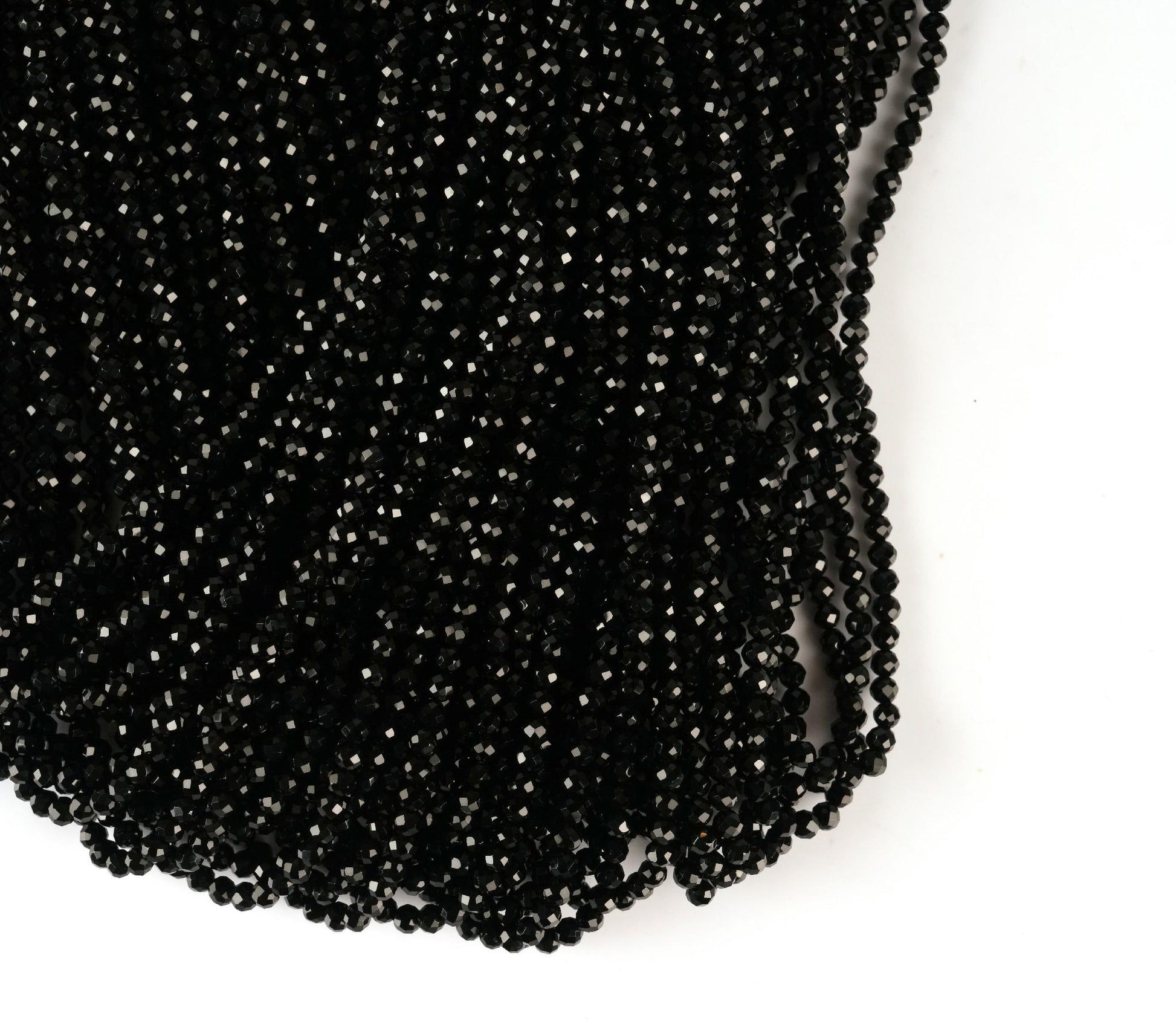 String Length : 15.5 Inches Each- **Premium Quality**: Crafted from genuine natural black tourmaline, these micro faceted beads boast exceptional quality and durability, ensuring your jewelry creations stand the test of time.- **Versatile Sizing Options**: Available in 2mm, 3mm, and 4mm sizes, these beads provide endless possibilities for your crafting projects. Whether you're designing delicate necklaces or bold statement pieces, you'll find the perfect fit for every style.- **Healing Properties**: Known for its protective qualities, black tourmaline is believed to absorb negative energy and promote emotional well-being. Incorporate these beads into your designs to create not just beautiful jewelry but also pieces that foster positivity and balance.- **Design Excellence**: Each bead features a stunning micro-faceted surface that catches the light beautifully, adding a touch of elegance to any creation. The rich black hue offers a timeless aesthetic that pairs effortlessly with various materials and colors.- **Unique Selling Point**: Unlike mass-produced alternatives, our natural black tourmaline beads are ethically sourced and hand-selected for their unique characteristics. Elevate your crafting experience with authentic gemstones that tell a story and resonate on a deeper level.Transform your jewelry-making journey with these exquisite natural black tourmaline beads—where beauty meets purpose!Number of beads per 15.5" strandWe sell our products by the strand, not by the number of beads. The following chart is for reference only. It's for traditional round-shaped beads strung continuously without spacer beads or knots in between.2mm in diameter- about 195pcs/strand 3mm in diameter- about 130pcs/strand 4mm in diameter- about 96pcs/strand 6mm in diameter- about 68pcs/strand Note: -Bead sizes are approximate and may have a variation of +/- 0.5mm. -Drill hole sizes are approximate and may have a variation of +/- 0.2mm. -All natural gemstones vary in color and pattern. We try our best to make our photos represent the real products in person.