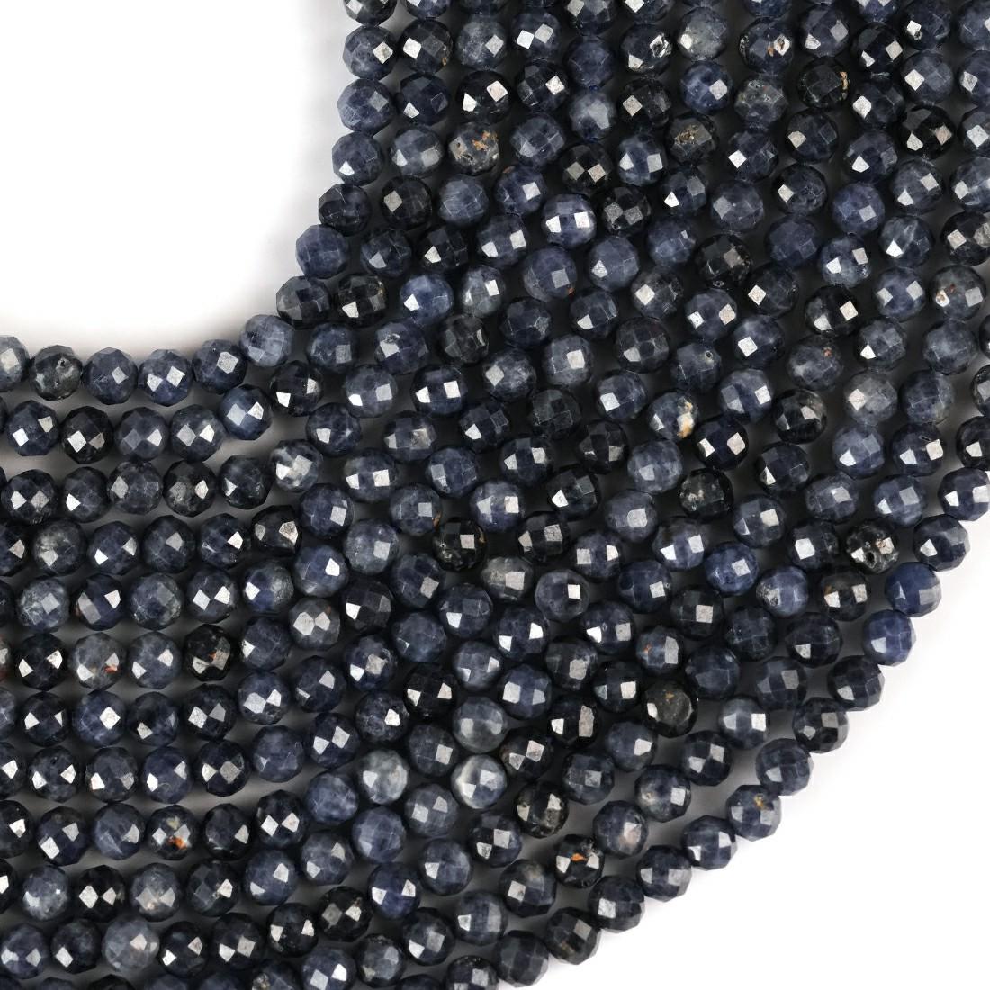 Natural Blue Sapphire Gemstone Round Micro Faceted Beads String 15.5 Inches Long 2/3/4/6 MM for Jewelry Making and Crafting - AS & JG