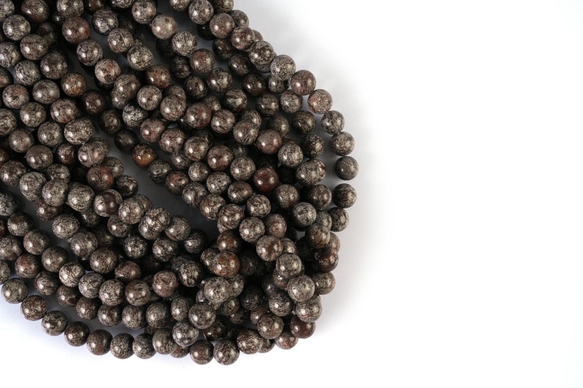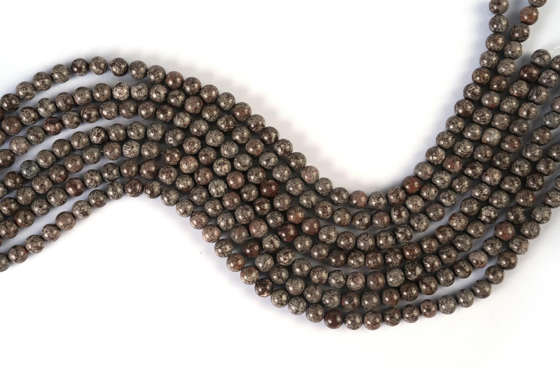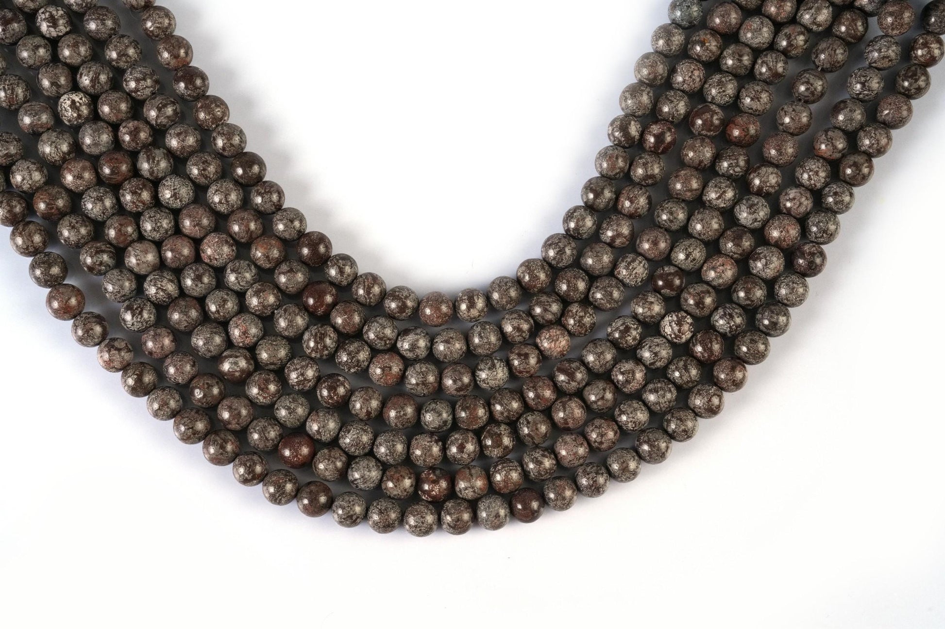 String Length : 15.5 Inches Each- **Premium Quality**: Crafted from top-tier natural brown snowflake obsidian, these smooth round beads promise unparalleled quality and durability, ensuring your jewelry creations stand the test of time.- **Versatile Sizes**: Available in 4mm, 6mm, 8mm, and 10mm sizes, these beads offer endless possibilities for customization. Whether you're designing delicate bracelets or bold statement pieces, you'll find the perfect fit for every project.- **Unique Aesthetic**: Each bead showcases stunning snowflake patterns that are unique to this gemstone. The mesmerizing contrast of deep brown with white speckles adds a touch of elegance and intrigue to your jewelry designs.- **Easy to Work With**: Smooth surface finish allows for effortless stringing and crafting. Say goodbye to frustrating snagging—these beads glide seamlessly onto threads and wires, making your creative process enjoyable and efficient.- **Empowering Creativity**: Perfect for both beginners and seasoned artisans alike! Use these exquisite beads to express your individuality through custom jewelry pieces that reflect your personal style or make heartfelt gifts for loved ones.Elevate your crafting experience with our Natural Brown Snowflake Obsidian Gemstone Beads—where beauty meets functionality!Number of beads per 15.5" strandWe sell our products by the strand, not by the number of beads. The following chart is for reference only. It's for traditional round-shaped beads string continuously without spacer beads or knots in between.4mm in diameter- about 96pcs/strand 6mm in diameter- about 68pcs/strand 8mm in diameter- about 48pcs/strand 10mm in diameter- about 38pcs/strand Note: -Bead sizes are approximate and may have a variation of +/- 0.5mm. -Drill hole sizes are approximate and may have a variation of +/- 0.2mm. -All natural gemstones vary in color and pattern. We try our best to make our photos represent the real products in person.