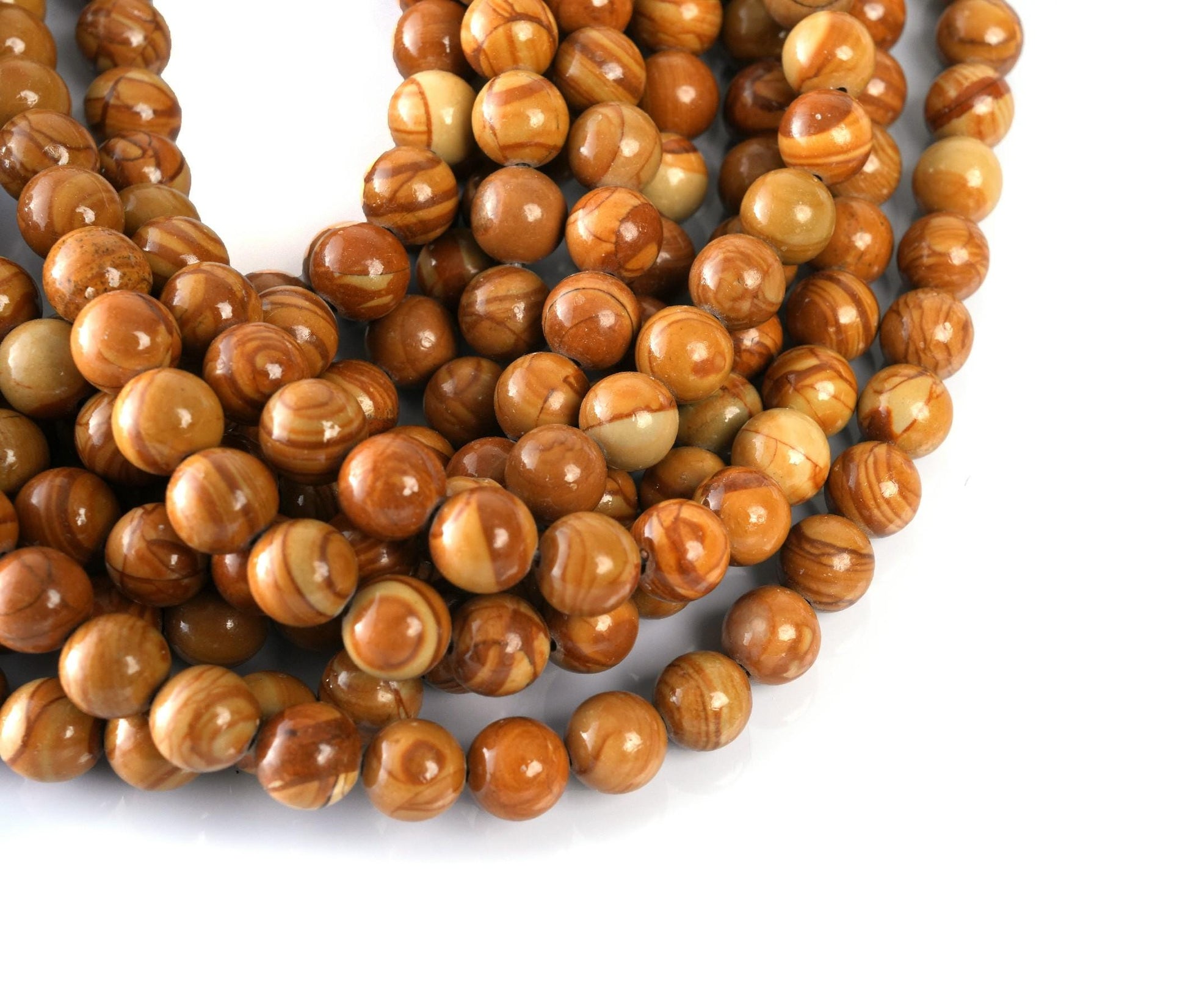 Natural Camel Skin Jasper Gemstone Round Smooth Beads String 15.5 Inches Long 4/6/8/10 MM for Jewelry Making and Crafting - AS & JG