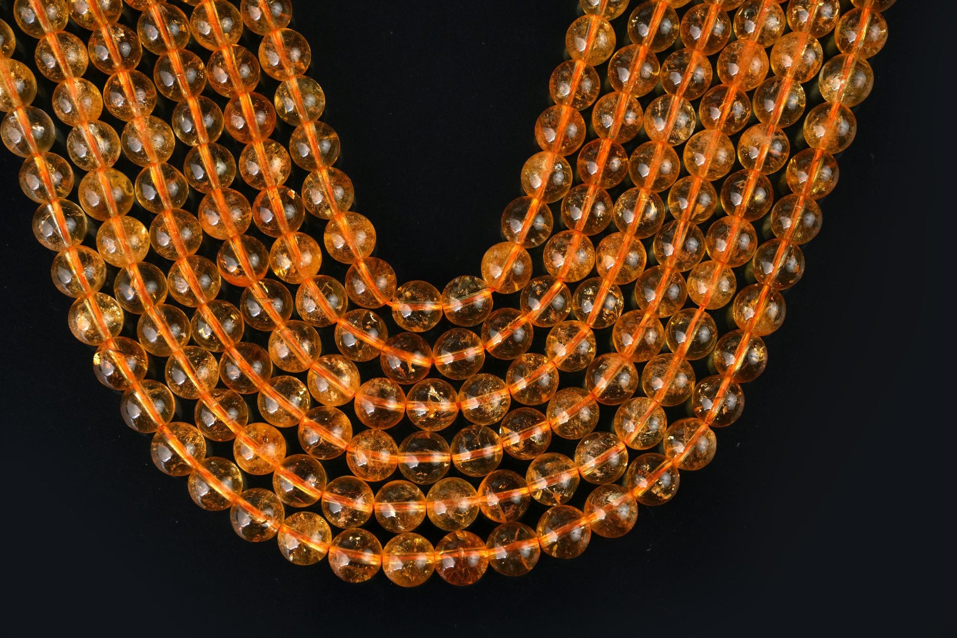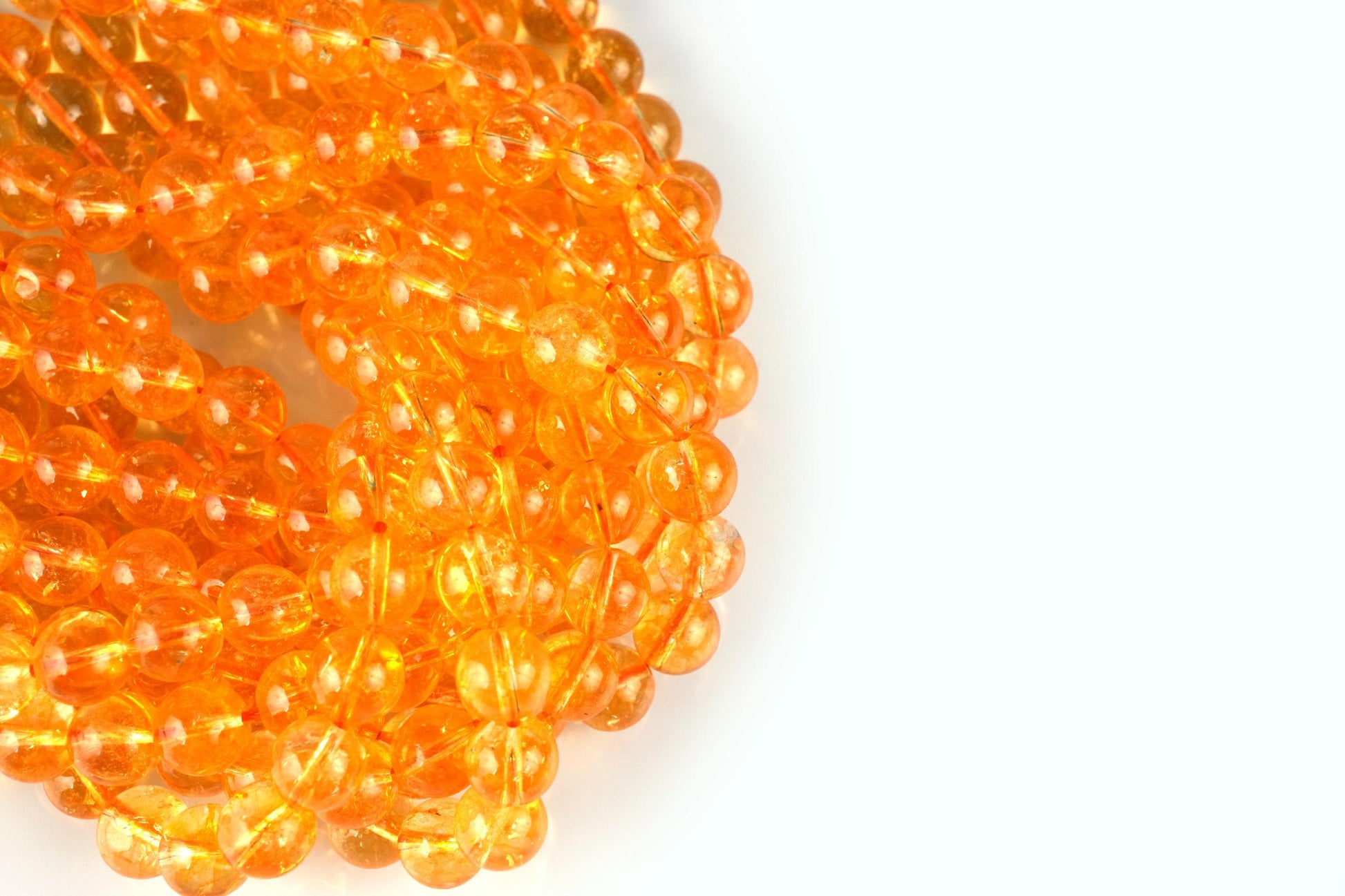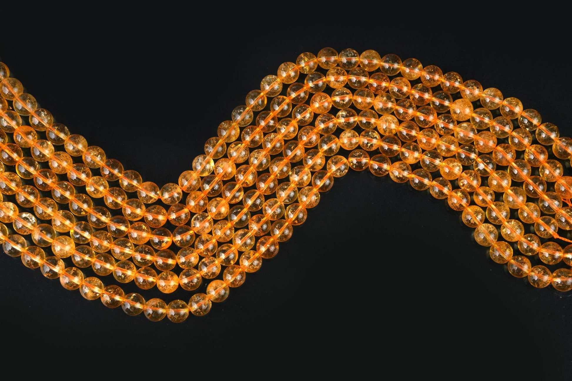 String Length : 15.5 Inches Each- **Premium Quality**: Crafted from top-tier natural citrine, these beads exude unmatched quality and durability. Each bead is polished to perfection, ensuring a smooth finish that enhances your jewelry creations.- **Versatile Sizes**: Available in 4mm, 6mm, 8mm, and 10mm sizes, this string of beads offers endless possibilities for your crafting projects. Whether you're designing delicate earrings or bold statement necklaces, you'll find the perfect size to bring your vision to life.- **Vibrant Energy**: Known as the "Merchant's Stone," citrine is believed to attract wealth and prosperity. Incorporate these radiant beads into your designs not just for their beauty but also for their positive energy that can uplift both the wearer and the creator.- **Design Excellence**: With a length of 15.5 inches, this string provides ample material for multiple projects. The uniform round shape allows for seamless threading and effortless design creation—ideal for both novice crafters and seasoned jewelers alike.- **Unique Selling Point**: Unlike synthetic alternatives, our natural citrine beads retain their unique character with subtle variations in color and texture. This authenticity ensures that each piece you create is one-of-a-kind—just like you!Elevate your jewelry-making experience with these stunning natural citrine gemstone beads! Perfect for adding a touch of elegance and positivity to any project.Number of beads per 15.5" strandWe sell our products by the strand, not by the number of beads. The following chart is for reference only. It's for traditional round-shaped beads string continuously without spacer beads or knots in between.4mm in diameter- about 96pcs/strand 6mm in diameter- about 68pcs/strand 8mm in diameter- about 48pcs/strand 10mm in diameter- about 38pcs/strand Note: -Bead sizes are approximate and may have a variation of +/- 0.5mm. -Drill hole sizes are approximate and may have a variation of +/- 0.2mm. -All natural gemstones vary in color and pattern. We try our best to make our photos represent the real products in person.