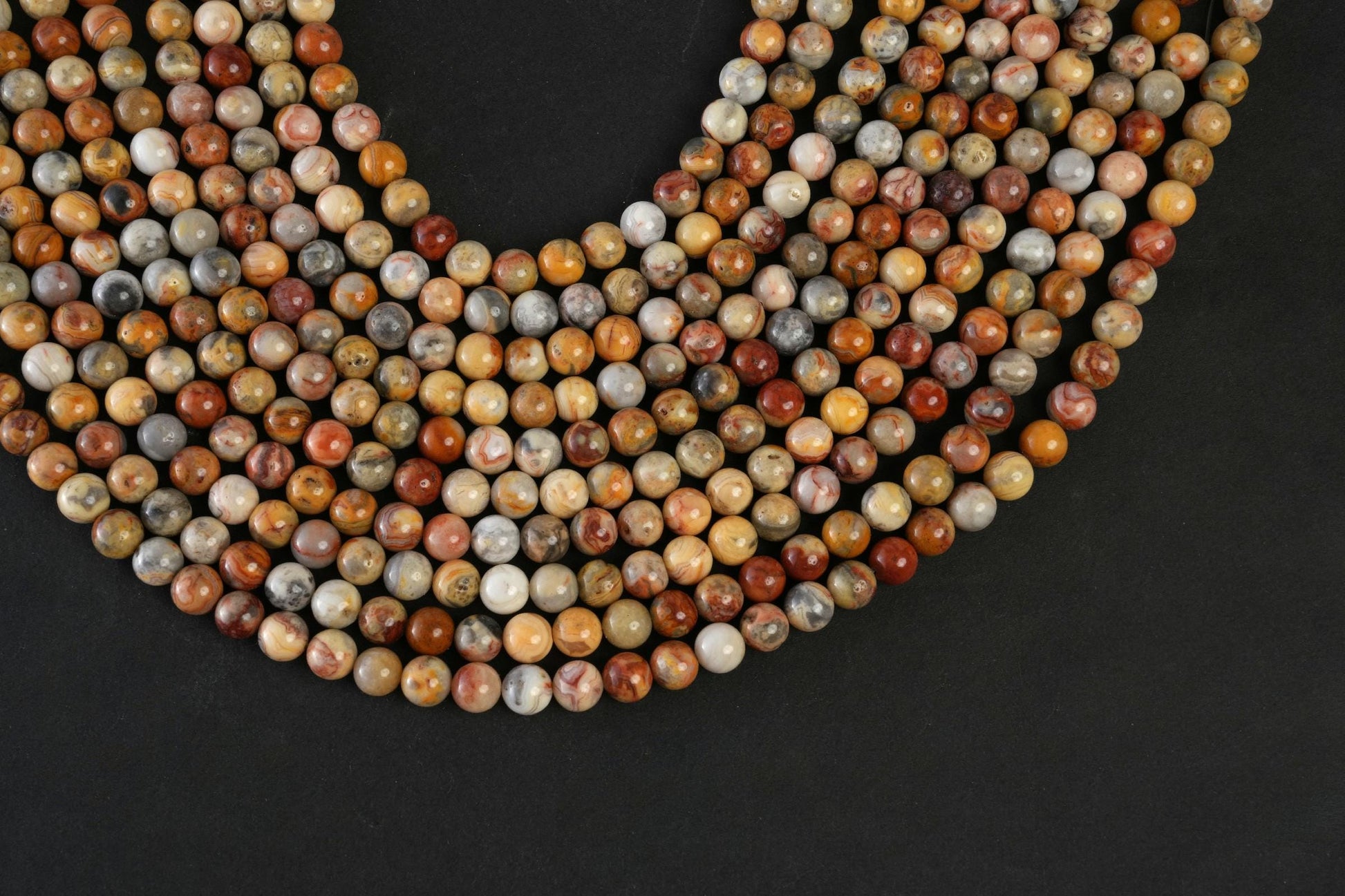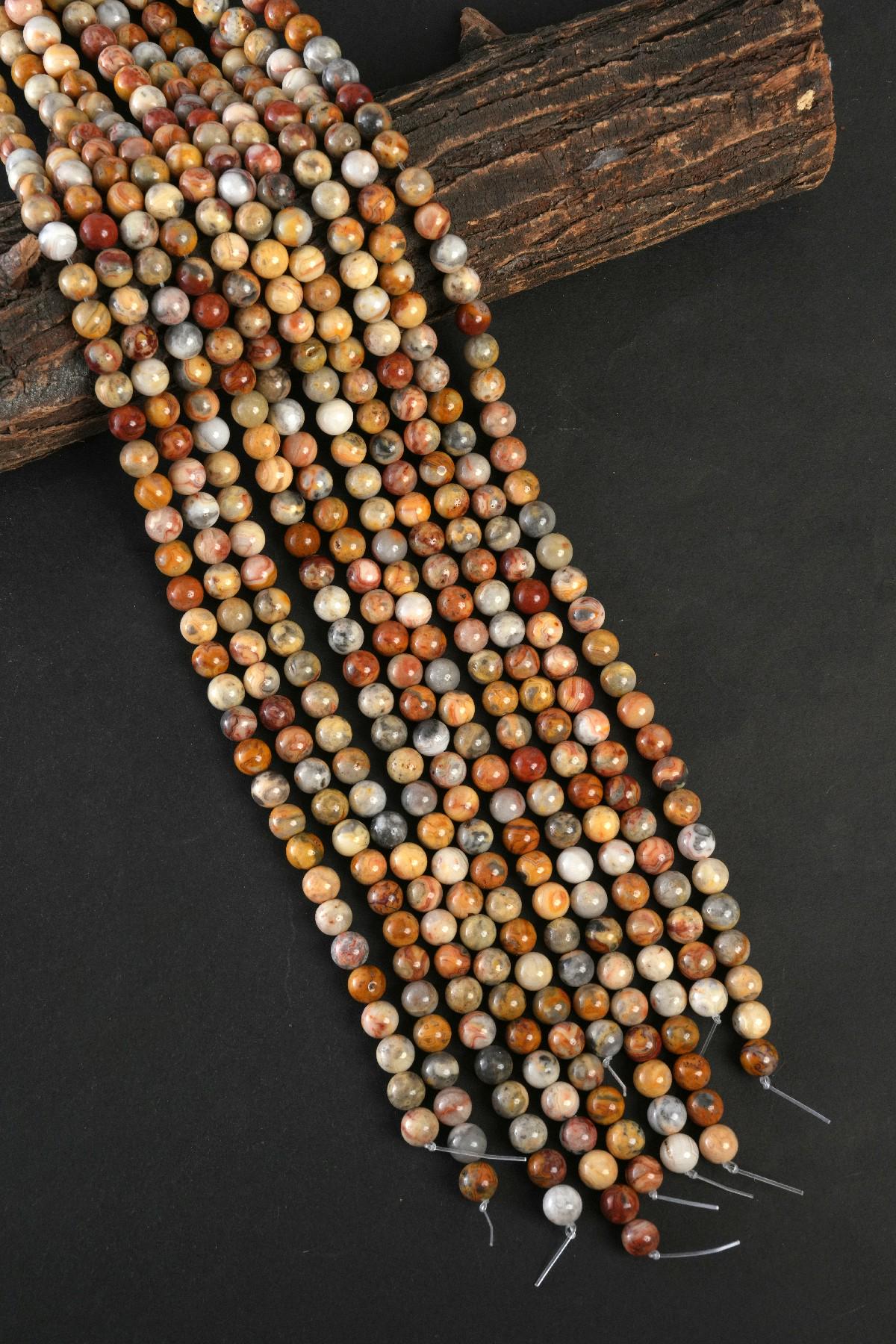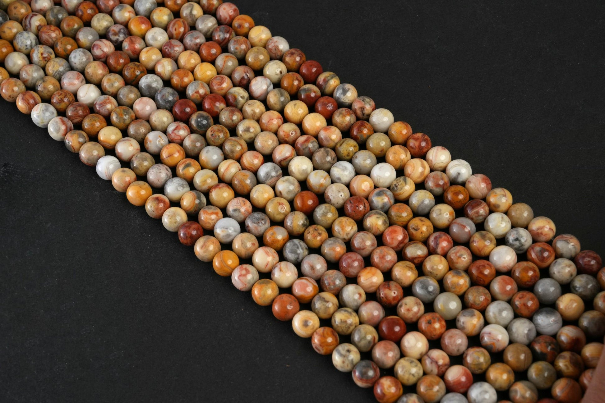 String Length : 15.5 Inches Each- **Premium Quality**: Crafted from exquisite natural Crazy Lace Agate, these round smooth beads are designed to offer exceptional quality and durability, making them a perfect choice for your jewelry-making projects.- **Versatile Sizes**: Available in 4mm, 6mm, 8mm, and 10mm sizes, these beads provide endless possibilities for creativity. Whether you’re crafting delicate bracelets or bold statement necklaces, you’ll find the perfect fit for every design.- **Vibrant Patterns**: Each bead showcases unique swirls and patterns that capture the eye. The intricate designs not only add visual interest but also infuse your creations with a touch of nature’s artistry—making every piece truly one-of-a-kind.- **Easy to Work With**: Measuring at 15.5 inches long on a convenient string, these beads are ready to use right out of the package! Perfect for both beginners and seasoned crafters alike, they simplify the jewelry-making process while sparking your imagination.- **Emotional Connection**: Wearing jewelry made from Crazy Lace Agate is said to promote joy and positivity. By incorporating these beautiful beads into your designs, you’re not just creating accessories; you're crafting pieces that inspire happiness and uplift spirits.Elevate your crafting experience with our Natural Crazy Lace Agate Gemstone Round Smooth Beads—where beauty meets functionality!Number of beads per 15.5" strandWe sell our products by the strand, not by the number of beads. The following chart is for reference only. It's for traditional round-shaped beads string continuously without spacer beads or knots in between.4mm in diameter- about 96pcs/strand 6mm in diameter- about 68pcs/strand 8mm in diameter- about 48pcs/strand 10mm in diameter- about 38pcs/strand Note: -Bead sizes are approximate and may have a variation of +/- 0.5mm. -Drill hole sizes are approximate and may have a variation of +/- 0.2mm. -All natural gemstones vary in color and pattern. We try our best to make our photos represent the real products in person.