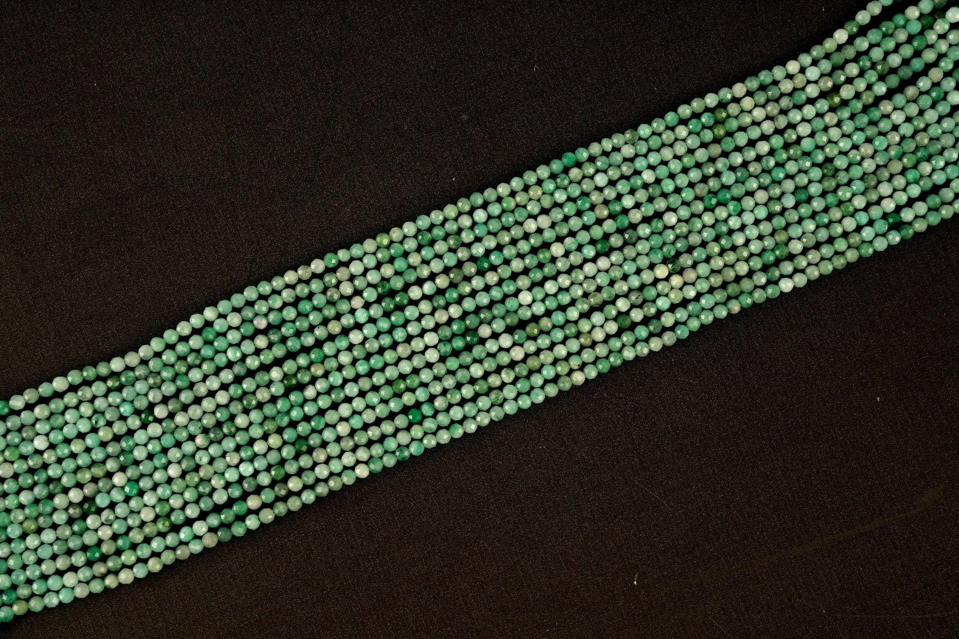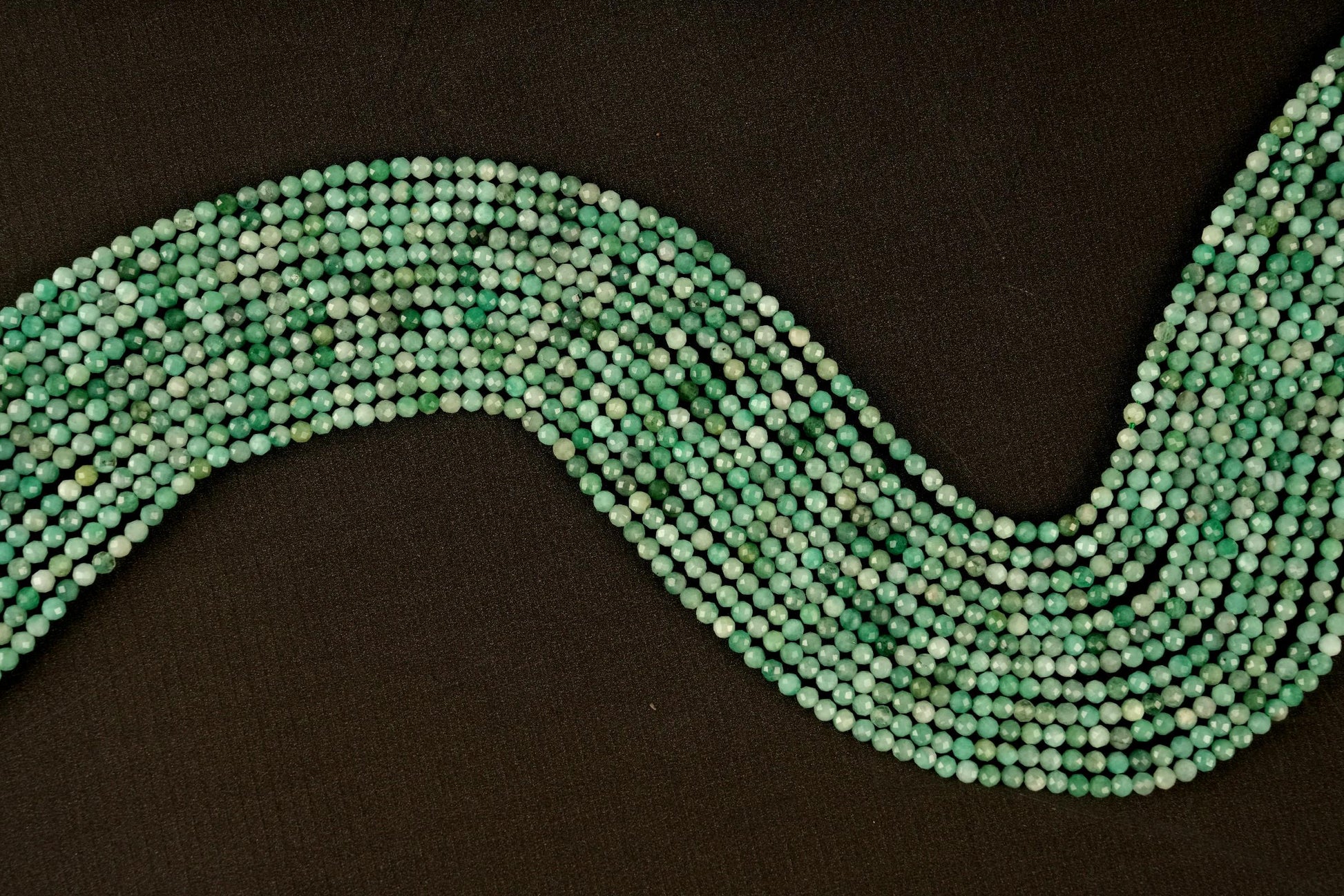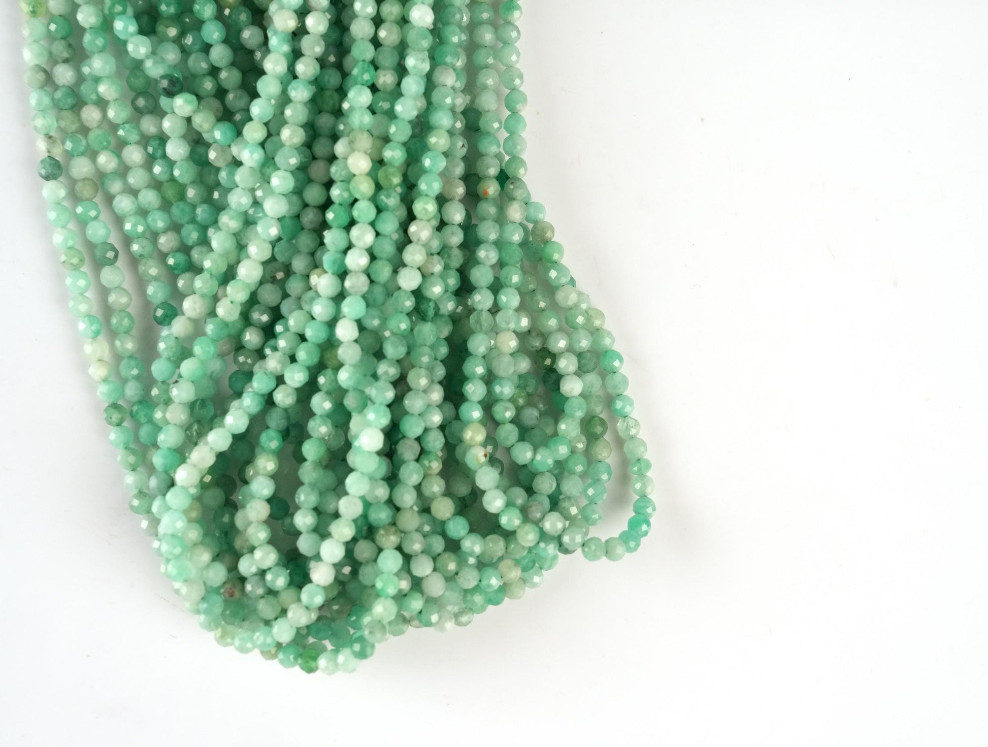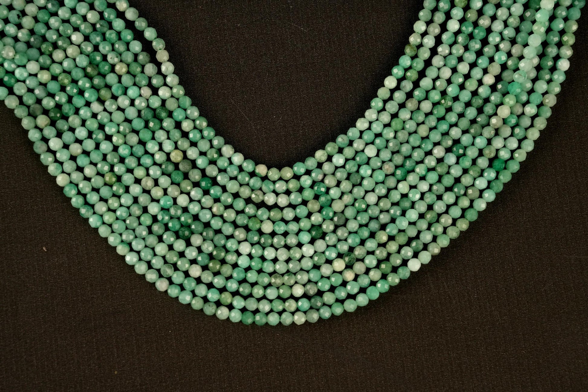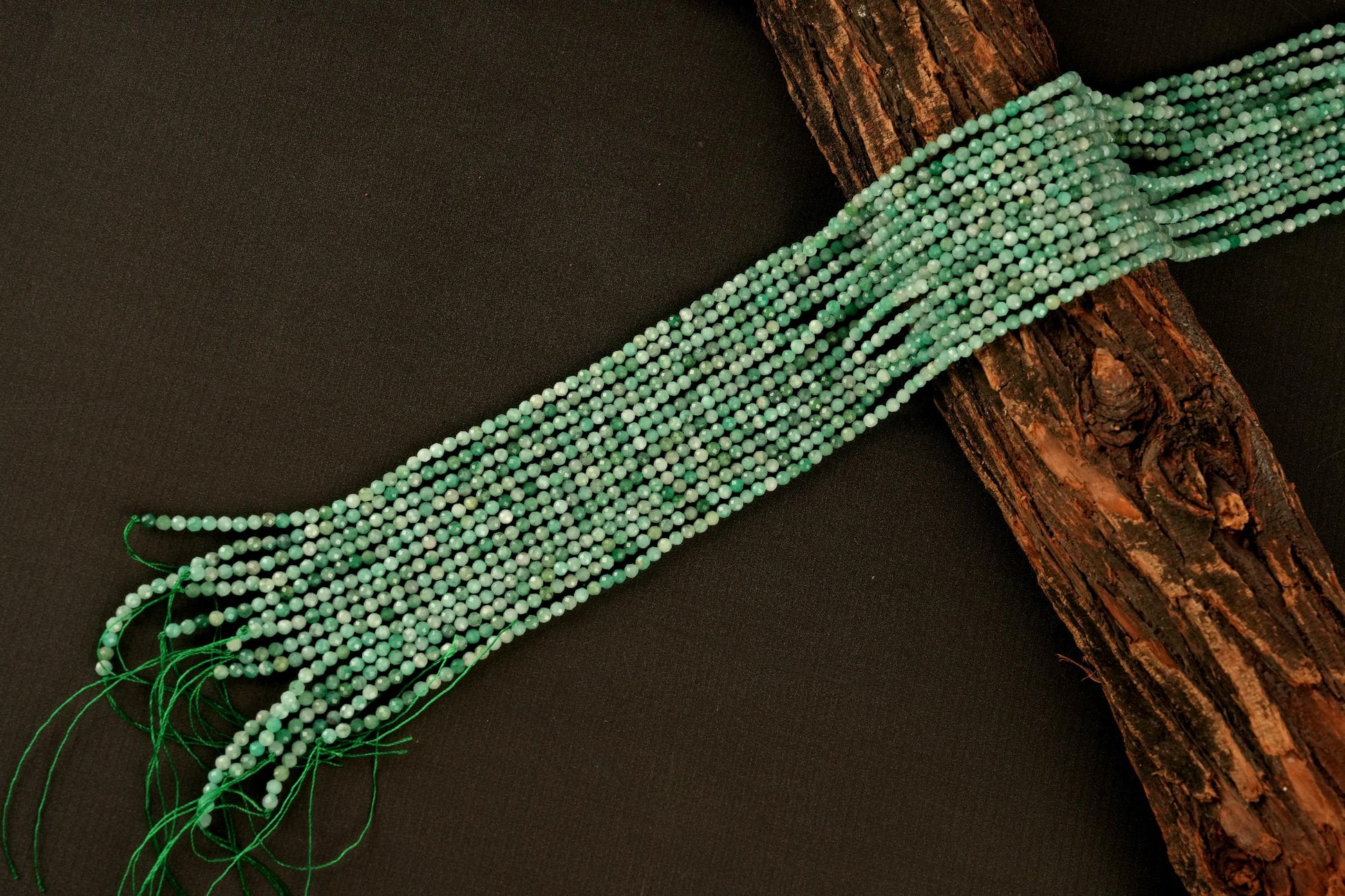 String Length : 15.5 Inches Each- **Premium Quality:** Crafted from authentic natural emerald, these micro faceted beads are designed to bring a touch of luxury and elegance to your jewelry creations. Each bead is meticulously selected for its vibrant color and durability, ensuring that your pieces stand the test of time.- **Versatile Sizes:** Available in 2/3/4/6 MM sizes, this string of beads offers endless possibilities for creativity. Whether you're designing delicate earrings or bold statement necklaces, you can mix and match sizes to achieve the perfect look that suits any occasion.- **Perfect Length:** At 15.5 inches long, this string provides ample material for multiple projects. Create stunning bracelets or layer them in necklaces—your imagination is the only limit! The length ensures you have enough beads to express your unique style without running short.- **Design Excellence:** Each bead features a micro-faceted surface that catches light beautifully, adding depth and sparkle to your designs. The classic round shape complements any aesthetic—from bohemian chic to modern minimalism—making it a staple in every jewelry maker's collection.- **Unique Selling Point:** What sets our emerald beads apart is their natural origin; each bead tells a story of nature’s artistry. Embrace sustainability while crafting beautiful pieces that resonate with authenticity and elegance. Elevate your creations with gemstones that not only shine but also carry the rich heritage of one of Earth's most cherished treasures.Transform your crafting experience with these exquisite natural emerald beads—where quality meets creativity!Number of beads per 15.5" strandWe sell our products by the strand, not by the number of beads. The following chart is for reference only. It's for traditional round-shaped beads strung continuously without spacer beads or knots in between.2mm in diameter- about 195pcs/strand 3mm in diameter- about 130pcs/strand 4mm in diameter- about 96pcs/strand 6mm in diameter- about 68pcs/strand Note: -Bead sizes are approximate and may have a variation of +/- 0.5mm. -Drill hole sizes are approximate and may have a variation of +/- 0.2mm. -All natural gemstones vary in color and pattern. We try our best to make our photos represent the real products in person.