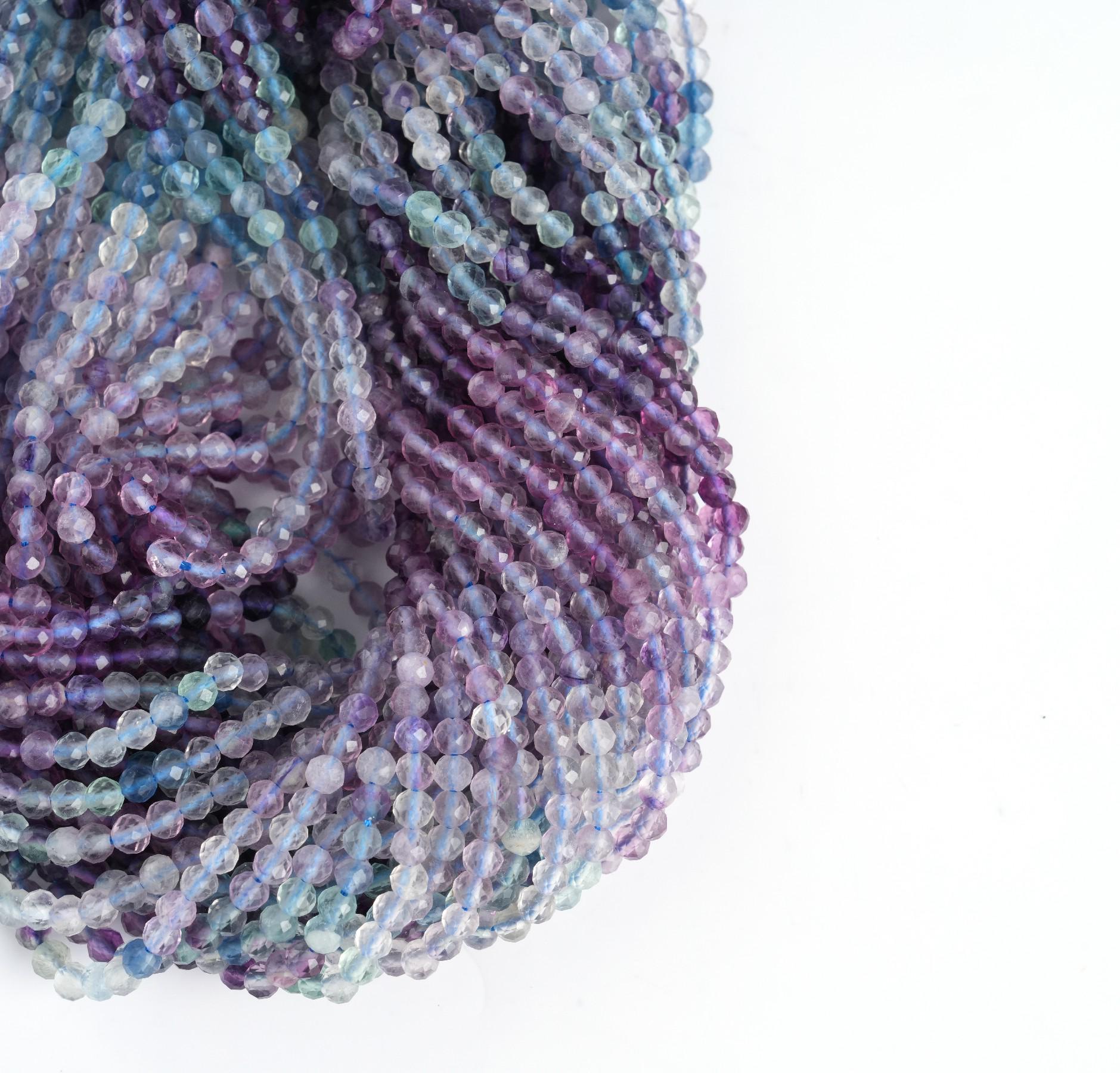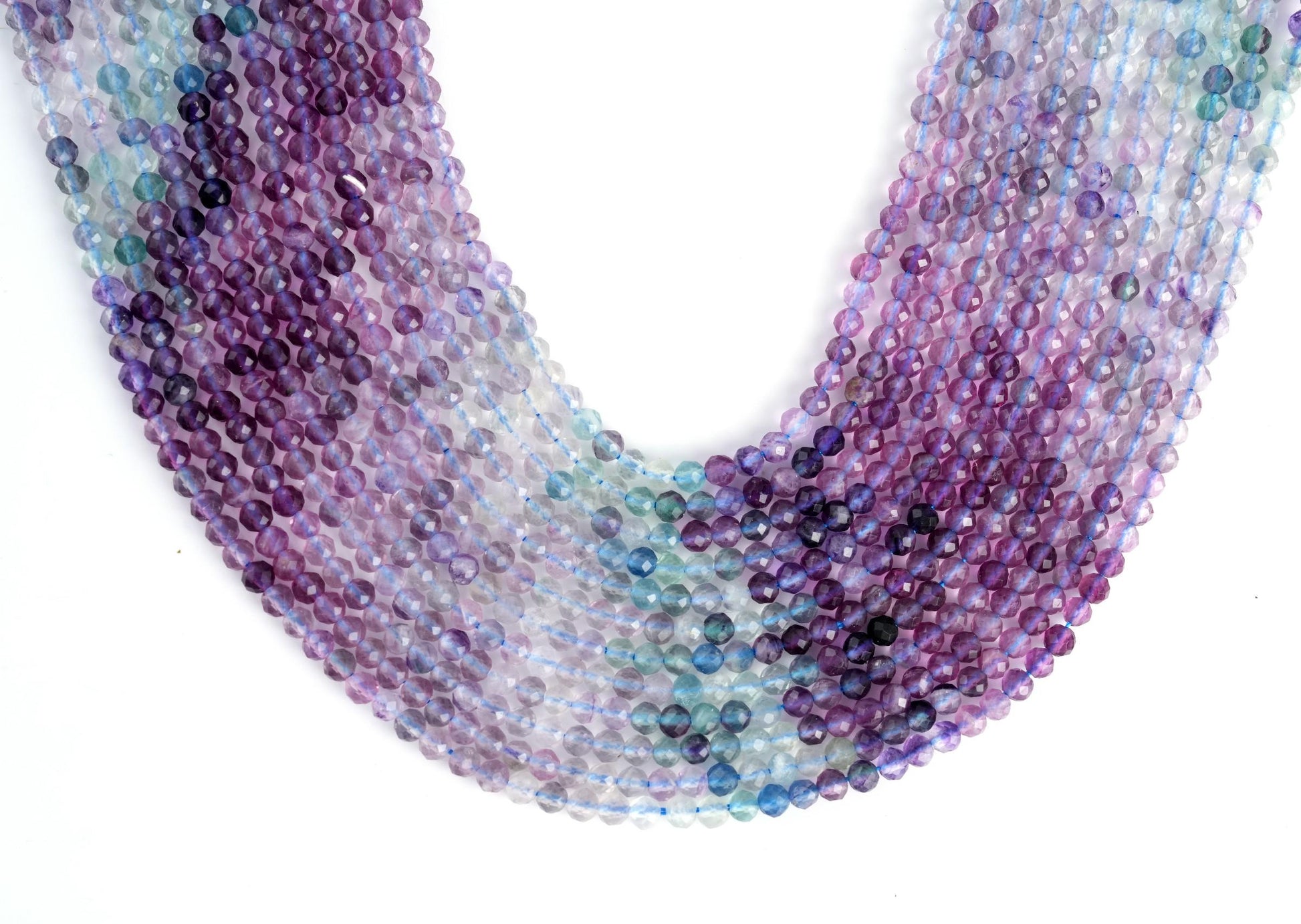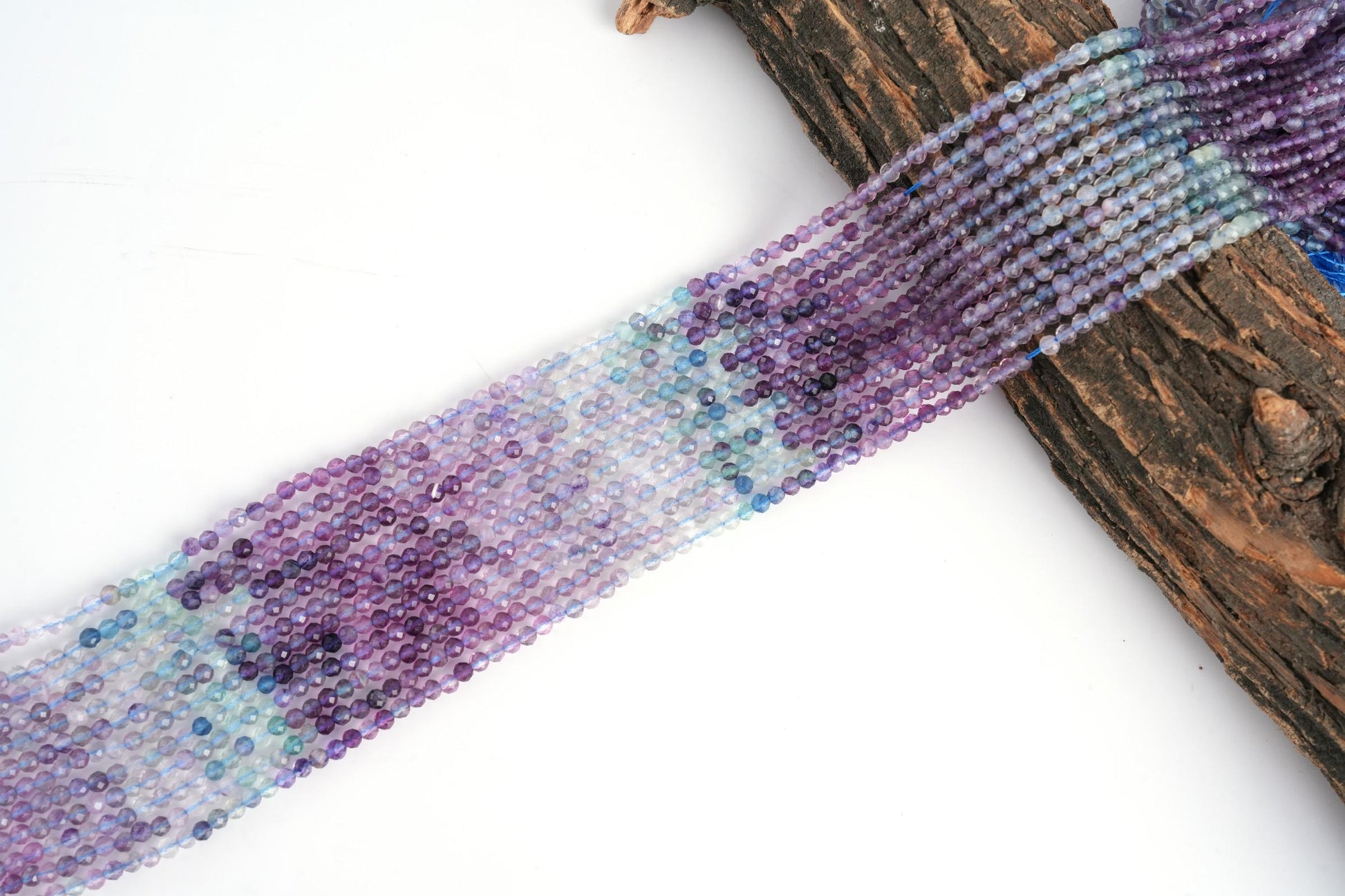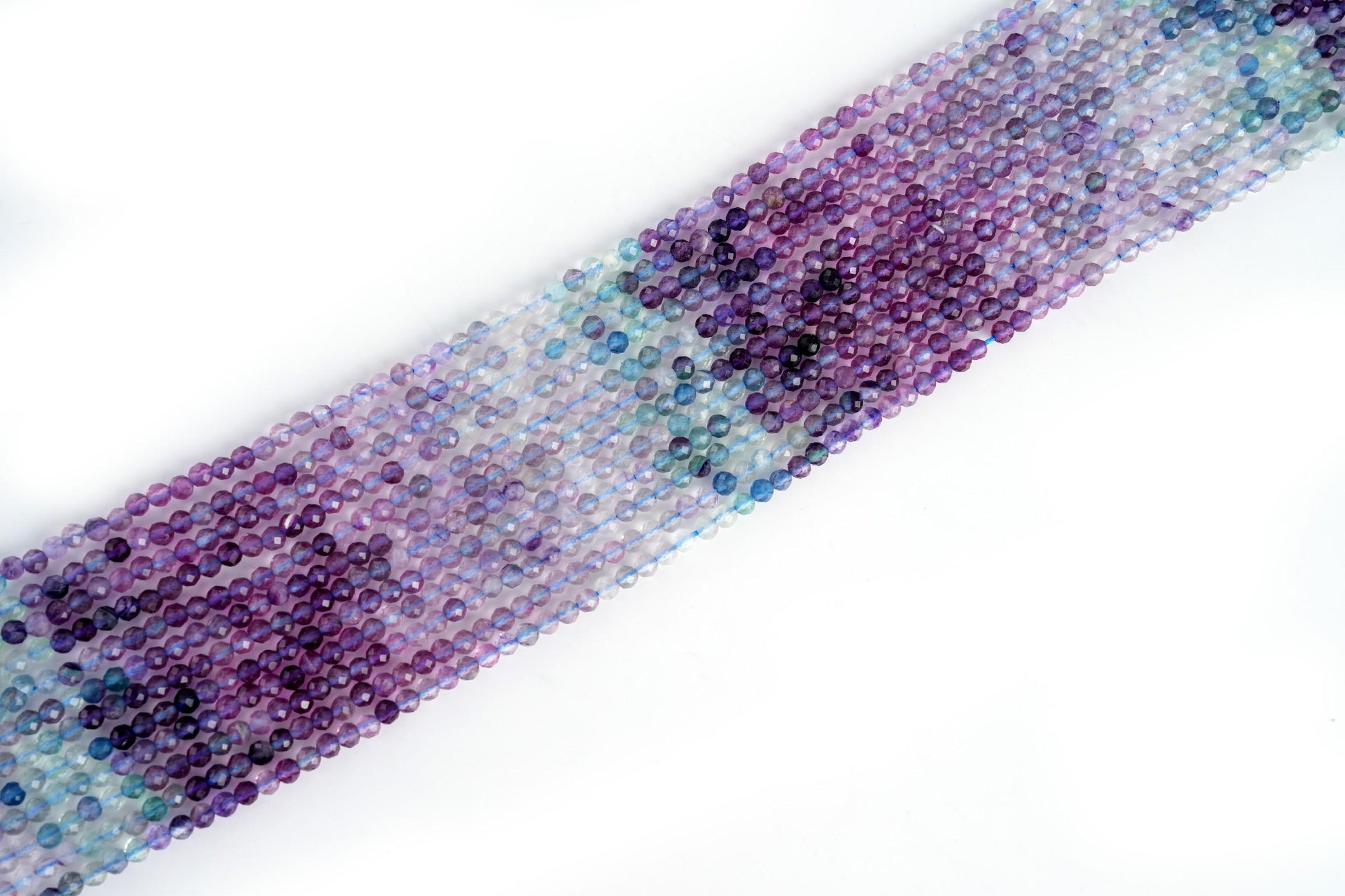 String Length : 15.5 Inches Each- **Premium Quality:** Crafted from authentic natural fluorite, these micro faceted beads offer unmatched durability and a luxurious feel. Each bead is carefully selected to ensure you receive only the finest quality for your jewelry-making projects.- **Vibrant Color Spectrum:** Experience the enchanting shades of fluorite with colors ranging from deep greens to soft purples. This stunning array not only enhances your creations but also adds a touch of elegance and sophistication that will captivate onlookers.- **Versatile Sizing Options:** Available in 2mm, 3mm, 4mm, and 6mm sizes, these beads provide endless possibilities for creativity. Whether you're designing delicate necklaces or bold statement pieces, you'll find the perfect fit for every project.- **Design Excellence:** The round micro faceting technique reflects light beautifully, creating an eye-catching sparkle that elevates any piece of jewelry. These beads are not just components; they are essential elements that bring your artistic vision to life.- **Crafting Made Easy:** With a convenient string length of 15.5 inches, you have ample material to work with—perfect for both beginners and seasoned artisans alike! Let your imagination run wild as you create unique bracelets, earrings, or even home décor items that showcase your personal style.Transform your crafting experience with our Natural Fluorite Shaded Micro Faceted Beads—where quality meets beauty in every strand!Number of beads per 15.5" strandWe sell our products by the strand, not by the number of beads. The following chart is for reference only. It's for traditional round-shaped beads strung continuously without spacer beads or knots in between.2mm in diameter- about 195pcs/strand 3mm in diameter- about 130pcs/strand 4mm in diameter- about 96pcs/strand 6mm in diameter- about 68pcs/strand Note: -Bead sizes are approximate and may have a variation of +/- 0.5mm. -Drill hole sizes are approximate and may have a variation of +/- 0.2mm. -All natural gemstones vary in color and pattern. We try our best to make our photos represent the real products in person.