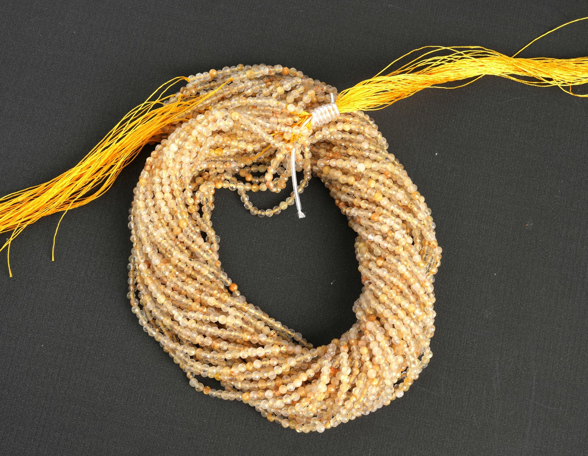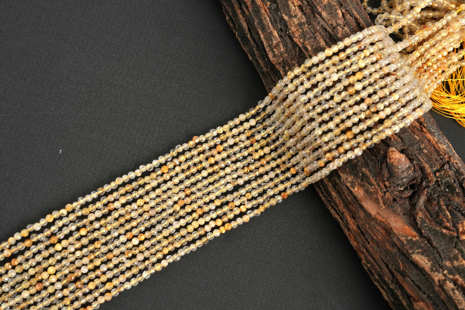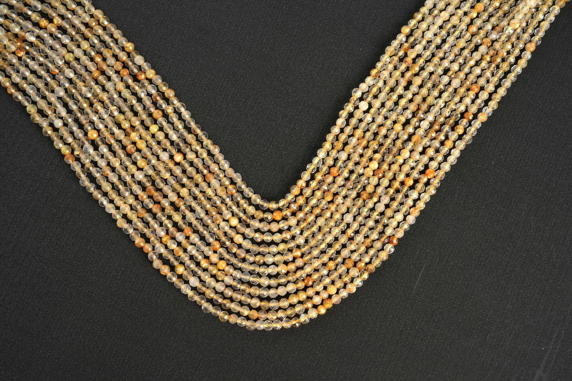 ### Natural Golden Rutile Quartz Micro Faceted Beads