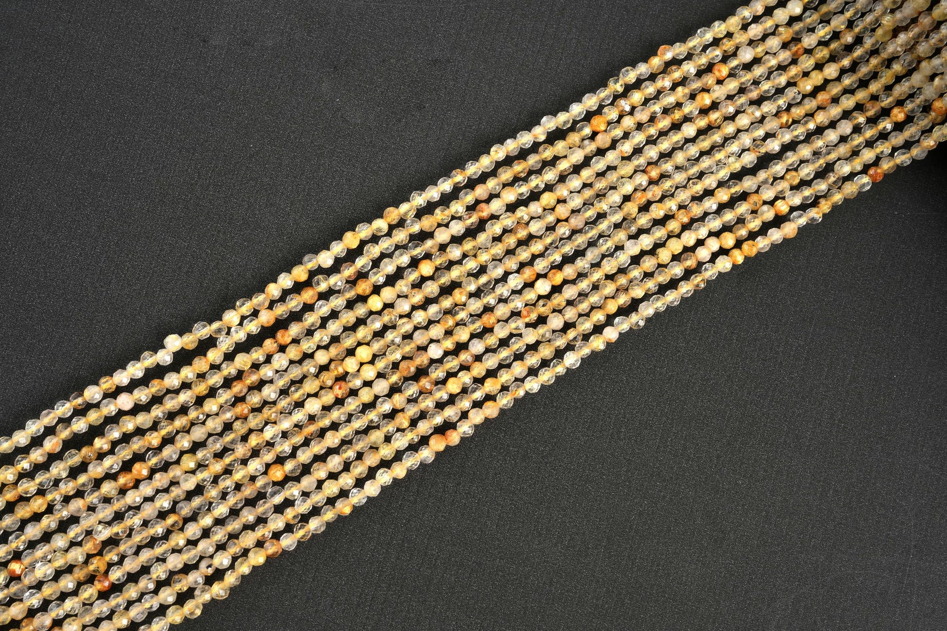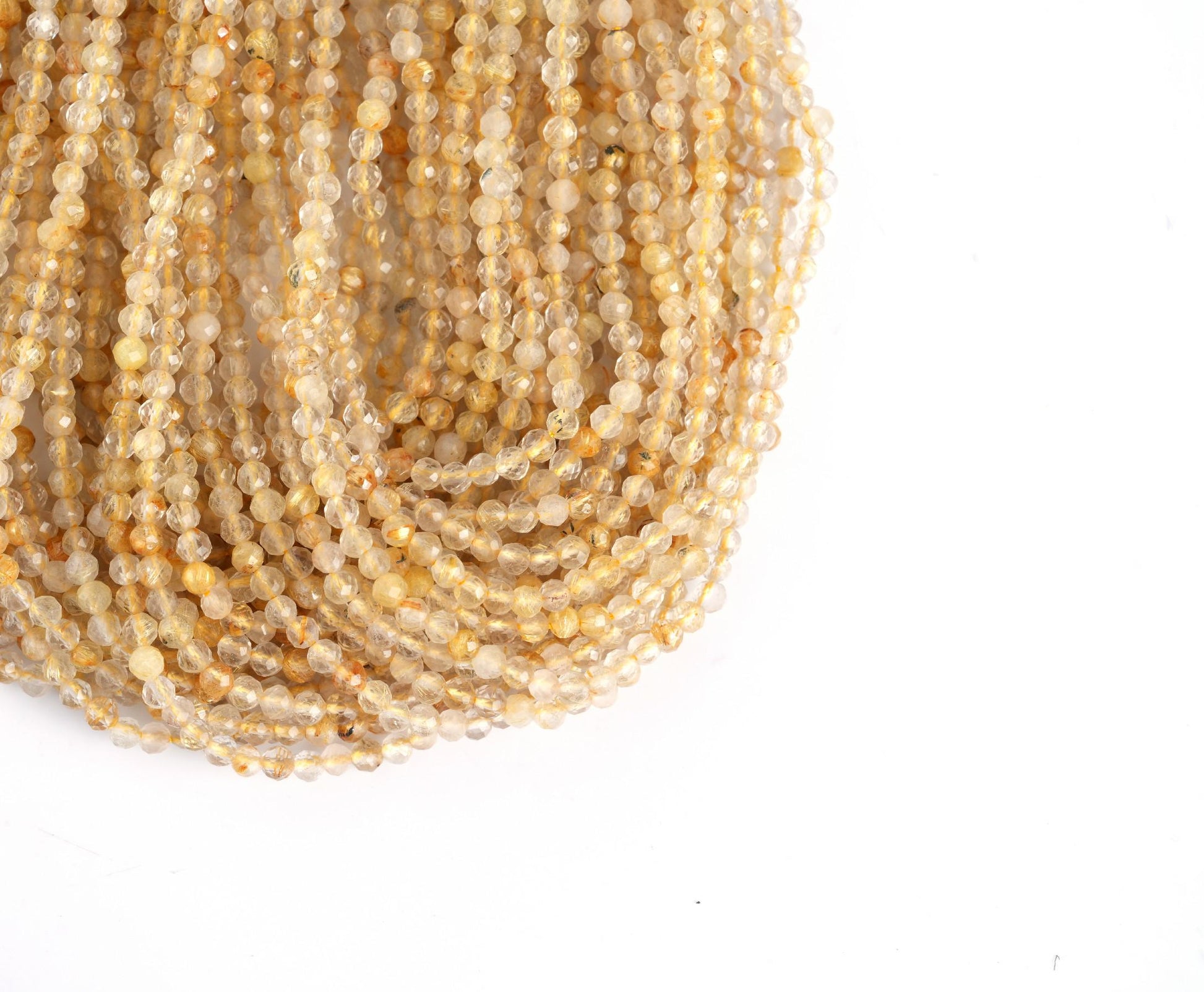 String Length : 15.5 Inches Each- **Premium Quality:** Crafted from authentic Natural Golden Rutile Quartz, these micro-faceted beads offer unmatched quality and durability. Each bead is meticulously selected to ensure you receive only the finest materials for your jewelry-making projects.- **Radiant Aesthetic:** The stunning golden inclusions within each bead create a captivating sparkle that catches the light beautifully. Perfect for adding a touch of elegance and sophistication to any piece, these beads will make your creations stand out in any crowd.- **Versatile Sizes:** Available in 2mm, 3mm, 4mm, and 6mm sizes, this string of beads allows for endless creative possibilities. Whether you're designing delicate necklaces or bold statement pieces, you'll find the perfect size to suit your vision.- **Easy to Work With:** Measuring at 15.5 inches long, this string of beads provides ample material for multiple projects without the hassle of frequent reordering. Ideal for both beginners and seasoned crafters alike—let your creativity flow effortlessly!- **Unique Energy Properties:** Known for its metaphysical properties, Golden Rutile Quartz is believed to enhance clarity and focus while promoting positive energy flow. Incorporating these beautiful beads into your designs not only elevates their aesthetic but also adds meaningful intention behind each piece.Transform your jewelry-making journey with our Natural Golden Rutile Quartz Micro Faceted Beads! Whether crafting gifts or personal treasures, these exquisite beads are sure to inspire creativity and bring joy into every project.Number of beads per 15.5" strandWe sell our products by the strand, not by the number of beads. The following chart is for reference only. It's for traditional round-shaped beads strung continuously without spacer beads or knots in between.2mm in diameter- about 195pcs/strand 3mm in diameter- about 130pcs/strand 4mm in diameter- about 96pcs/strand 6mm in diameter- about 68pcs/strand Note: -Bead sizes are approximate and may have a variation of +/- 0.5mm. -Drill hole sizes are approximate and may have a variation of +/- 0.2mm. -All natural gemstones vary in color and pattern. We try our best to make our photos represent the real products in person