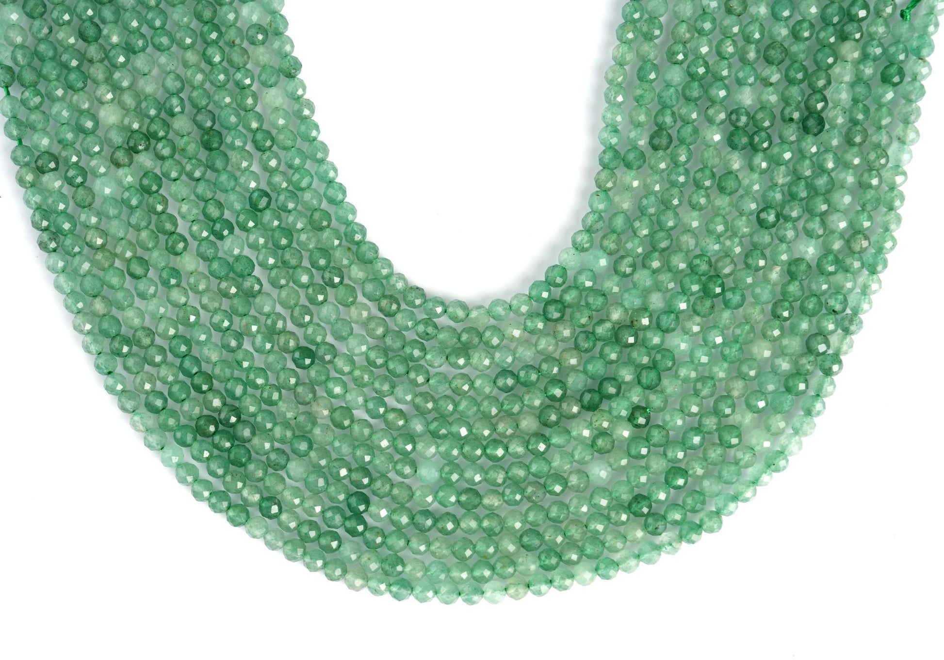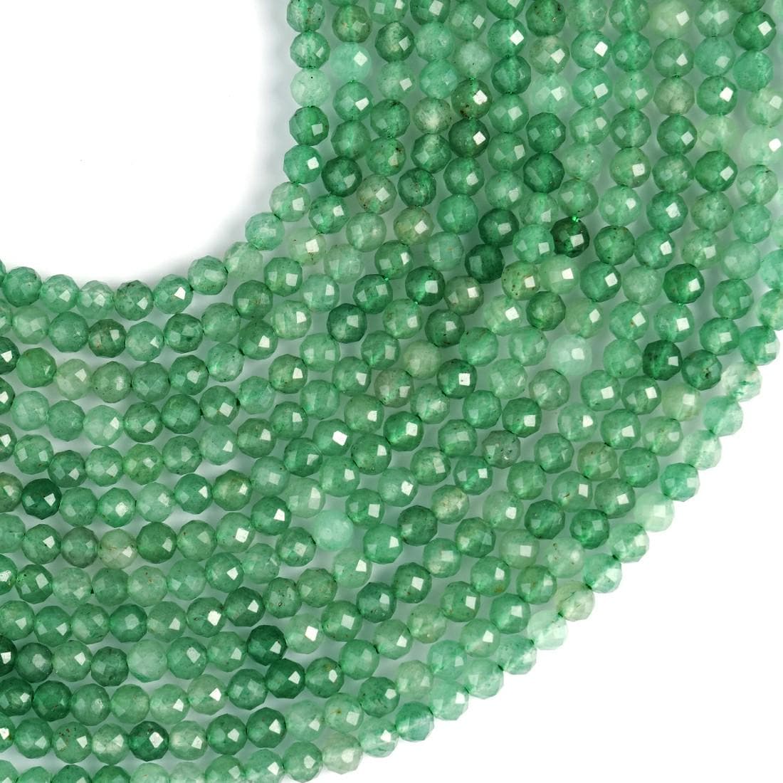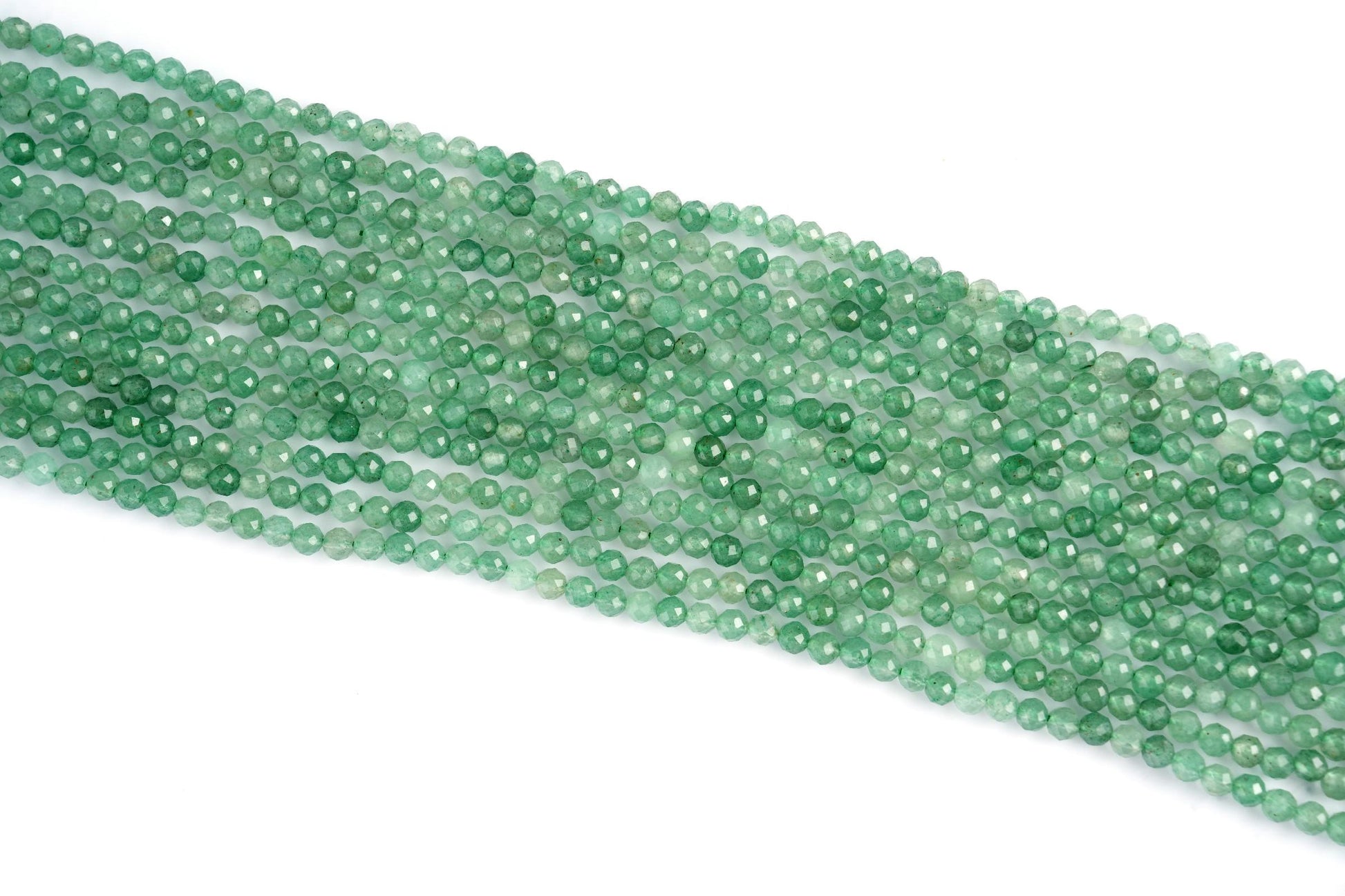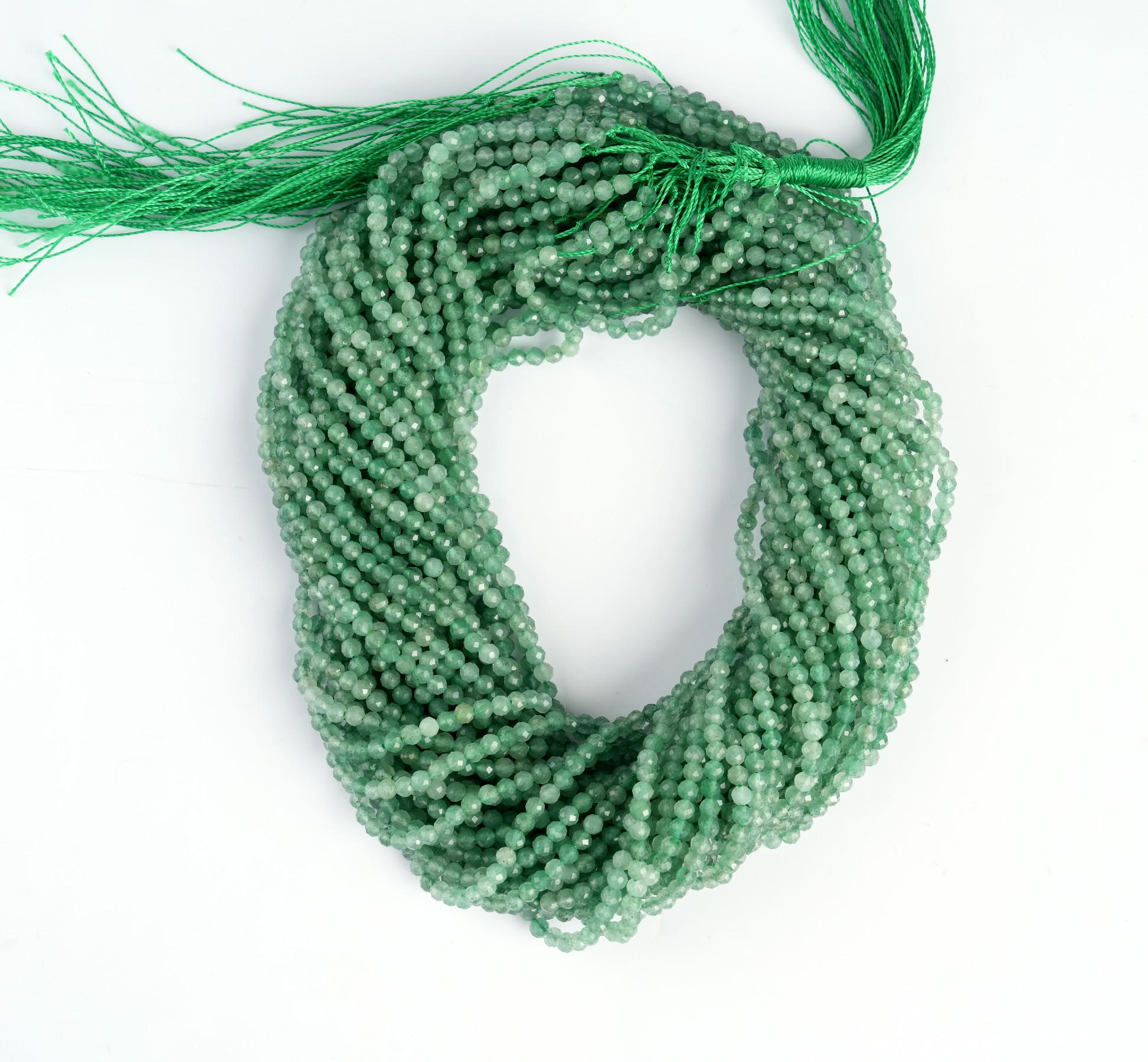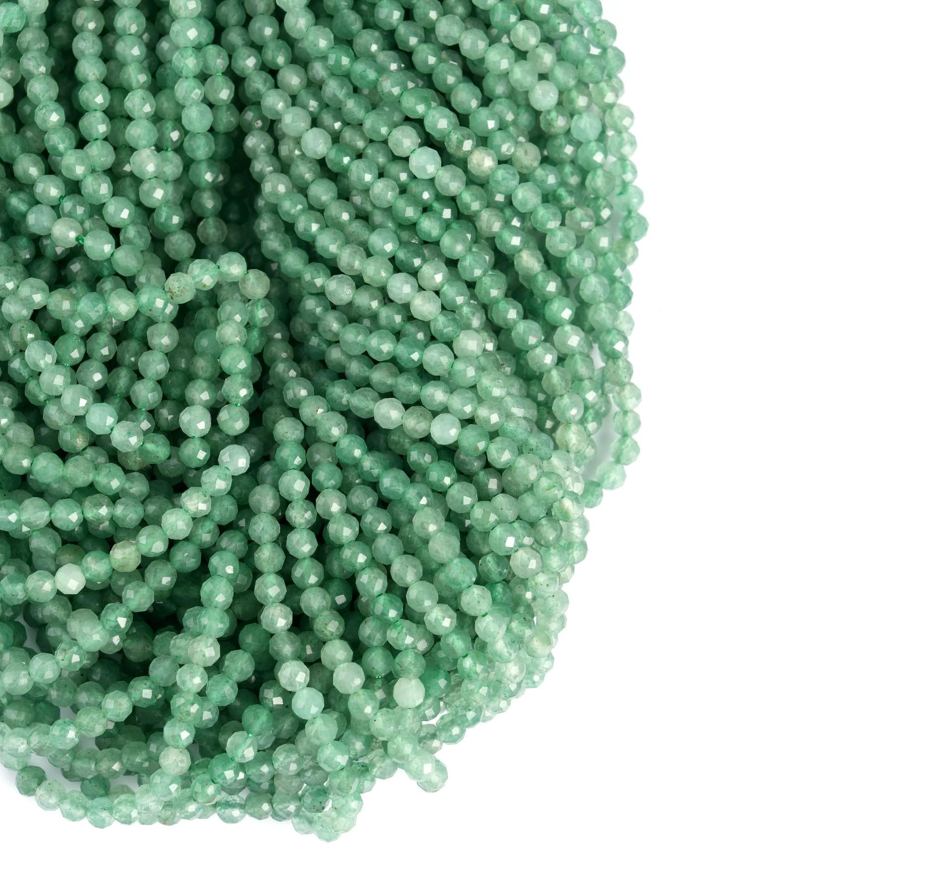 String Length : 15.5 Inches Each- **Premium Quality**: Crafted from authentic natural green aventurine, these micro-faceted beads offer exceptional quality and durability. Each bead is carefully selected to ensure a stunning finish that will elevate your jewelry-making projects.- **Versatile Sizes**: Available in 2mm, 3mm, 4mm, and 6mm sizes, these beads are perfect for a variety of crafting needs. Whether you're creating delicate necklaces or bold statement pieces, you'll find the ideal size to bring your vision to life.- **Aesthetic Appeal**: The enchanting green hues of aventurine evoke feelings of tranquility and prosperity. Incorporate these beautiful beads into your designs to add a touch of elegance and sophistication that resonates with nature's beauty.- **Design Excellence**: Each bead features intricate micro faceting that captures light beautifully, adding depth and sparkle to your creations. The round shape ensures seamless integration into any design style—be it bohemian chic or classic elegance.- **Unique Selling Point**: Beyond their visual allure, aventurine is known as the "Stone of Opportunity," believed to attract luck and abundance. Infuse your handmade jewelry with positive energy while offering wearers not just beauty but also intention in every piece they adorn.Transform your crafting experience with our Natural Green Aventurine Gemstone Round Micro Faceted Beads—where creativity meets inspiration!Number of beads per 15.5" strandWe sell our products by the strand, not by the number of beads. The following chart is for reference only. It's for traditional round-shaped beads strung continuously without spacer beads or knots in between.2mm in diameter- about 195pcs/strand 3mm in diameter- about 130pcs/strand 4mm in diameter- about 96pcs/strand 6mm in diameter- about 68pcs/strandNote: -Bead sizes are approximate and may have a variation of +/- 0.5mm. -Drill hole sizes are approximate and may have a variation of +/- 0.2mm. -All natural gemstones vary in color and pattern. We try our best to make our photos represent the real products in person.