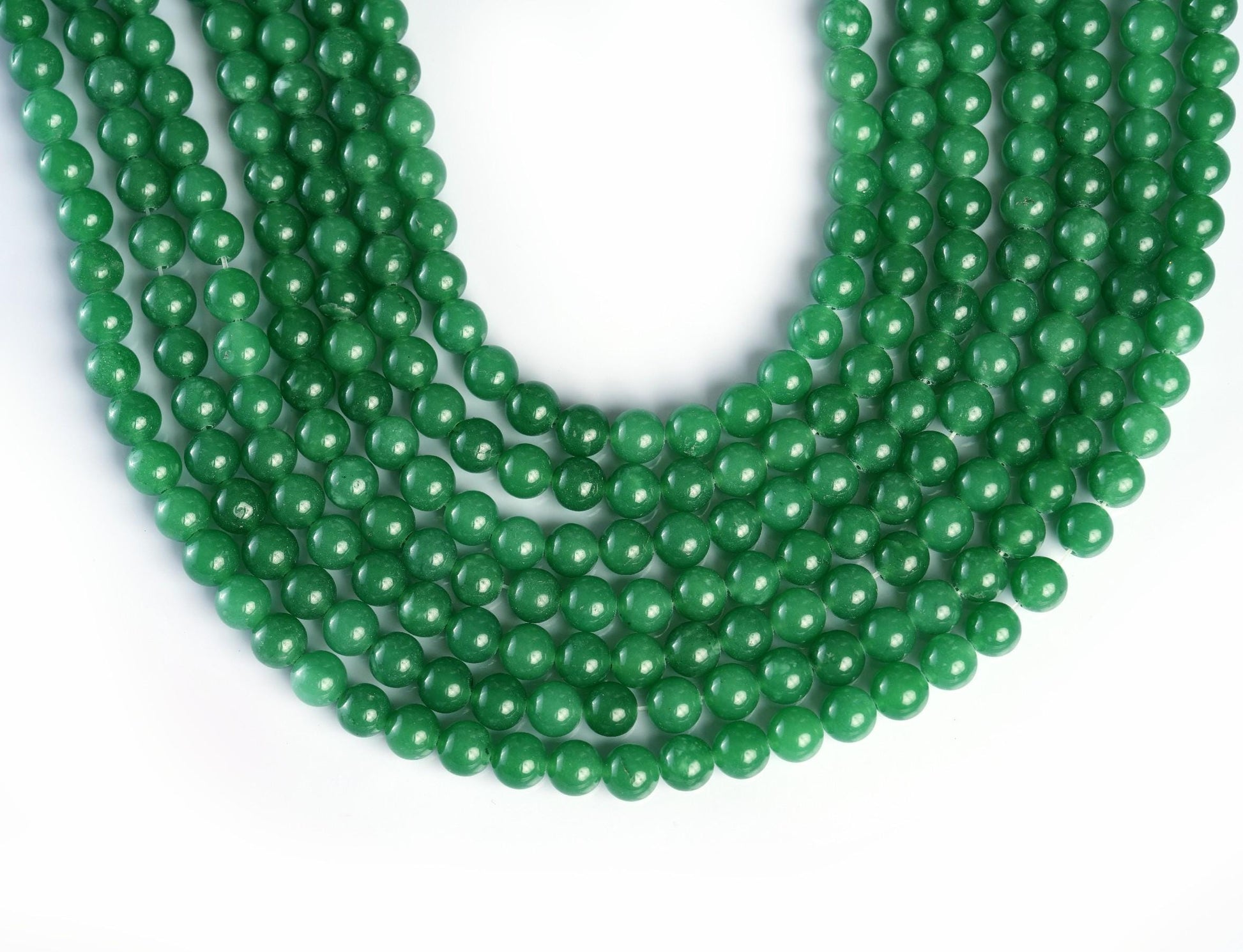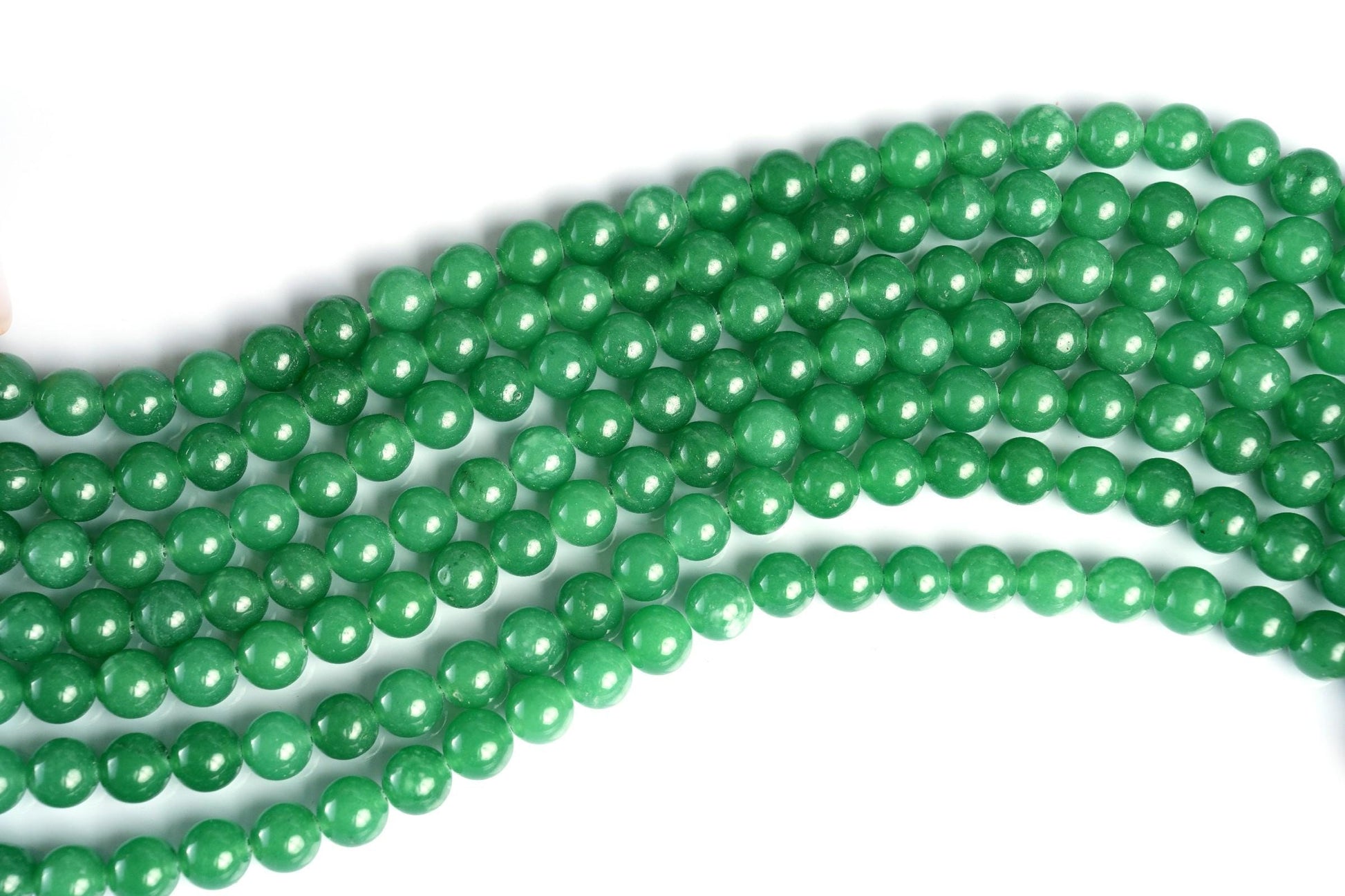 String Length : 15.5 Inches Each- **Premium Quality**: Crafted from top-tier natural green aventurine, these beads offer unparalleled quality and durability, ensuring your jewelry creations stand the test of time.- **Versatile Sizing Options**: Available in 4mm, 6mm, 8mm, and 10mm sizes, these smooth round beads cater to all your crafting needs. Whether you're designing delicate bracelets or bold statement necklaces, you'll find the perfect fit for every project.- **Healing Properties**: Known as the "Stone of Opportunity," green aventurine is believed to attract prosperity and promote emotional balance. Incorporating these beads into your designs not only enhances their beauty but also adds a layer of positive energy that resonates with wearers.- **Design Excellence**: Each bead features a flawless smooth finish that reflects light beautifully, making them an eye-catching addition to any piece. Their rich green hue evokes feelings of tranquility and harmony—perfect for creating serene jewelry pieces.- **Crafting Made Easy**: With a generous string length of 15.5 inches, you have ample material to unleash your creativity without worrying about running out mid-project. Ideal for both beginners and seasoned crafters alike!Elevate your jewelry-making experience with our Natural Green Aventurine Gemstone Round Smooth Beads—where quality meets beauty!Number of beads per 15.5" strandWe sell our products by the strand, not by the number of beads. The following chart is for reference only. It's for traditional round-shaped beads string continuously without spacer beads or knots in between.4mm in diameter- about 96pcs/strand 6mm in diameter- about 68pcs/strand 8mm in diameter- about 48pcs/strand 10mm in diameter- about 38pcs/strand Note: -Bead sizes are approximate and may have a variation of +/- 0.5mm. -Drill hole sizes are approximate and may have a variation of +/- 0.2mm. -All natural gemstones vary in color and pattern. We try our best to make our photos represent the real products in person.