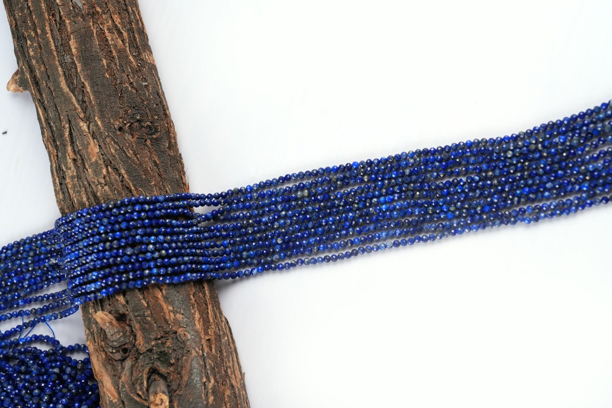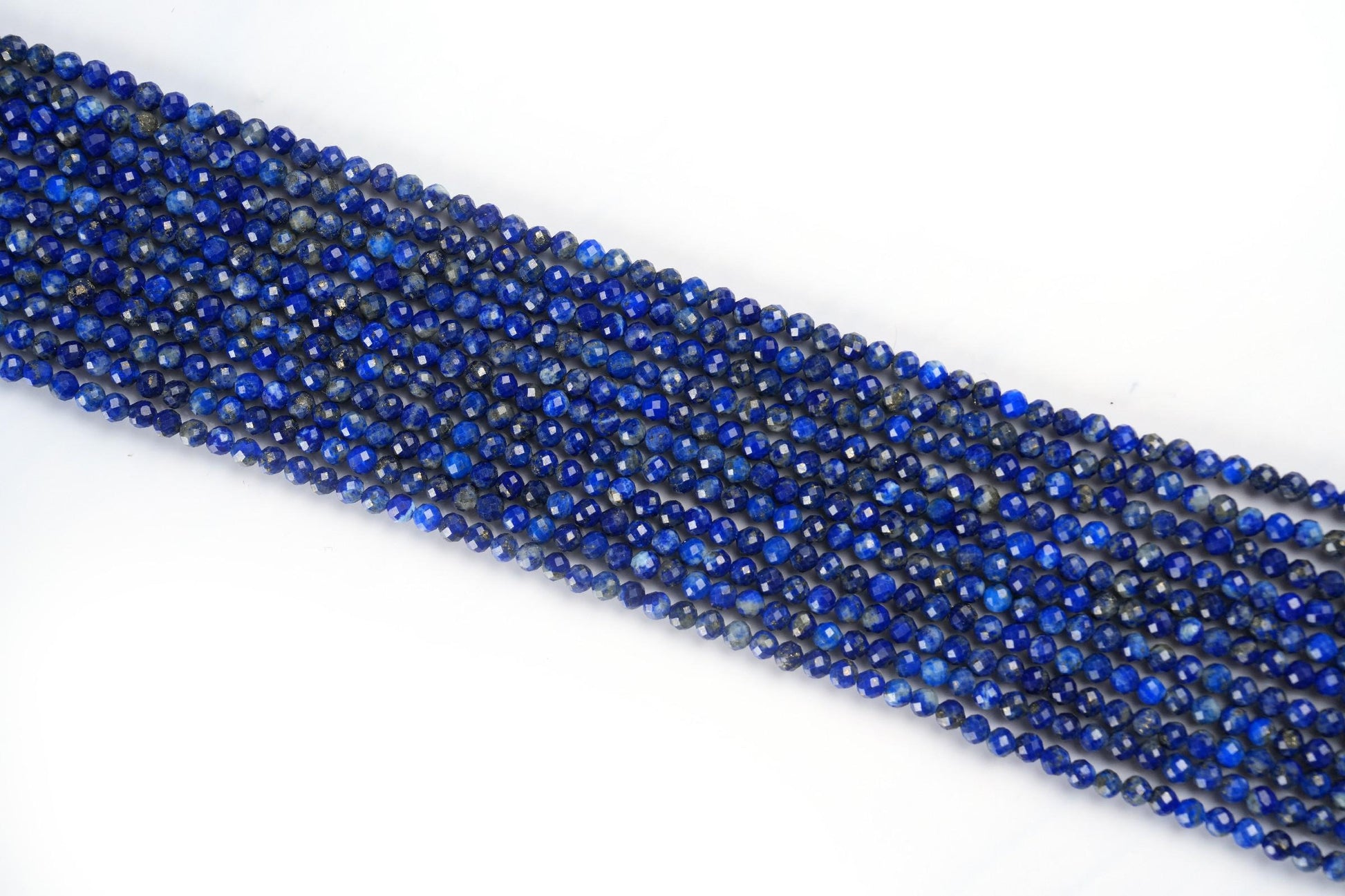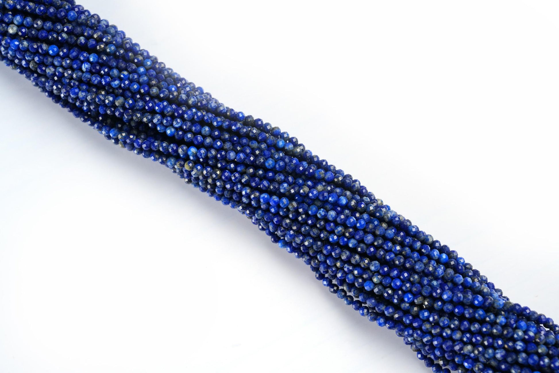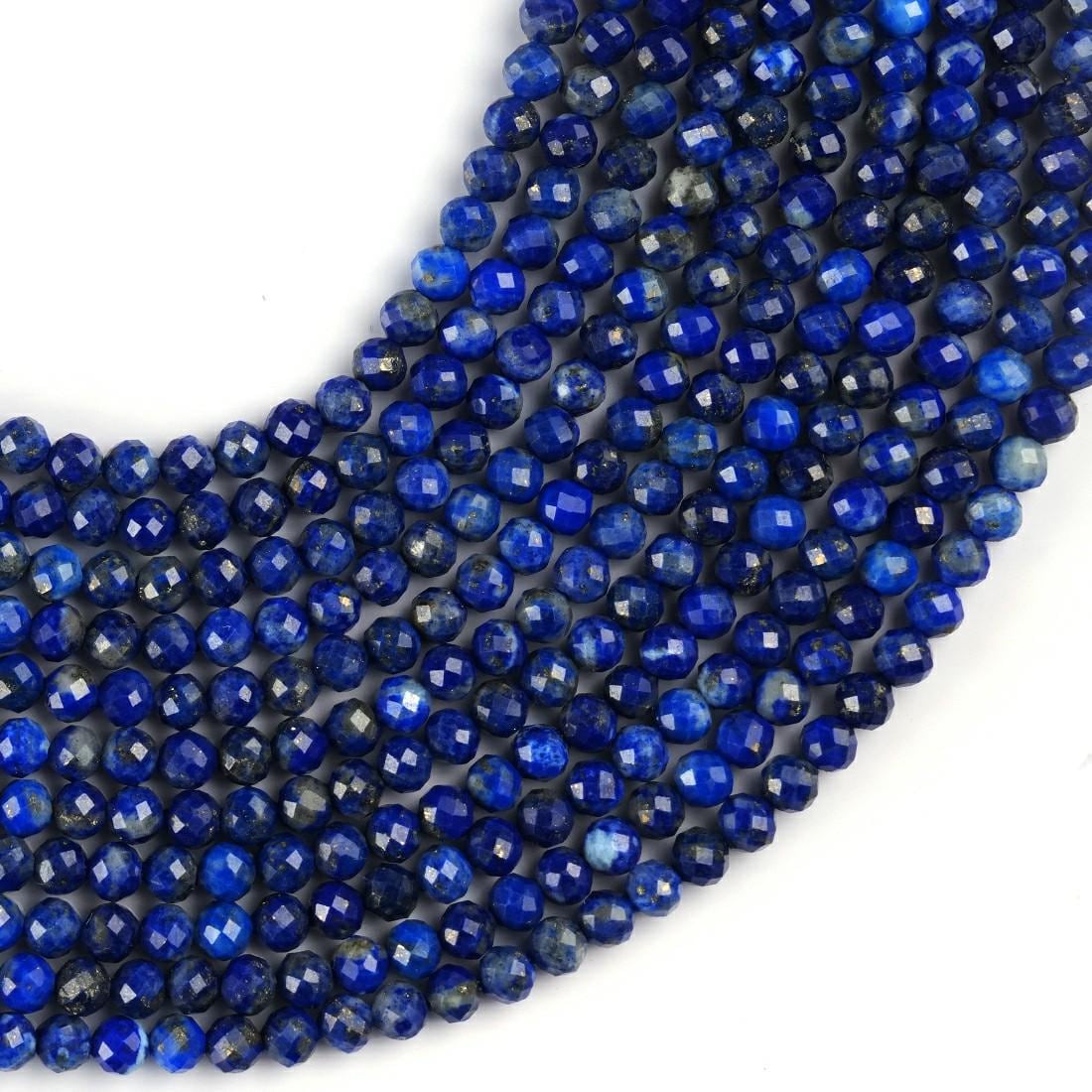 String Length : 15.5 Inches Each- **Premium Quality**: Crafted from authentic natural lapis lazuli, these micro-faceted beads offer exceptional quality and durability, ensuring your jewelry creations stand the test of time.- **Versatile Sizing Options**: Available in 2mm, 3mm, and 4mm sizes, these beads provide endless possibilities for your designs. Whether you’re creating delicate necklaces or bold statement pieces, there’s a perfect size to fit your vision.- **Stunning Aesthetic Appeal**: The rich deep blue hues of lapis lazuli are accented by shimmering gold flecks of pyrite, adding a touch of elegance and sophistication to any piece. Transform ordinary jewelry into extraordinary works of art that will captivate everyone around you.- **Crafting Made Easy**: Each string measures 15.5 inches long and features expertly micro-faceted surfaces that catch the light beautifully. This makes them not only easy to work with but also enhances the visual impact of your finished projects.- **Inspire Connection & Creativity**: Lapis lazuli is known as a stone of wisdom and self-expression. By incorporating these stunning beads into your creations, you’re not just making jewelry; you're crafting meaningful pieces that inspire connection and evoke emotion—perfect for gifts or personal keepsakes.Elevate your crafting experience with our Natural Lapis Lazuli Gemstone Round Micro Faceted Beads! Perfect for both beginners and seasoned artisans alike—let your creativity shine!Number of beads per 15.5" strandWe sell our products by the strand, not by the number of beads. The following chart is for reference only. It's for traditional round-shaped beads strung continuously without spacer beads or knots in between.2mm in diameter- about 195pcs/strand 3mm in diameter- about 130pcs/strand 4mm in diameter- about 96pcs/strand 6mm in diameter- about 68pcs/strand Note: -Bead sizes are approximate and may have a variation of +/- 0.5mm. -Drill hole sizes are approximate and may have a variation of +/- 0.2mm. -All natural gemstones vary in color and pattern. We try our best to make our photos represent the real products in person.