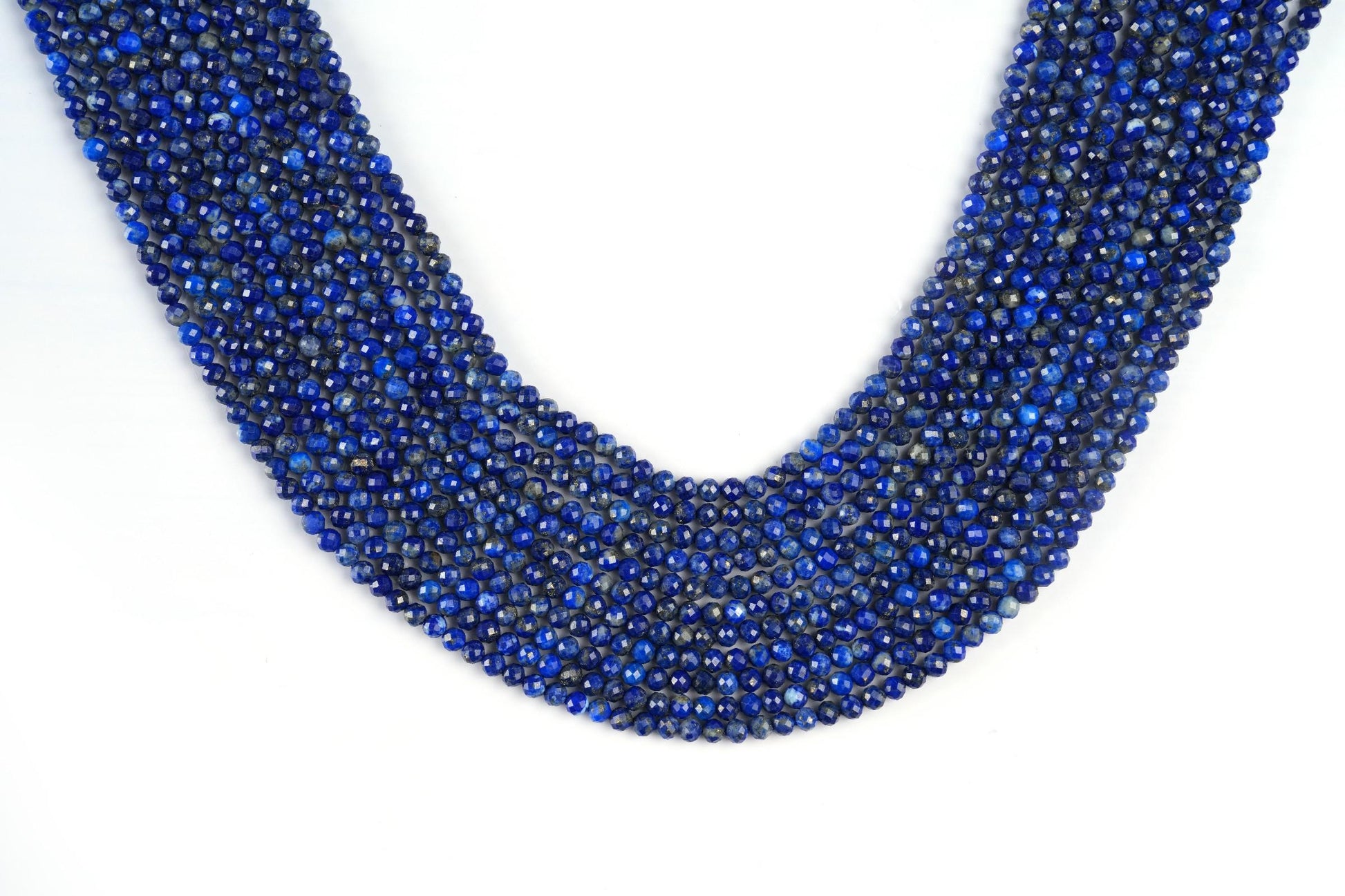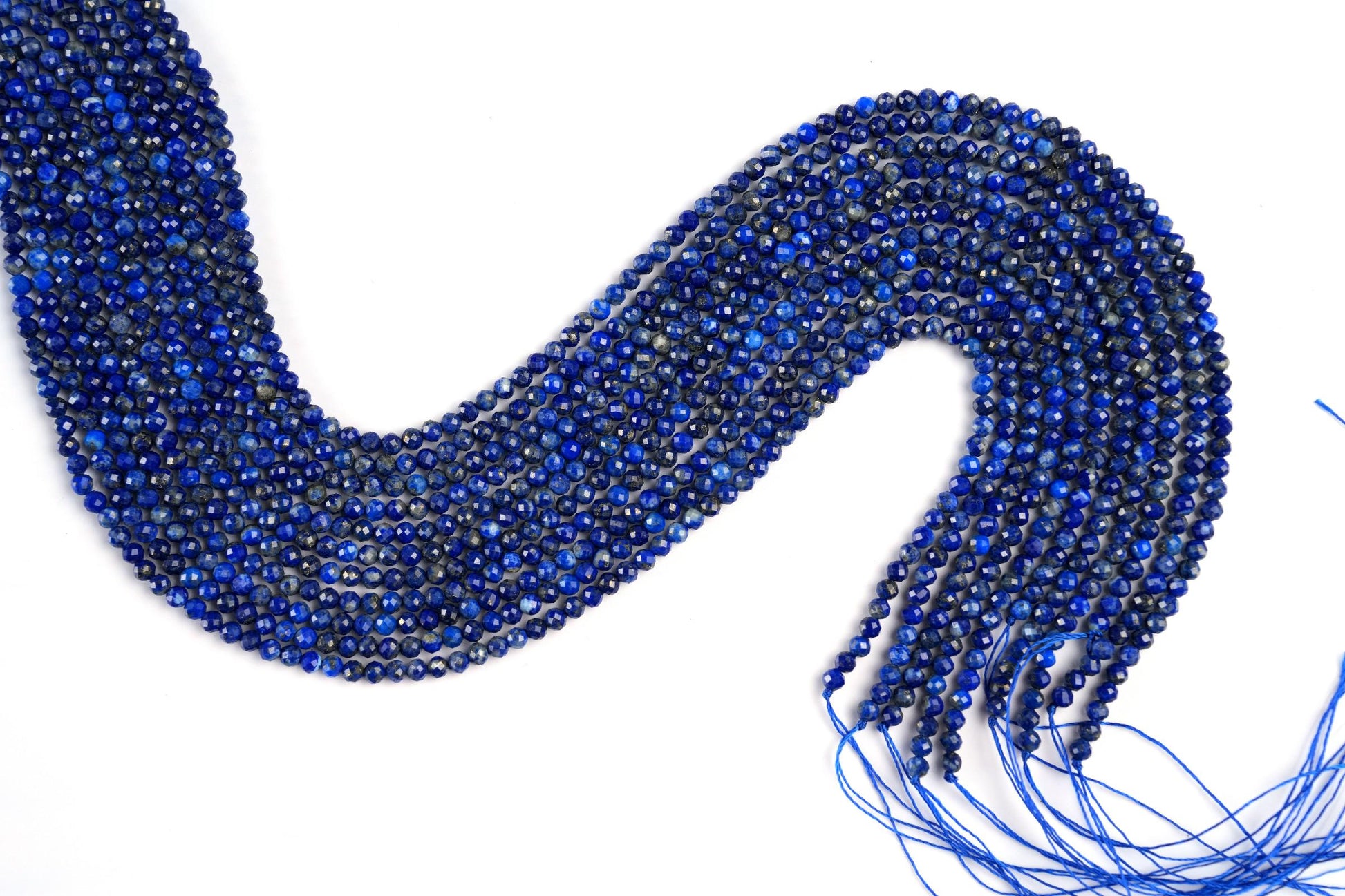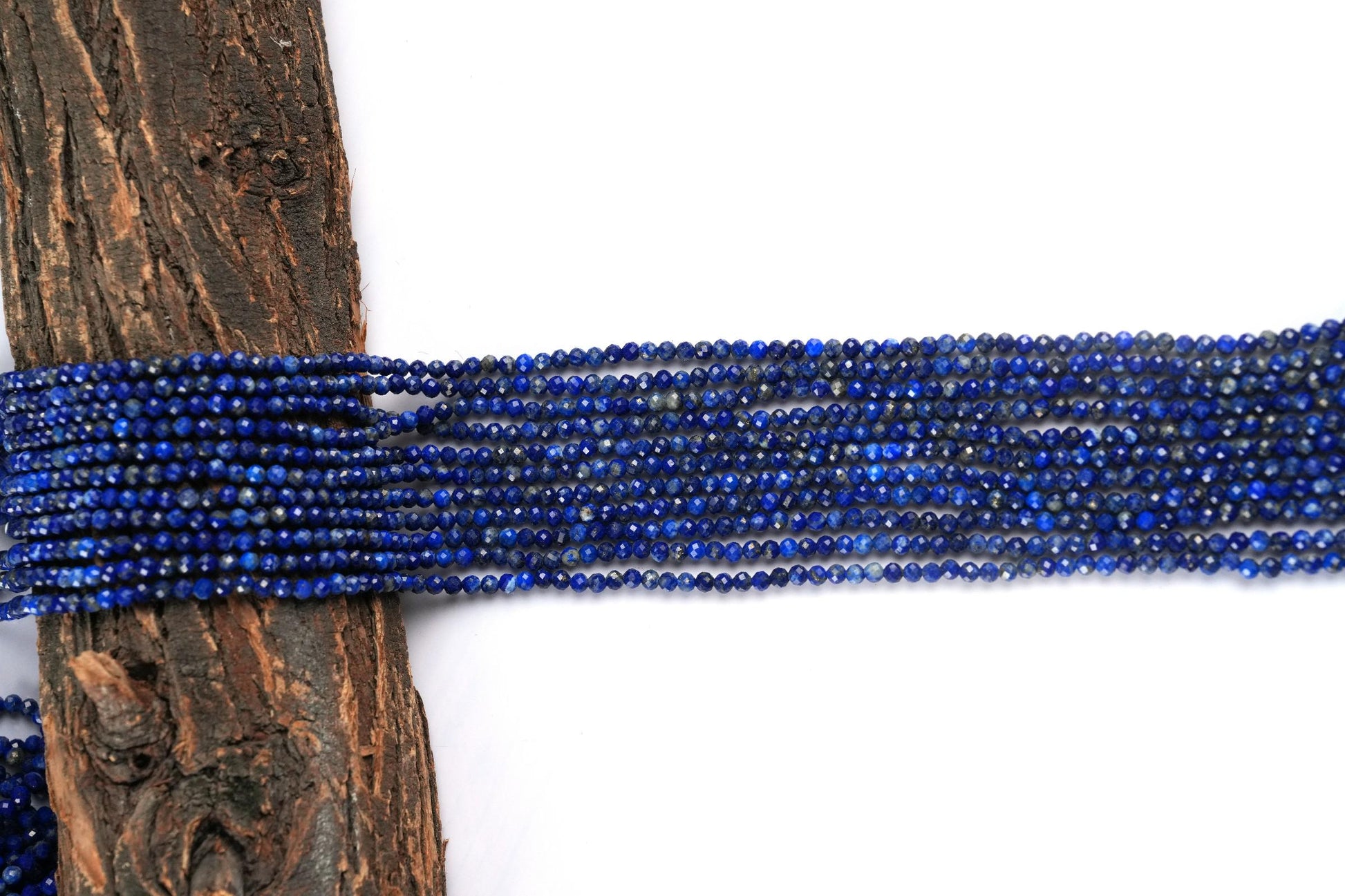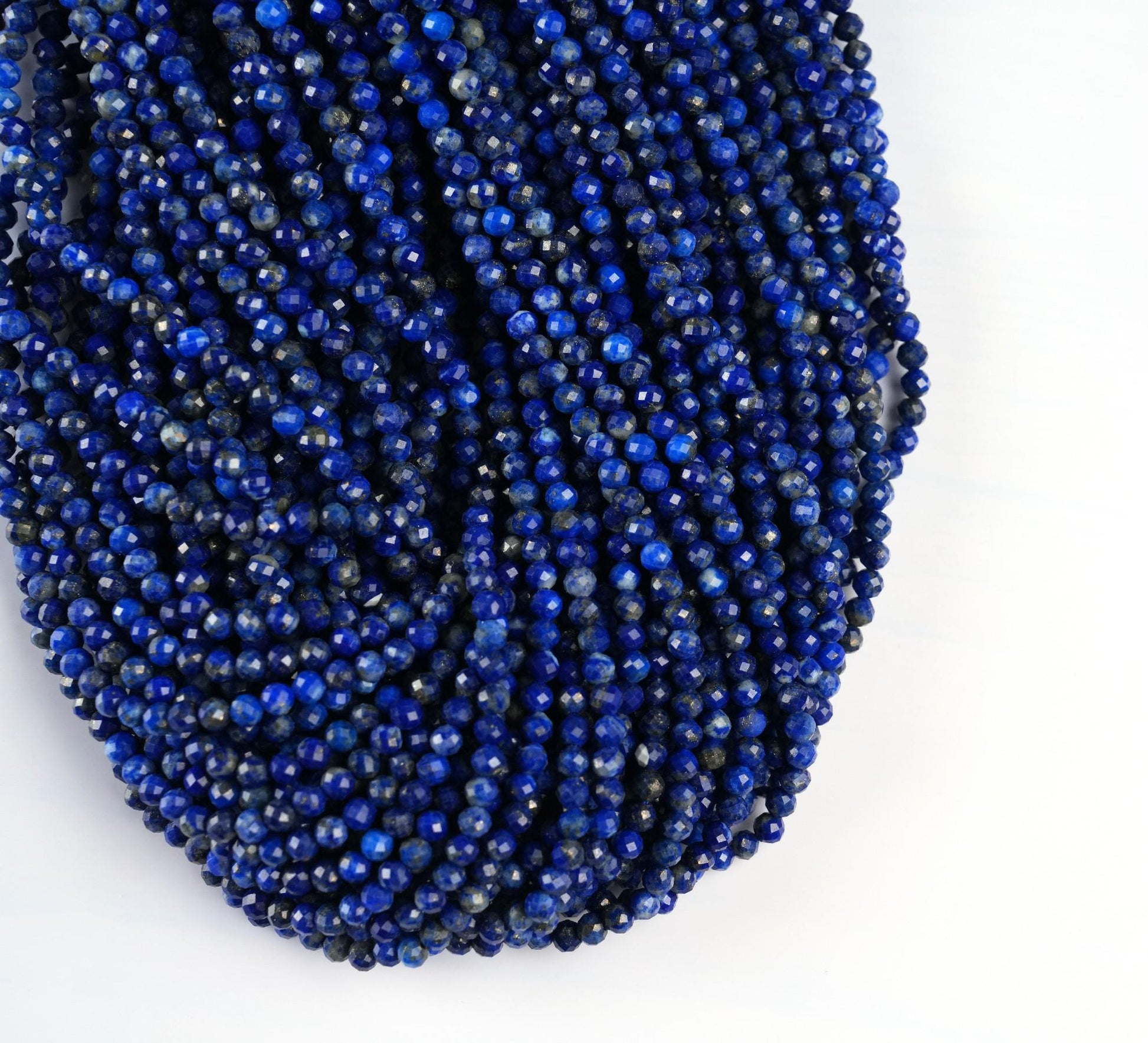 String Length : 15.5 Inches Each- **Premium Quality**: Crafted from authentic natural lapis lazuli, these micro-faceted beads offer exceptional quality and durability, ensuring your jewelry creations stand the test of time.- **Versatile Sizing Options**: Available in 2mm, 3mm, and 4mm sizes, these beads provide endless possibilities for your designs. Whether you’re creating delicate necklaces or bold statement pieces, there’s a perfect size to fit your vision.- **Stunning Aesthetic Appeal**: The rich deep blue hues of lapis lazuli are accented by shimmering gold flecks of pyrite, adding a touch of elegance and sophistication to any piece. Transform ordinary jewelry into extraordinary works of art that will captivate everyone around you.- **Crafting Made Easy**: Each string measures 15.5 inches long and features expertly micro-faceted surfaces that catch the light beautifully. This makes them not only easy to work with but also enhances the visual impact of your finished projects.- **Inspire Connection & Creativity**: Lapis lazuli is known as a stone of wisdom and self-expression. By incorporating these stunning beads into your creations, you’re not just making jewelry; you're crafting meaningful pieces that inspire connection and evoke emotion—perfect for gifts or personal keepsakes.Elevate your crafting experience with our Natural Lapis Lazuli Gemstone Round Micro Faceted Beads! Perfect for both beginners and seasoned artisans alike—let your creativity shine!Number of beads per 15.5" strandWe sell our products by the strand, not by the number of beads. The following chart is for reference only. It's for traditional round-shaped beads strung continuously without spacer beads or knots in between.2mm in diameter- about 195pcs/strand 3mm in diameter- about 130pcs/strand 4mm in diameter- about 96pcs/strand 6mm in diameter- about 68pcs/strand Note: -Bead sizes are approximate and may have a variation of +/- 0.5mm. -Drill hole sizes are approximate and may have a variation of +/- 0.2mm. -All natural gemstones vary in color and pattern. We try our best to make our photos represent the real products in person.