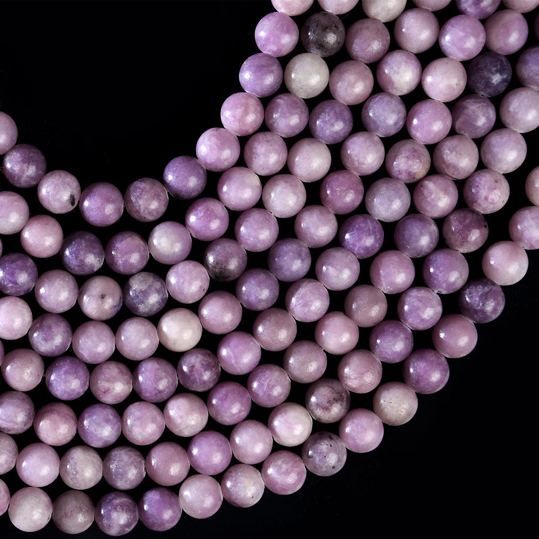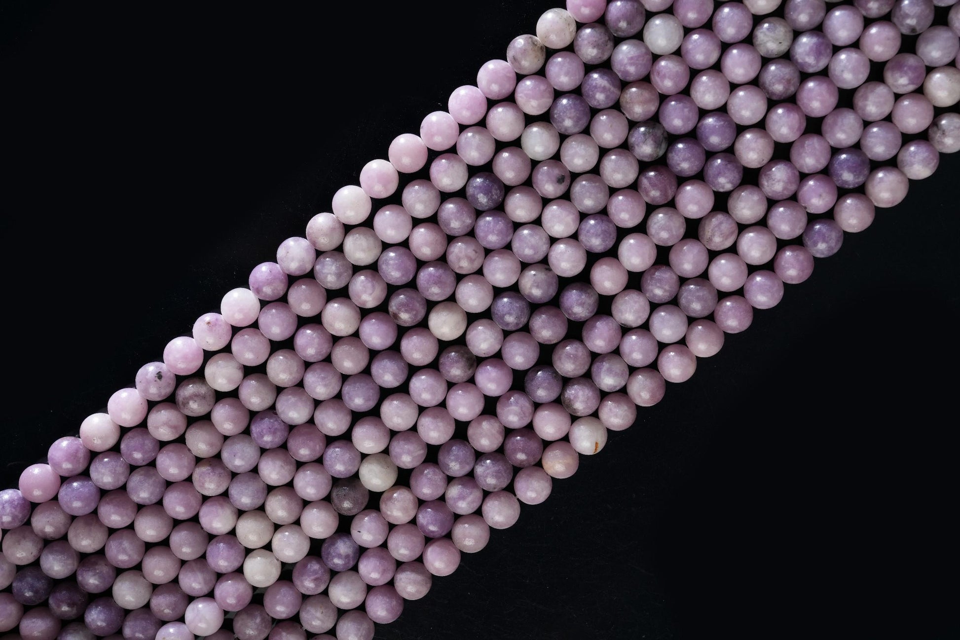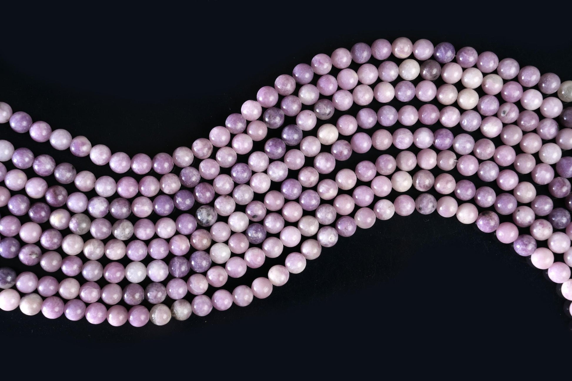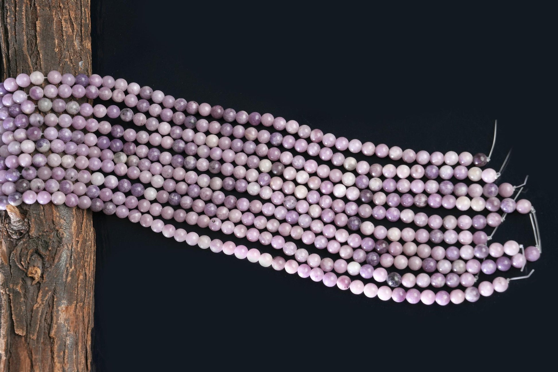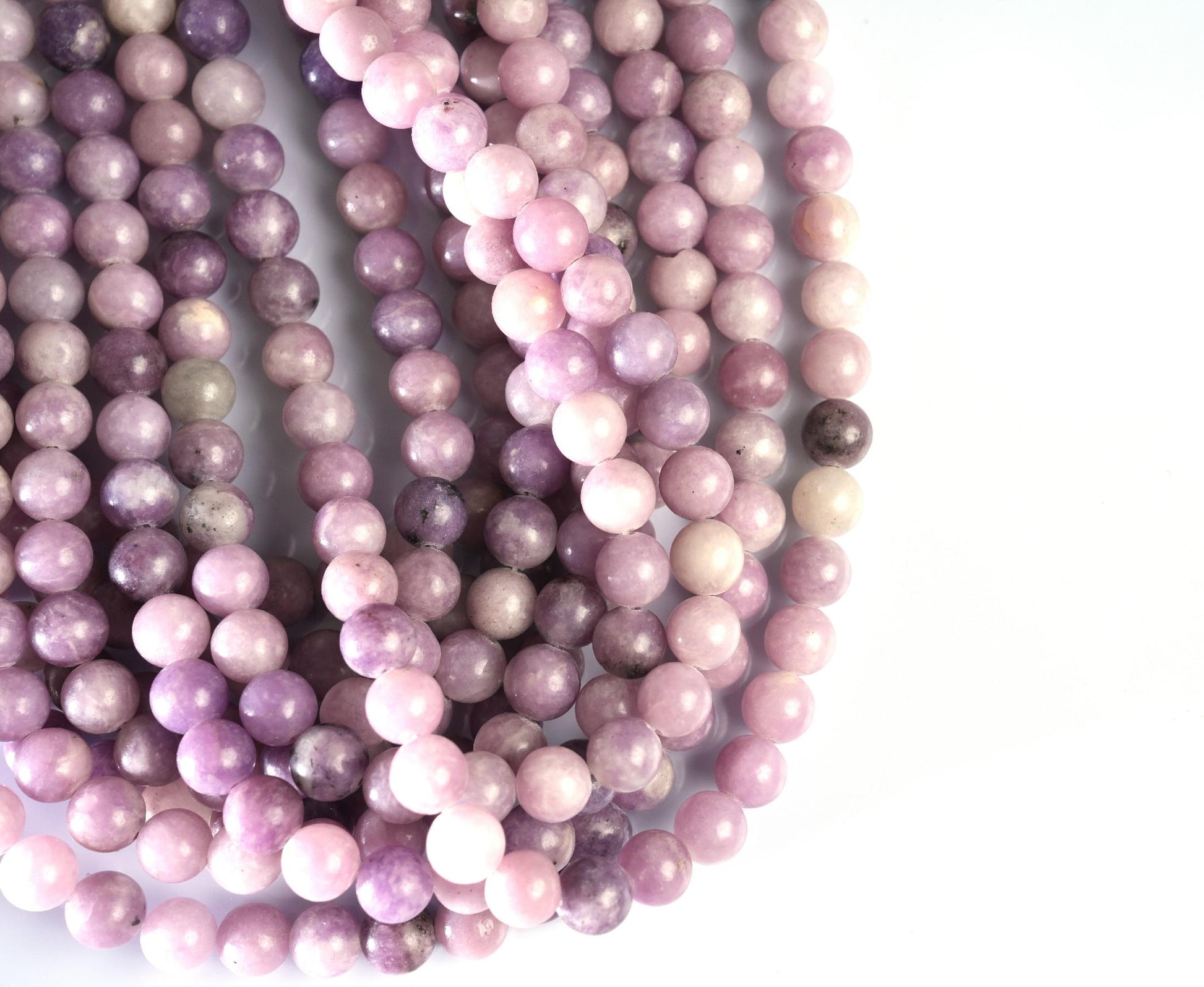 String Length : 15.5 Inches Each- **Premium Quality**: Crafted from authentic natural lepidolite, these round smooth beads boast exceptional quality and durability, ensuring your jewelry creations stand the test of time.- **Versatile Sizes**: Available in 4mm, 6mm, 8mm, and 10mm sizes, these beads offer endless possibilities for your crafting projects. Whether you're designing delicate necklaces or bold statement pieces, you'll find the perfect fit for every design.- **Calming Aesthetic**: The soothing lavender hues of lepidolite are not just visually stunning; they also evoke a sense of tranquility. Incorporate these beads into your jewelry to create pieces that promote relaxation and peace in everyday life.- **Crafting Made Easy**: Each string measures a generous 15.5 inches long, providing ample material for multiple projects. Ideal for both beginners and seasoned crafters alike—let your creativity flow without limits!- **Unique Healing Properties**: Lepidolite is known for its calming energies and emotional balance. Wearing or gifting jewelry made with these beads can enhance well-being and foster positive energy—a thoughtful touch that resonates deeply with loved ones.Elevate your jewelry-making experience with our Natural Lepidolite Gemstone Beads! Perfect for creating unique pieces that not only look beautiful but also carry meaningful benefits.Number of beads per 15.5" strandWe sell our products by the strand, not by the number of beads. The following chart is for reference only. It's for traditional round-shaped beads string continuously without spacer beads or knots in between.4mm in diameter- about 96pcs/strand 6mm in diameter- about 68pcs/strand 8mm in diameter- about 48pcs/strand 10mm in diameter- about 38pcs/strand Note: -Bead sizes are approximate and may have a variation of +/- 0.5mm. -Drill hole sizes are approximate and may have a variation of +/- 0.2mm. -All natural gemstones vary in color and pattern. We try our best to make our photos represent the real products in person.