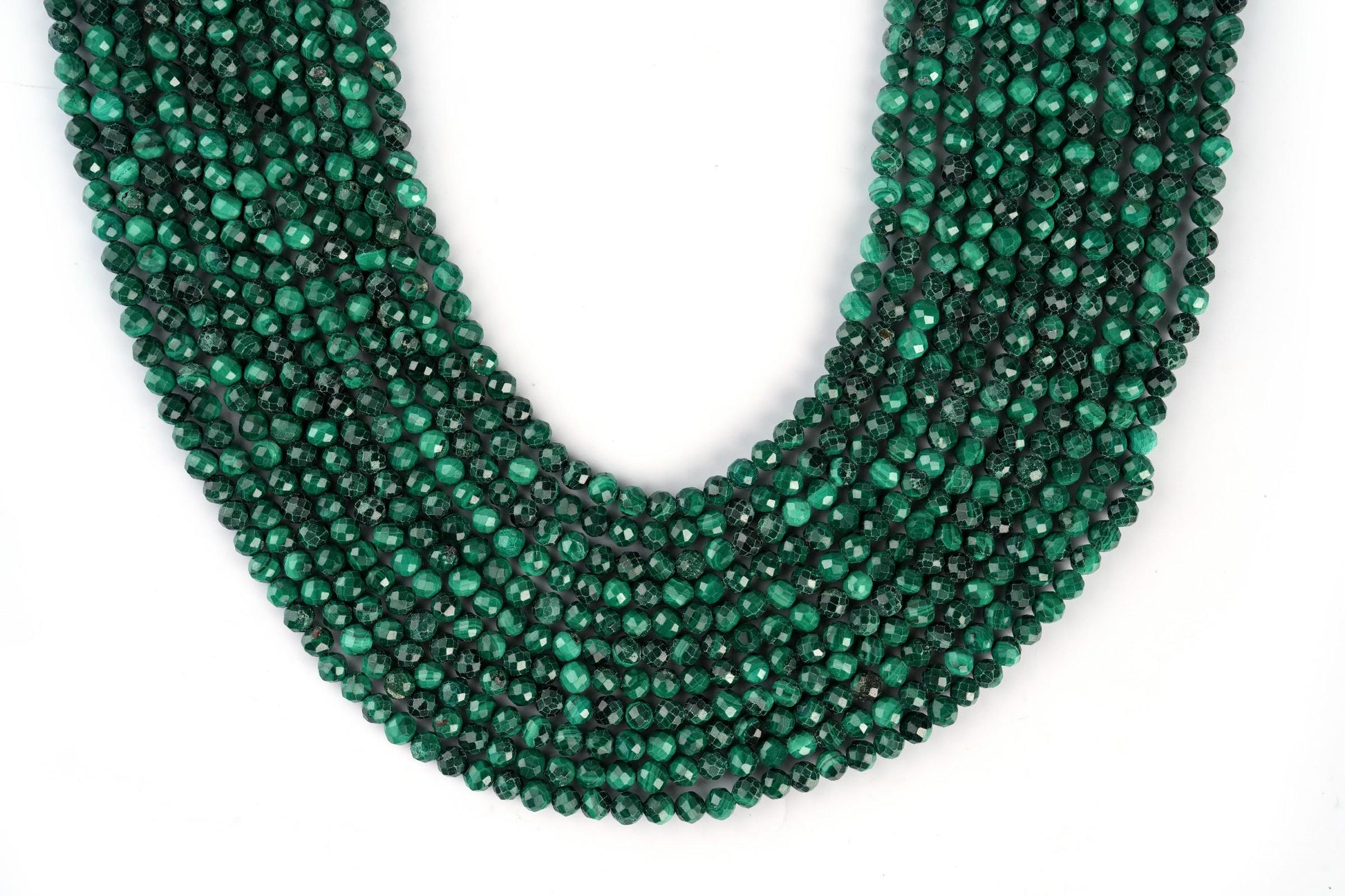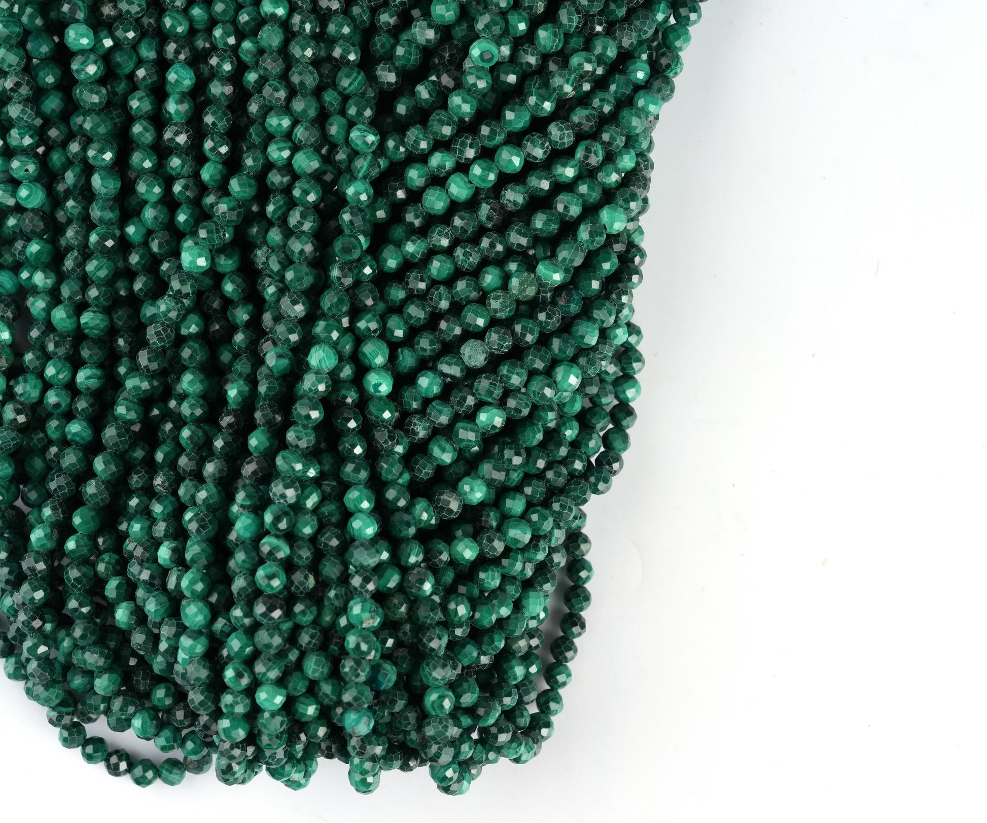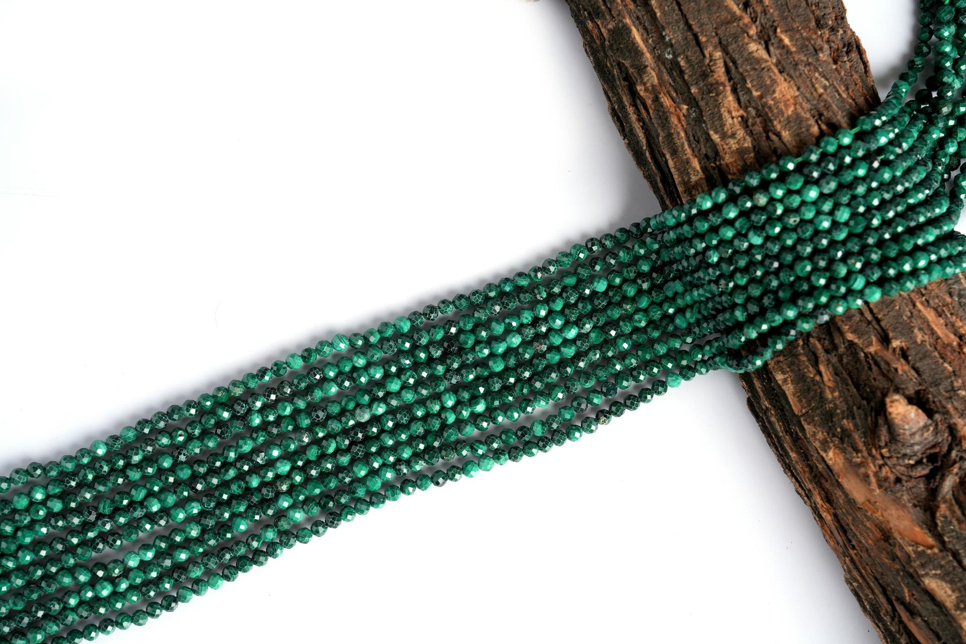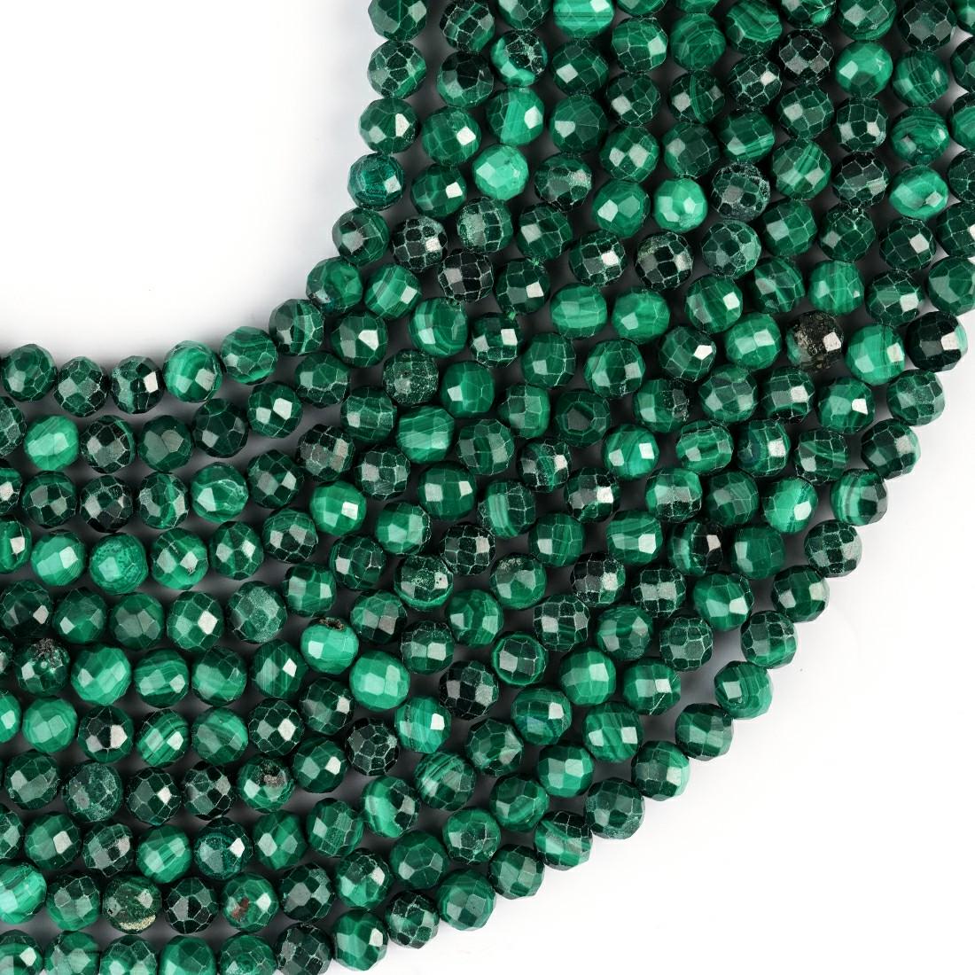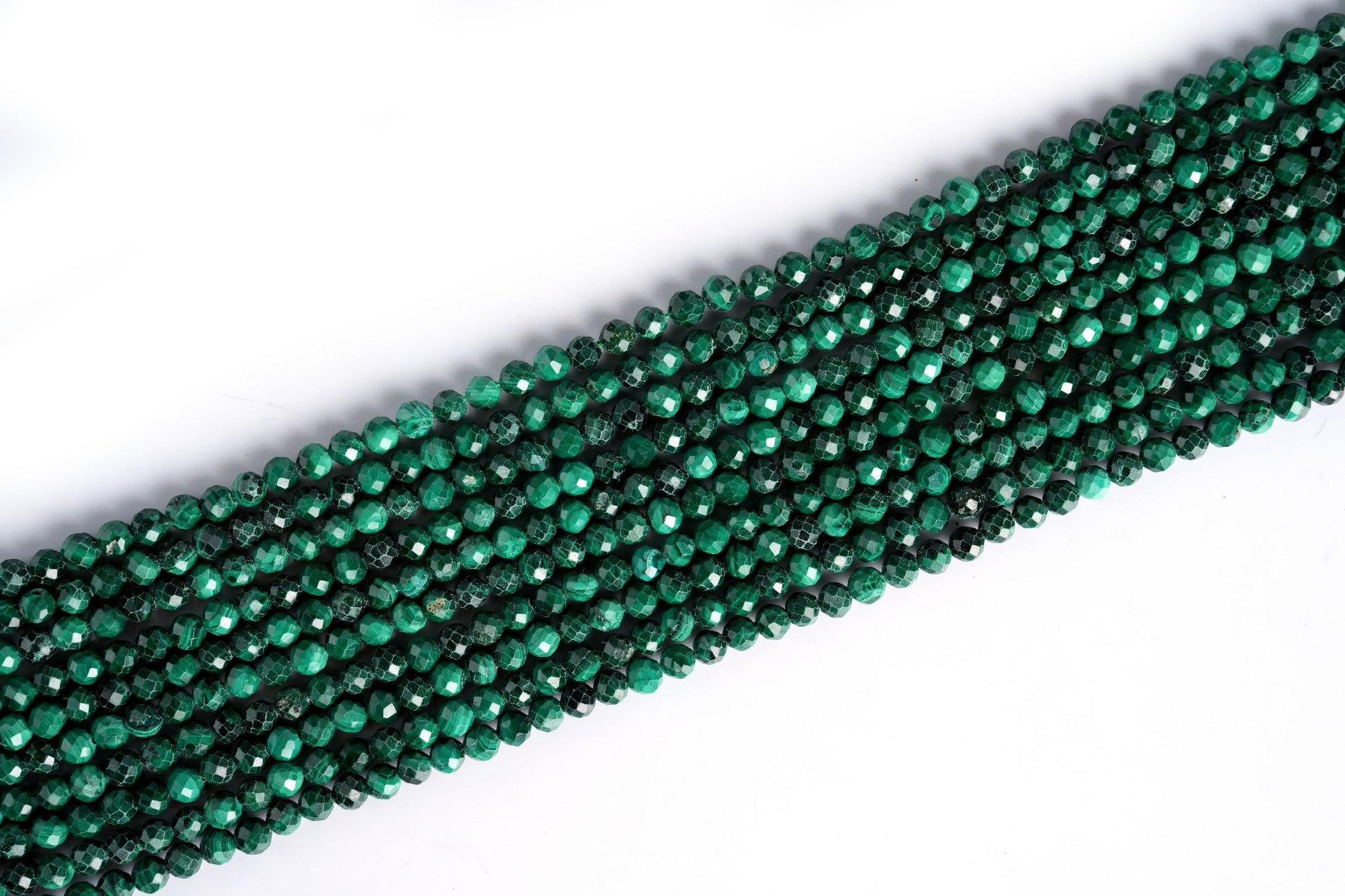 String Length : 15.5 Inches Each- **Premium Quality**: Crafted from genuine natural malachite, these micro faceted beads offer unparalleled quality and durability, ensuring your jewelry creations stand the test of time.- **Versatile Sizing Options**: Available in 2mm, 3mm, 4mm, and 6mm sizes, these beads provide endless possibilities for your designs. Whether you're creating delicate earrings or bold statement pieces, you'll find the perfect fit for every project.- **Stunning Aesthetic Appeal**: Each bead features exquisite micro faceting that captures light beautifully, adding a mesmerizing sparkle to your jewelry. The rich green hues of malachite bring a touch of nature's elegance to any design.- **Crafting Made Easy**: Measuring at 15.5 inches long per string, these beads are ready to use straight out of the package! Perfect for both seasoned artisans and beginners alike—let your creativity flow without hassle.- **Unique Energy Properties**: Malachite is known for its protective qualities and ability to promote emotional healing. Incorporate this powerful gemstone into your jewelry not just as an accessory but as a source of positive energy in everyday life.Elevate your crafting experience with our Natural Malachite Gemstone Round Micro Faceted Beads—where beauty meets functionality! Create pieces that not only look stunning but also resonate with meaning and purpose.Number of beads per 15.5" strandWe sell our products by the strand, not by the number of beads. The following chart is for reference only. It's for traditional round-shaped beads strung continuously without spacer beads or knots in between.2mm in diameter- about 195pcs/strand 3mm in diameter- about 130pcs/strand 4mm in diameter- about 96pcs/strand 6mm in diameter- about 68pcs/strand Note: -Bead sizes are approximate and may have a variation of +/- 0.5mm. -Drill hole sizes are approximate and may have a variation of +/- 0.2mm. -All natural gemstones vary in color and pattern. We try our best to make our photos represent the real products in person.