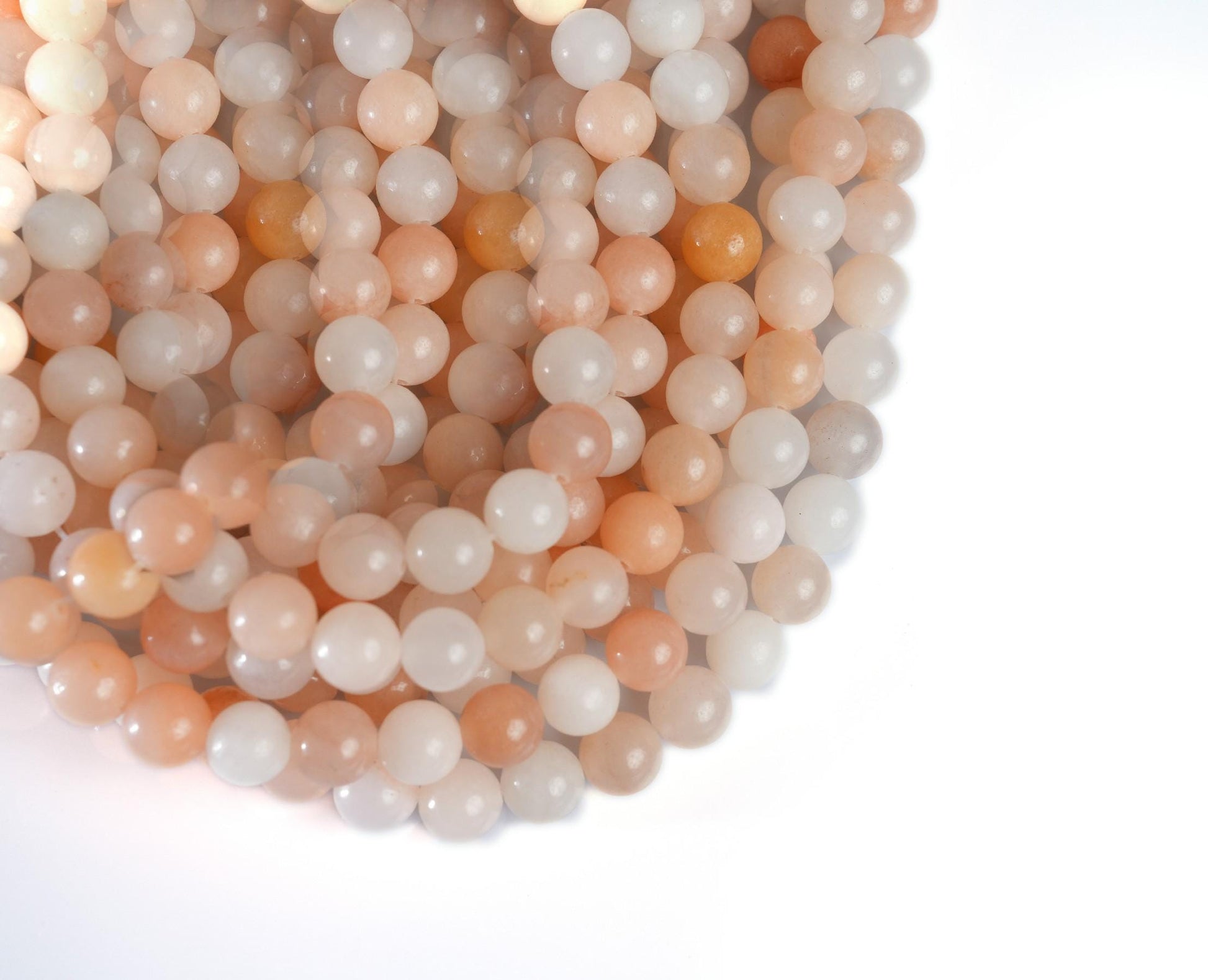 String Length : 15.5 Inches Each- **Premium Quality**: Crafted from top-tier natural peach aventurine, these smooth round beads offer unparalleled quality and durability. Each bead is carefully selected to ensure a stunning finish that will last through all your creative projects.- **Versatile Sizing Options**: Available in 4mm, 6mm, 8mm, and 10mm sizes, these beads cater to all your jewelry-making needs. Whether you're designing delicate bracelets or bold statement pieces, you can mix and match sizes for a truly unique creation.- **Healing Properties**: Known for its calming energy and soothing qualities, peach aventurine is believed to promote emotional balance and harmony. Incorporate these beautiful beads into your designs not just for aesthetics but also as a source of positive energy in your life.- **Design Excellence**: The soft peach hue of these beads adds a warm touch to any project. Their smooth surface reflects light beautifully, making them perfect for both casual wear and elegant occasions. Elevate your creations with this exquisite gemstone that speaks of sophistication.- **Crafting Made Easy**: With a generous string length of 15.5 inches, you'll have plenty of material to work with! Ideal for both beginners and seasoned crafters alike, these beads make it easy to bring your artistic vision to life without the hassle.Transform your crafting experience with our Natural Peach Aventurine Gemstone Round Smooth Beads—where beauty meets functionality!Number of beads per 15.5" strandWe sell our products by the strand, not by the number of beads. The following chart is for reference only. It's for traditional round-shaped beads string continuously without spacer beads or knots in between.4mm in diameter- about 96pcs/strand 6mm in diameter- about 68pcs/strand 8mm in diameter- about 48pcs/strand 10mm in diameter- about 38pcs/strand Note: -Bead sizes are approximate and may have a variation of +/- 0.5mm. -Drill hole sizes are approximate and may have a variation of +/- 0.2mm. -All natural gemstones vary in color and pattern. We try our best to make our photos represent the real products in person.