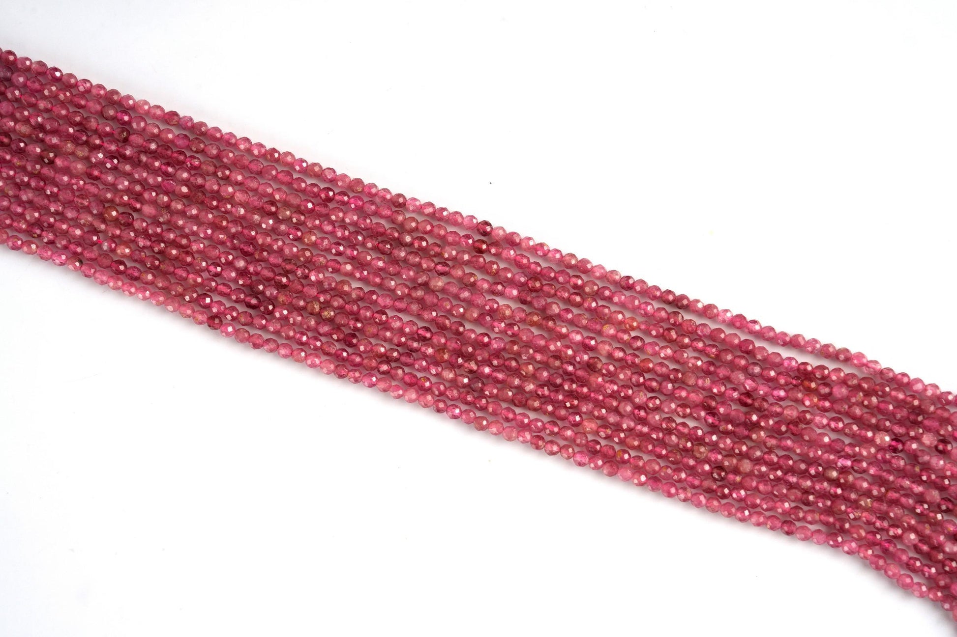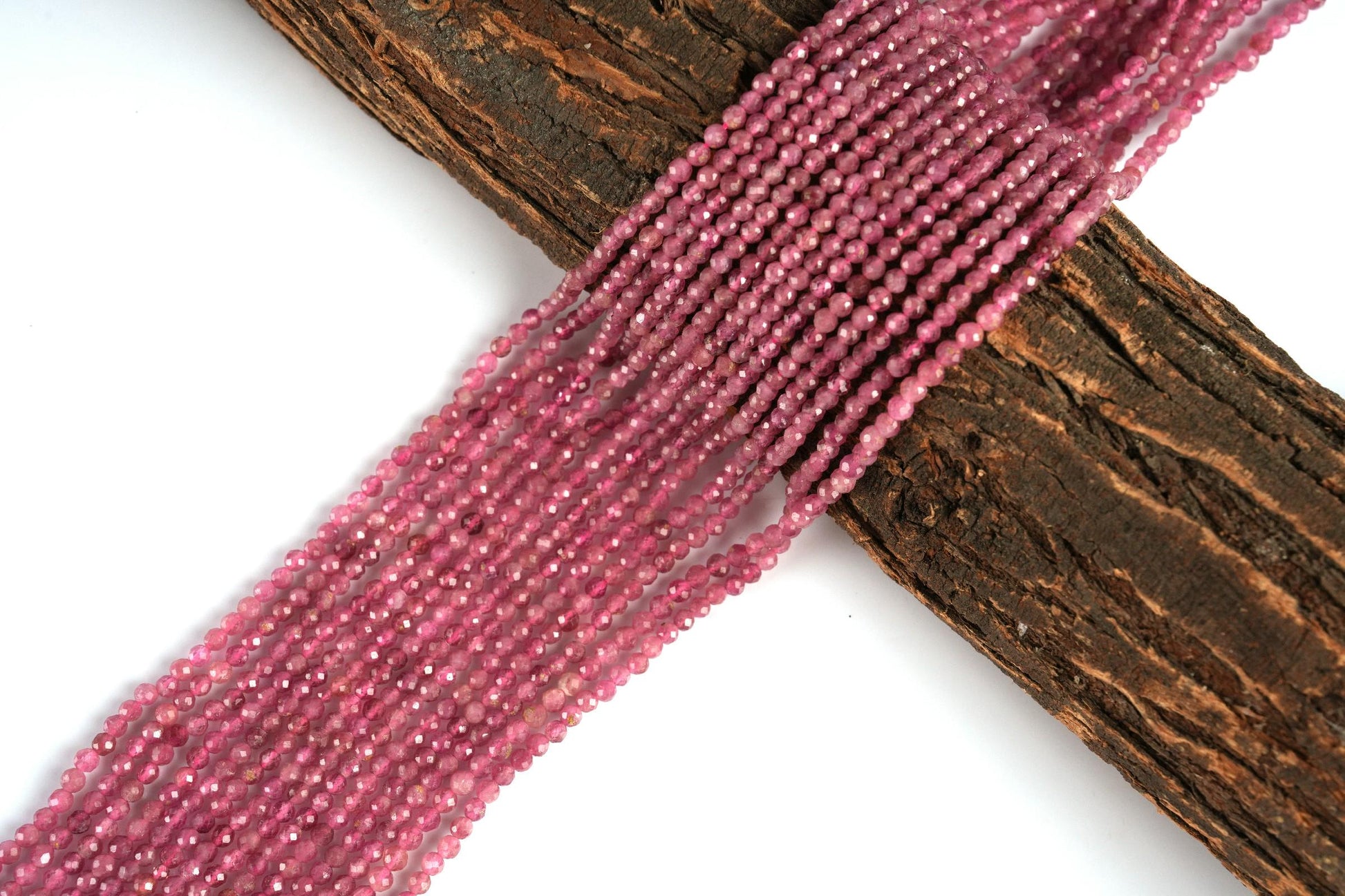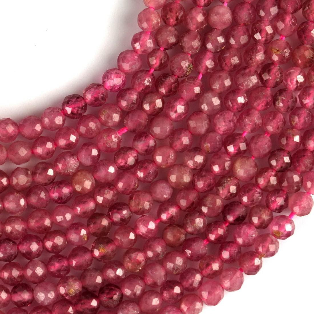 Natural Pink Tourmaline Gemstone Round Micro Faceted Beads String 15.5 Inches Long 2/3/4/6 MM for Jewelry Making and Crafting - AS & JG