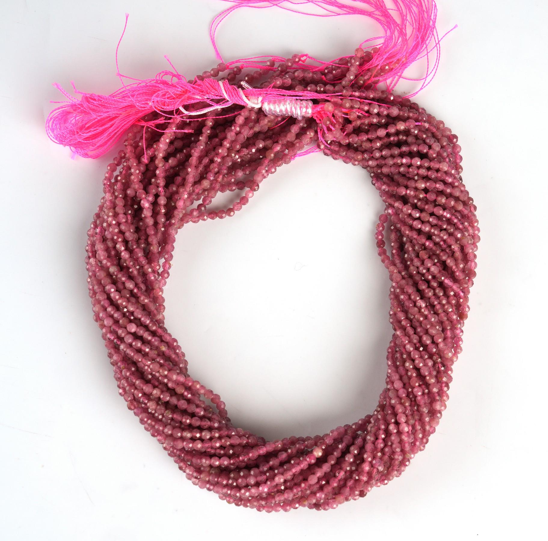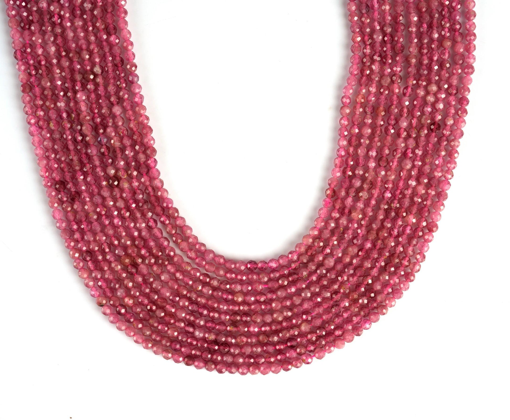 String Length : 15.5 Inches Each- **Premium Quality**: Crafted from authentic natural pink tourmaline, these micro-faceted beads promise exceptional quality and durability. Each bead is a testament to nature's artistry, ensuring your jewelry stands the test of time.- **Versatile Sizes**: Available in 2mm, 3mm, 4mm, and 6mm sizes, these beads offer endless possibilities for creativity. Whether you're designing delicate earrings or bold statement pieces, you'll find the perfect fit for every project.- **Stunning Aesthetic**: The soft pink hues of tourmaline radiate warmth and charm. These beads add a touch of elegance to any creation, making them ideal for both casual wear and special occasions. Elevate your designs with their unique sparkle!- **Crafting Made Easy**: With a convenient string length of 15.5 inches, you can start crafting right away! Perfect for DIY enthusiasts and professional jewelers alike—these beads simplify the process while enhancing your artistic expression.- **Emotional Connection**: Pink tourmaline is known for its healing properties and ability to promote love and compassion. Wearing jewelry made from these beautiful beads not only enhances your style but also fosters emotional well-being—a perfect gift for yourself or loved ones.Transform your jewelry-making experience with our Natural Pink Tourmaline Gemstone Beads—where beauty meets functionality!Number of beads per 15.5" strandWe sell our products by the strand, not by the number of beads. The following chart is for reference only. It's for traditional round-shaped beads strung continuously without spacer beads or knots in between.2mm in diameter- about 195pcs/strand 3mm in diameter- about 130pcs/strand 4mm in diameter- about 96pcs/strand 6mm in diameter- about 68pcs/strand Note: -Bead sizes are approximate and may have a variation of +/- 0.5mm. -Drill hole sizes are approximate and may have a variation of +/- 0.2mm. -All natural gemstones vary in color and pattern. We try our best to make our photos represent the real products in person.