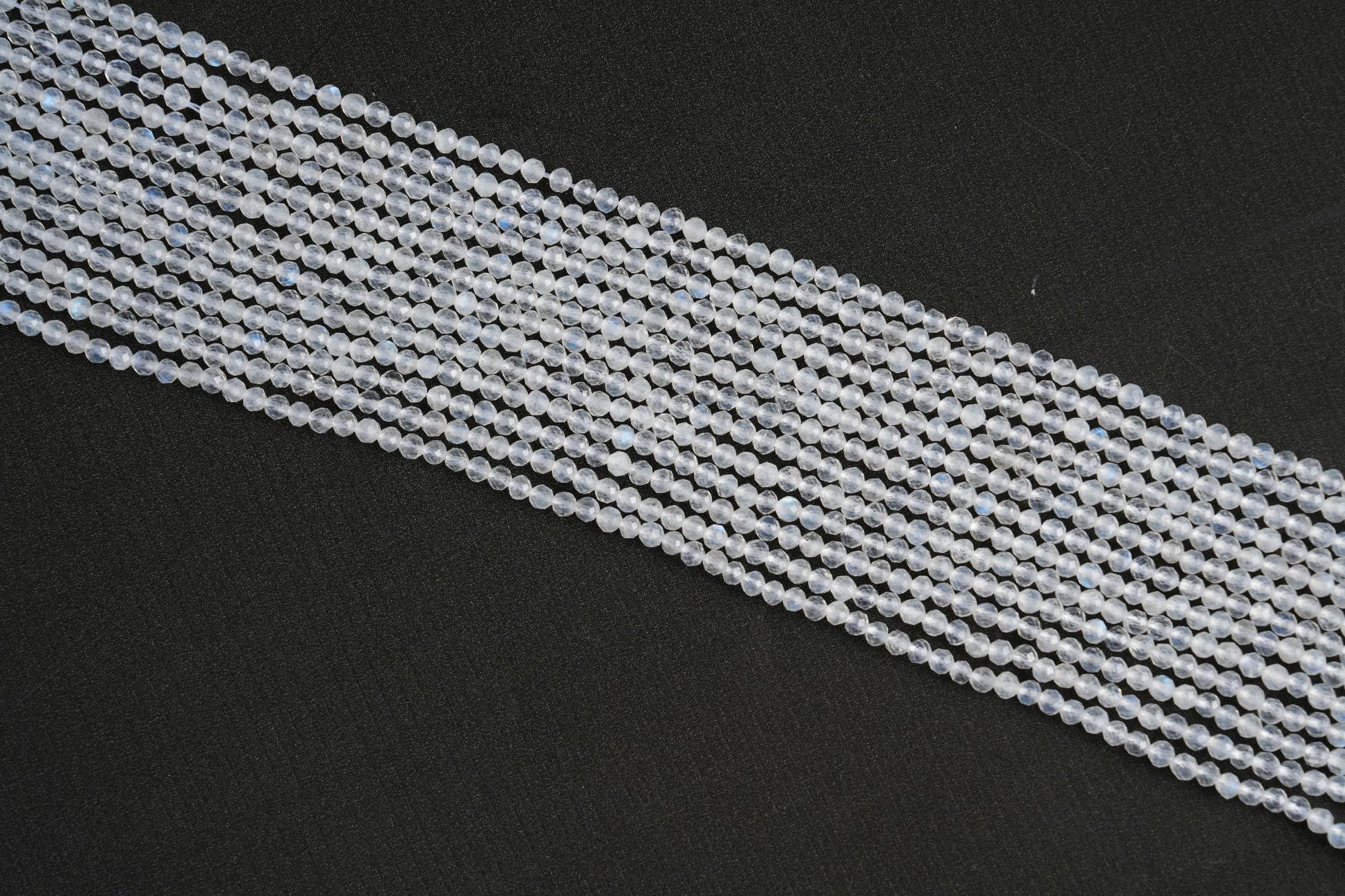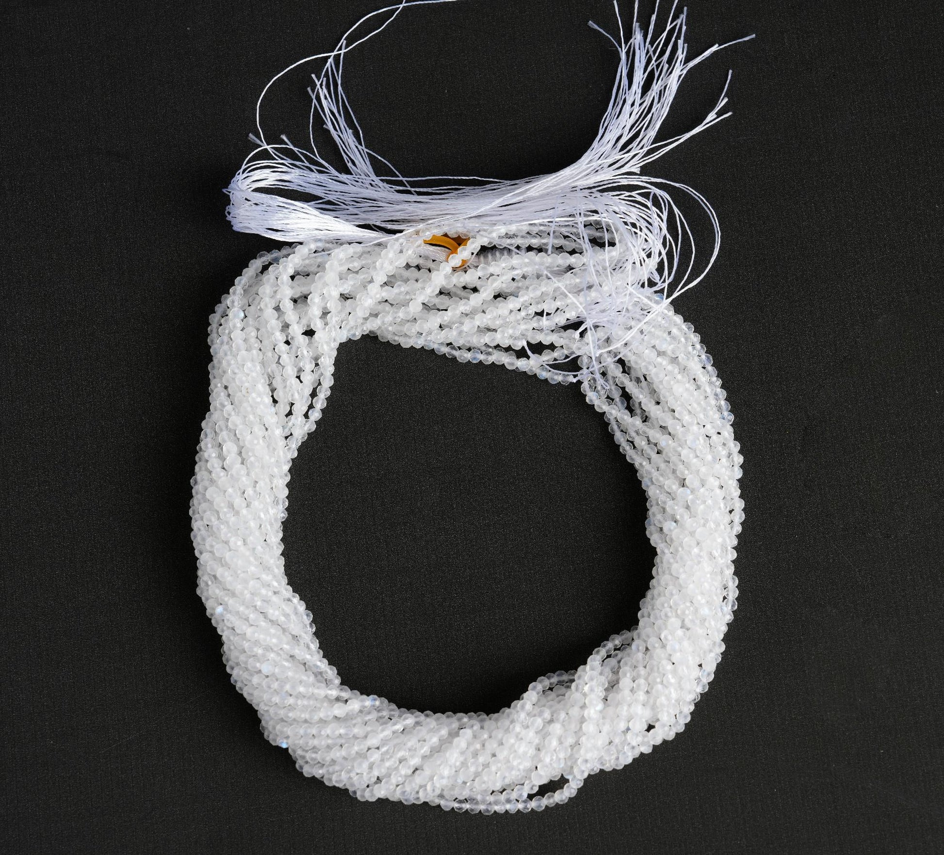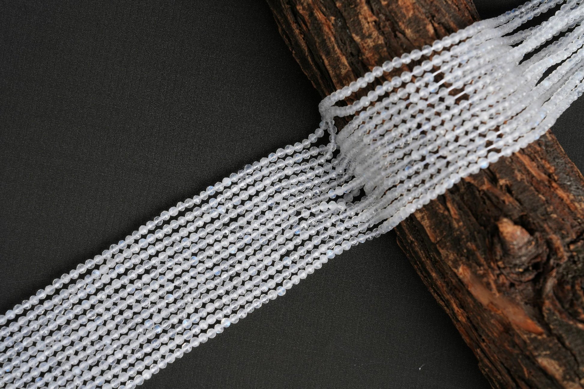 String Length : 15.5 Inches Each- **Premium Quality**: Crafted from exquisite natural rainbow moonstone, these micro-faceted beads are designed to elevate your jewelry-making experience with their exceptional quality and durability.- **Versatile Sizes**: Available in 2mm, 3mm, 4mm, and 6mm sizes, this string of beads offers endless possibilities for creativity. Whether you're crafting delicate necklaces or bold statement pieces, you'll find the perfect fit for your vision.- **Enchanting Aesthetic**: Each bead is meticulously faceted to reflect light beautifully, creating a mesmerizing play of colors that shifts with movement. This unique optical phenomenon adds a touch of magic to every piece you create.- **Perfect Length**: At 15.5 inches long, this strand provides ample material for multiple projects. Create stunning bracelets or layered necklaces without worrying about running out of beads mid-design!- **Embrace Your Creativity**: Ideal for both beginners and seasoned artisans alike! These versatile beads inspire imagination and allow you to express your personal style through custom jewelry that tells your story.Transform your crafting endeavors with the enchanting beauty of our Natural Rainbow Moonstone Beads—where each piece becomes a cherished treasure!Number of beads per 15.5" strandWe sell our products by the strand, not by the number of beads. The following chart is for reference only. It's for traditional round-shaped beads strung continuously without spacer beads or knots in between.2mm in diameter- about 195pcs/strand 3mm in diameter- about 130pcs/strand 4mm in diameter- about 96pcs/strand 6mm in diameter- about 68pcs/strand Note: -Bead sizes are approximate and may have a variation of +/- 0.5mm. -Drill hole sizes are approximate and may have a variation of +/- 0.2mm. -All natural gemstones vary in color and pattern. We try our best to make our photos represent the real products in person.