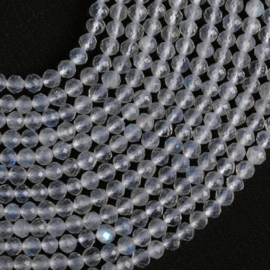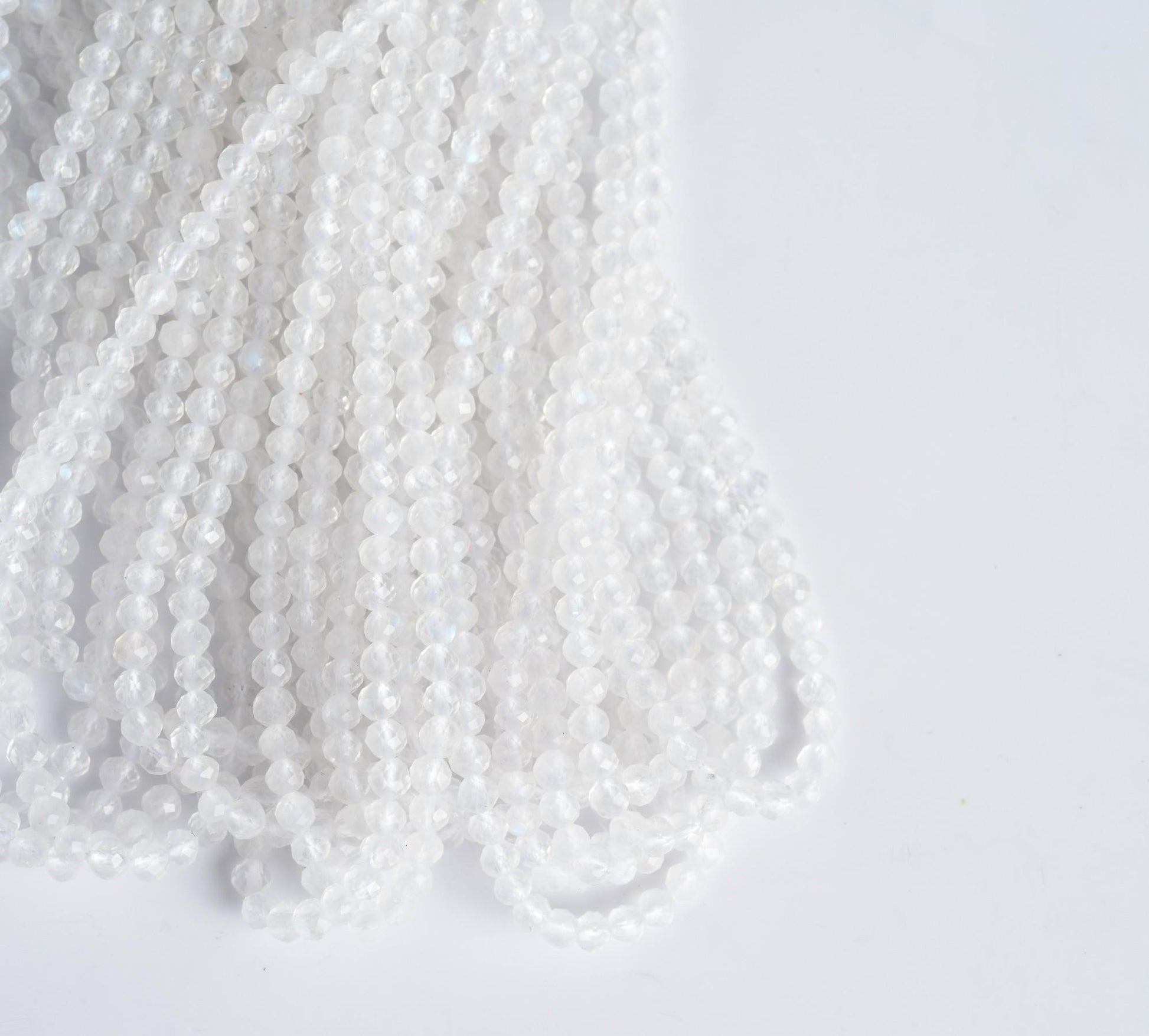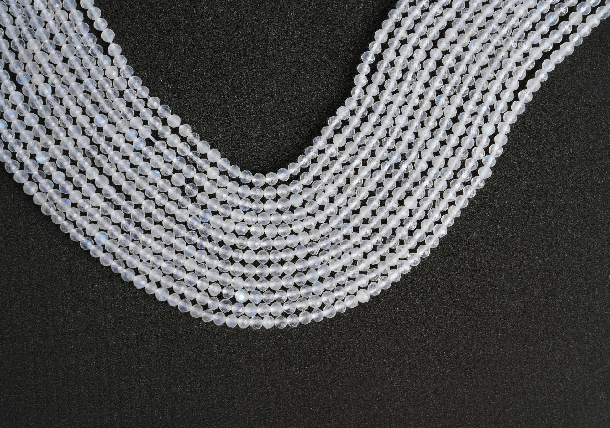 String Length : 15.5 Inches Each- **Premium Quality**: Crafted from exquisite natural rainbow moonstone, these micro-faceted beads are designed to elevate your jewelry-making experience with their exceptional quality and durability.- **Versatile Sizes**: Available in 2mm, 3mm, 4mm, and 6mm sizes, this string of beads offers endless possibilities for creativity. Whether you're crafting delicate necklaces or bold statement pieces, you'll find the perfect fit for your vision.- **Enchanting Aesthetic**: Each bead is meticulously faceted to reflect light beautifully, creating a mesmerizing play of colors that shifts with movement. This unique optical phenomenon adds a touch of magic to every piece you create.- **Perfect Length**: At 15.5 inches long, this strand provides ample material for multiple projects. Create stunning bracelets or layered necklaces without worrying about running out of beads mid-design!- **Embrace Your Creativity**: Ideal for both beginners and seasoned artisans alike! These versatile beads inspire imagination and allow you to express your personal style through custom jewelry that tells your story.Transform your crafting endeavors with the enchanting beauty of our Natural Rainbow Moonstone Beads—where each piece becomes a cherished treasure!Number of beads per 15.5" strandWe sell our products by the strand, not by the number of beads. The following chart is for reference only. It's for traditional round-shaped beads strung continuously without spacer beads or knots in between.2mm in diameter- about 195pcs/strand 3mm in diameter- about 130pcs/strand 4mm in diameter- about 96pcs/strand 6mm in diameter- about 68pcs/strand Note: -Bead sizes are approximate and may have a variation of +/- 0.5mm. -Drill hole sizes are approximate and may have a variation of +/- 0.2mm. -All natural gemstones vary in color and pattern. We try our best to make our photos represent the real products in person.