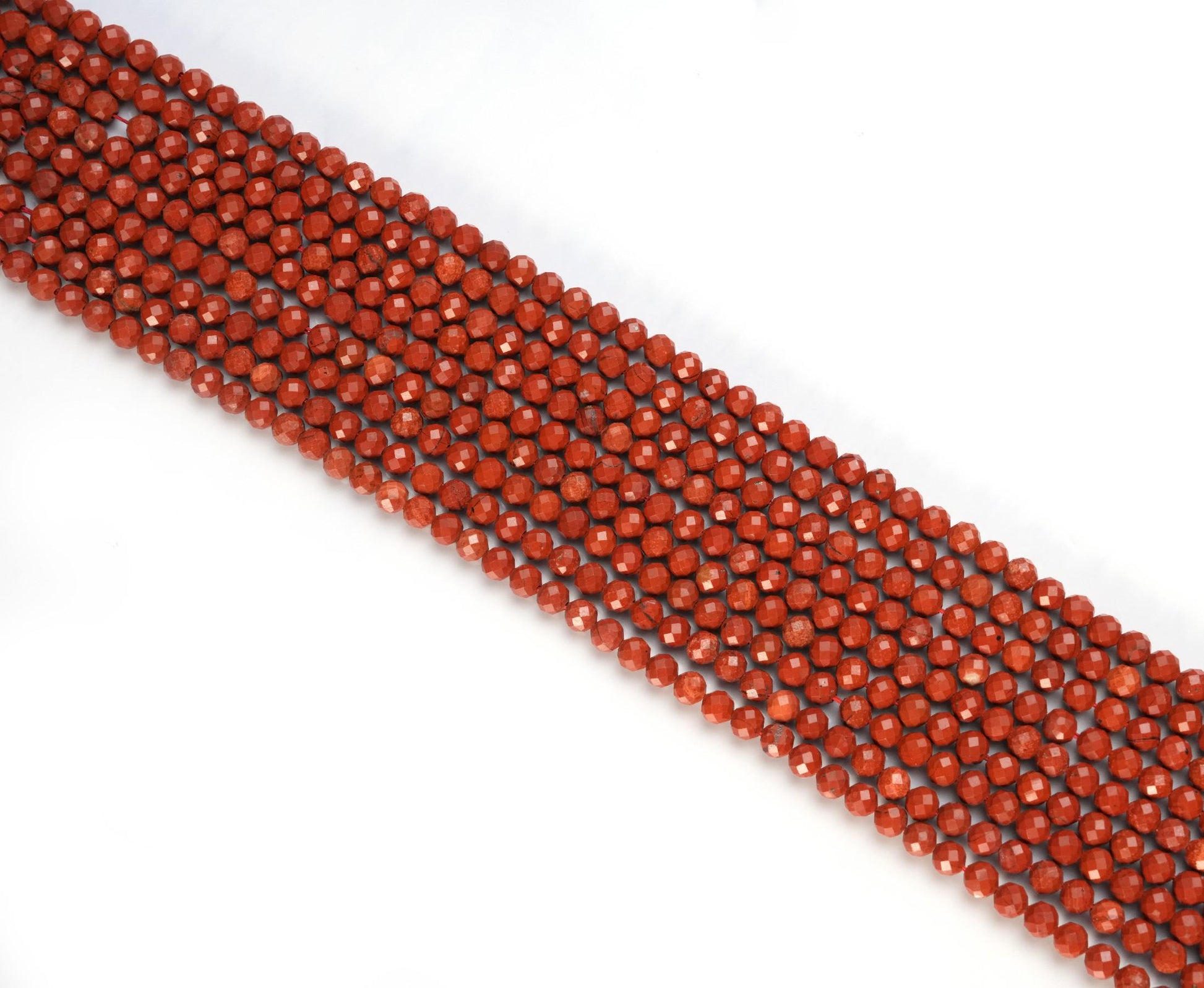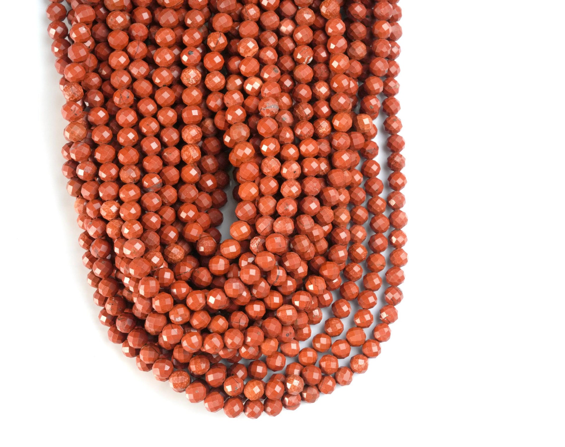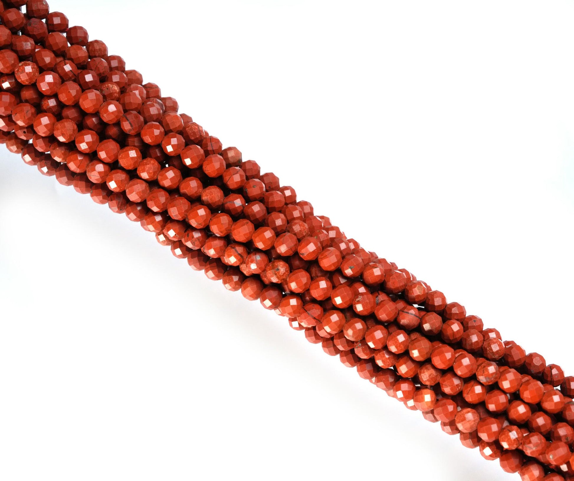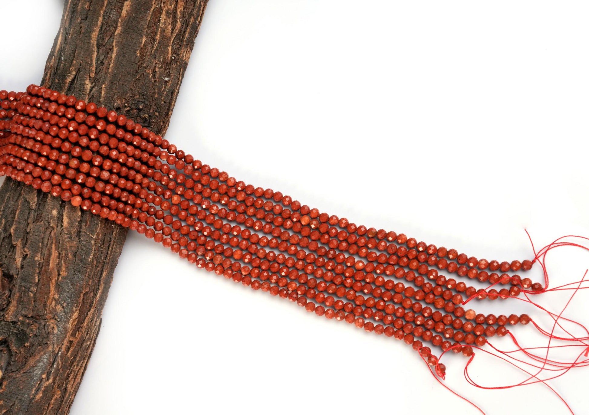 String Length : 15.5 Inches Each- **Premium Quality**: Crafted from top-tier natural red jasper, these micro-faceted beads are designed for durability and lasting beauty. Each bead is carefully selected to ensure you receive only the finest quality for your jewelry-making projects.- **Versatile Sizing Options**: Available in 2mm, 3mm, and 4mm sizes, these beads offer versatility for all your crafting needs. Whether you're creating delicate earrings or bold statement necklaces, you'll find the perfect fit to elevate your designs.- **Stunning Aesthetic Appeal**: The rich earthy tones of red jasper bring warmth and vibrancy to any piece. Its unique micro-faceted surface catches the light beautifully, adding a touch of sparkle that enhances both casual and formal wear.- **Crafting Made Easy**: With a convenient string length of 15.5 inches, these beads are ready to use right out of the package! No need for additional tools—simply cut and design as you envision. Perfect for both beginners and seasoned artisans alike!- **Empower Your Creativity**: Unleash your artistic potential with these exquisite gemstone beads! Ideal for making personalized gifts or unique accessories that reflect your style. Each bead carries its own story—infuse positivity into your creations with the grounding energy of red jasper.Transform your jewelry-making experience with our Natural Red Jasper Gemstone Round Micro Faceted Beads—a perfect blend of quality, beauty, and creativity awaits!Number of beads per 15.5" strandWe sell our products by the strand, not by the number of beads. The following chart is for reference only. It's for traditional round-shaped beads string continuously without spacer beads or knots in between.2mm in diameter- about 195pcs/strand 3mm in diameter- about 130pcs/strand 4mm in diameter- about 96pcs/strand 6mm in diameter- about 68pcs/strand Note: -Bead sizes are approximate and may have a variation of +/- 0.5mm. -Drill hole sizes are approximate and may have a variation of +/- 0.2mm. -All natural gemstones vary in color and pattern. We try our best to make our photos represent the real products in person.