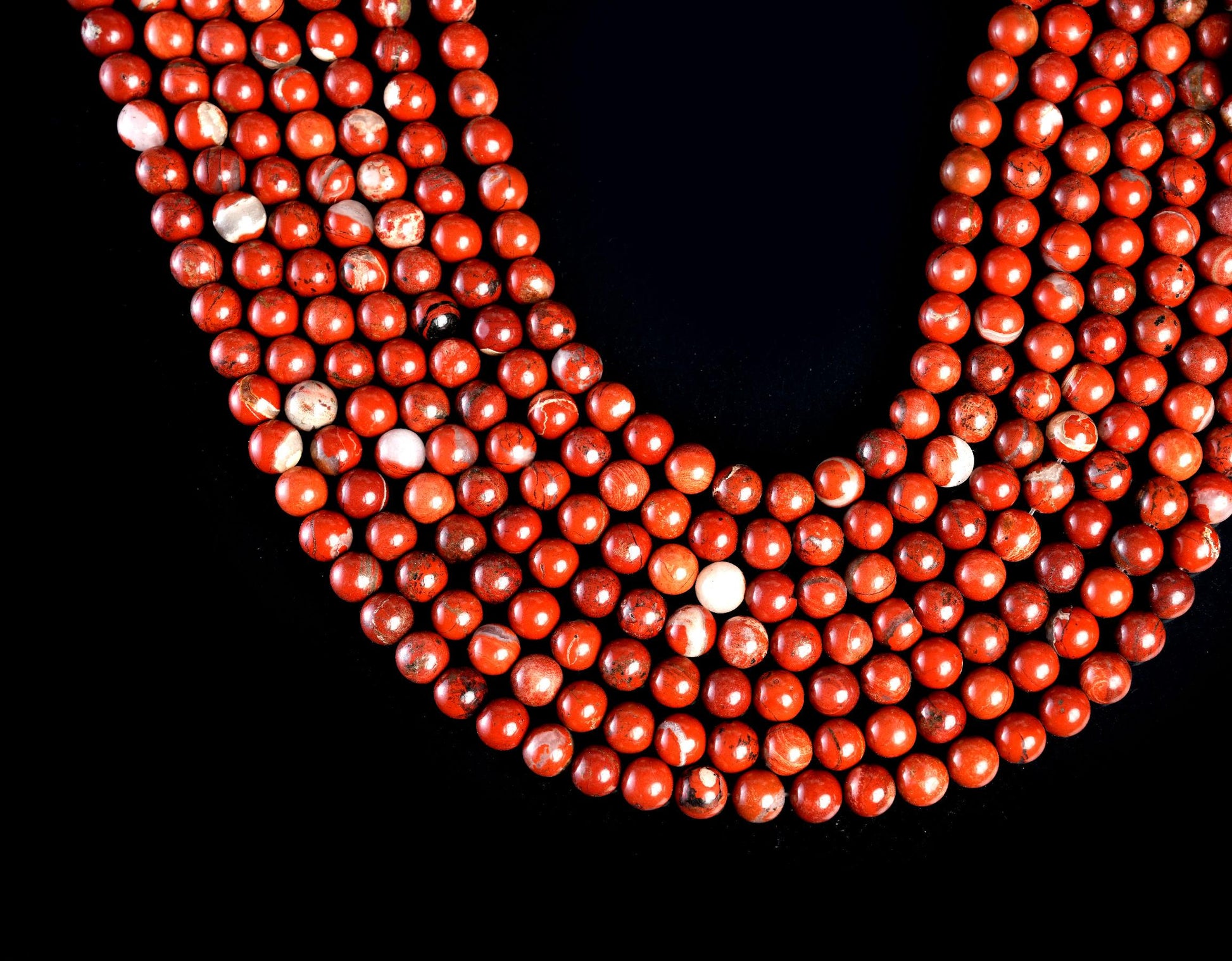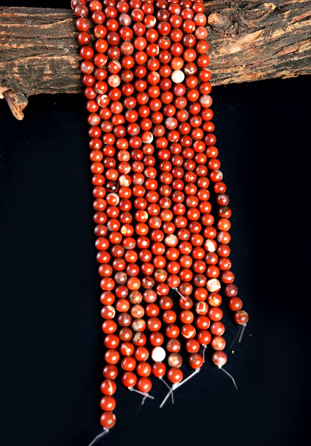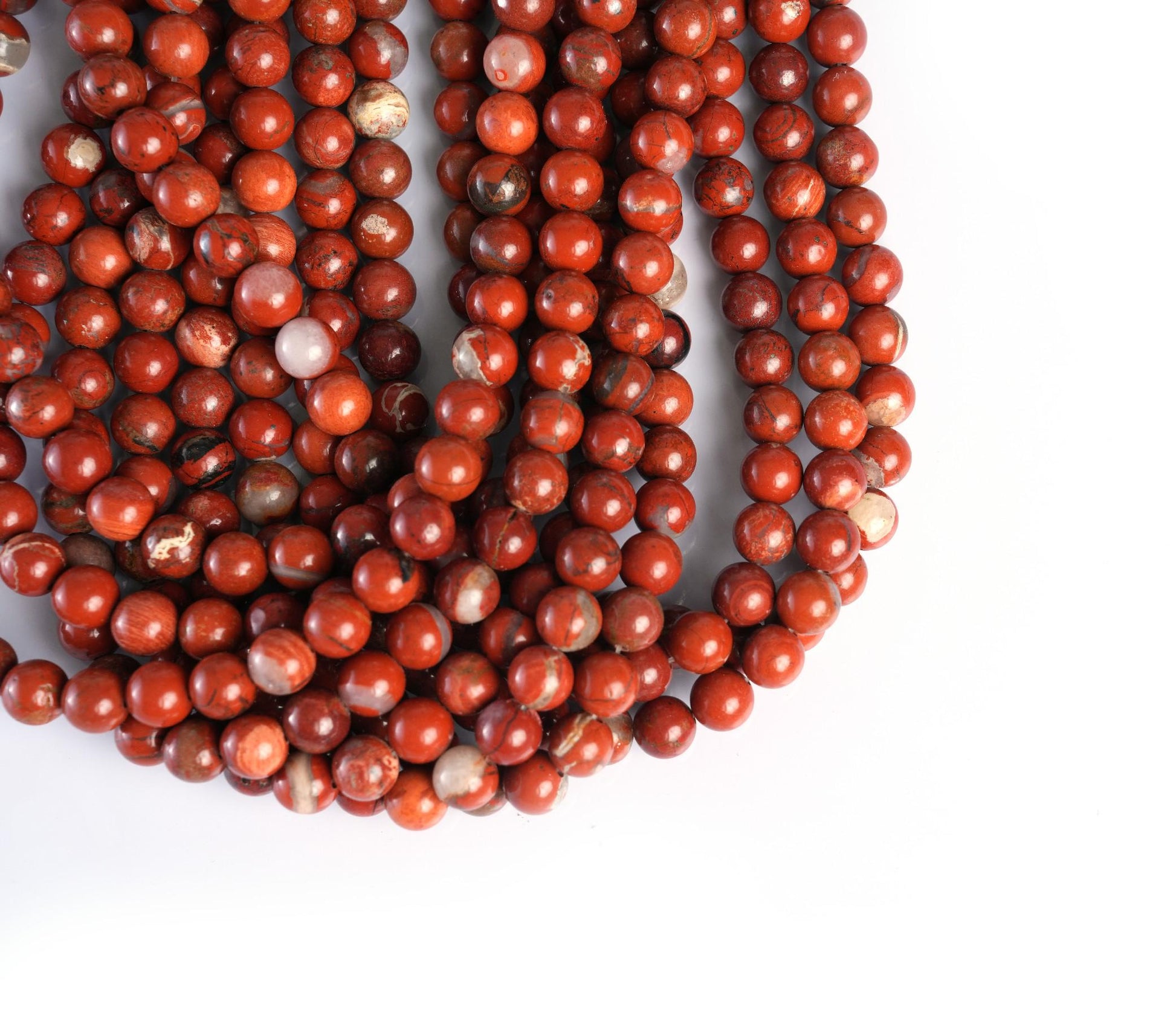 String Length : 15.5 Inches Each- **Premium Quality:** Crafted from top-tier natural red jasper, these gemstone beads offer unparalleled quality and durability, ensuring your jewelry creations stand the test of time.- **Versatile Sizing Options:** Available in 4mm, 6mm, 8mm, and 10mm sizes, these smooth round beads provide endless possibilities for your jewelry-making projects. Whether you're designing delicate necklaces or bold statement pieces, you'll find the perfect fit for every creation.- **Rich Color & Texture:** The deep, earthy tones of red jasper evoke a sense of warmth and grounding energy. Each bead features a unique pattern that adds character to your designs while enhancing their aesthetic appeal—perfect for both casual wear and special occasions.- **Design Excellence:** Measuring at a generous 15.5 inches long, this string of beads allows you to create multiple pieces without interruption. Their smooth finish ensures easy threading and comfortable wear—ideal for both beginners and seasoned crafters alike.- **Empower Your Creativity:** Unleash your artistic potential with these stunning beads! Not only do they elevate your crafting experience, but they also make thoughtful gifts for friends who share a passion for handmade jewelry. Transform ordinary moments into extraordinary memories with personalized creations that speak from the heart.Elevate your crafting journey today with our Natural Red Jasper Gemstone Round Smooth Beads—where quality meets creativity!Number of beads per 15.5" strandWe sell our products by the strand, not by the number of beads. The following chart is for reference only. It's for traditional round-shaped beads string continuously without spacer beads or knots in between.4mm in diameter- about 96pcs/strand 6mm in diameter- about 68pcs/strand 8mm in diameter- about 48pcs/strand 10mm in diameter- about 38pcs/strand Note: -Bead sizes are approximate and may have a variation of +/- 0.5mm. -Drill hole sizes are approximate and may have a variation of +/- 0.2mm. -All natural gemstones vary in color and pattern. We try our best to make our photos represent the real products in person.