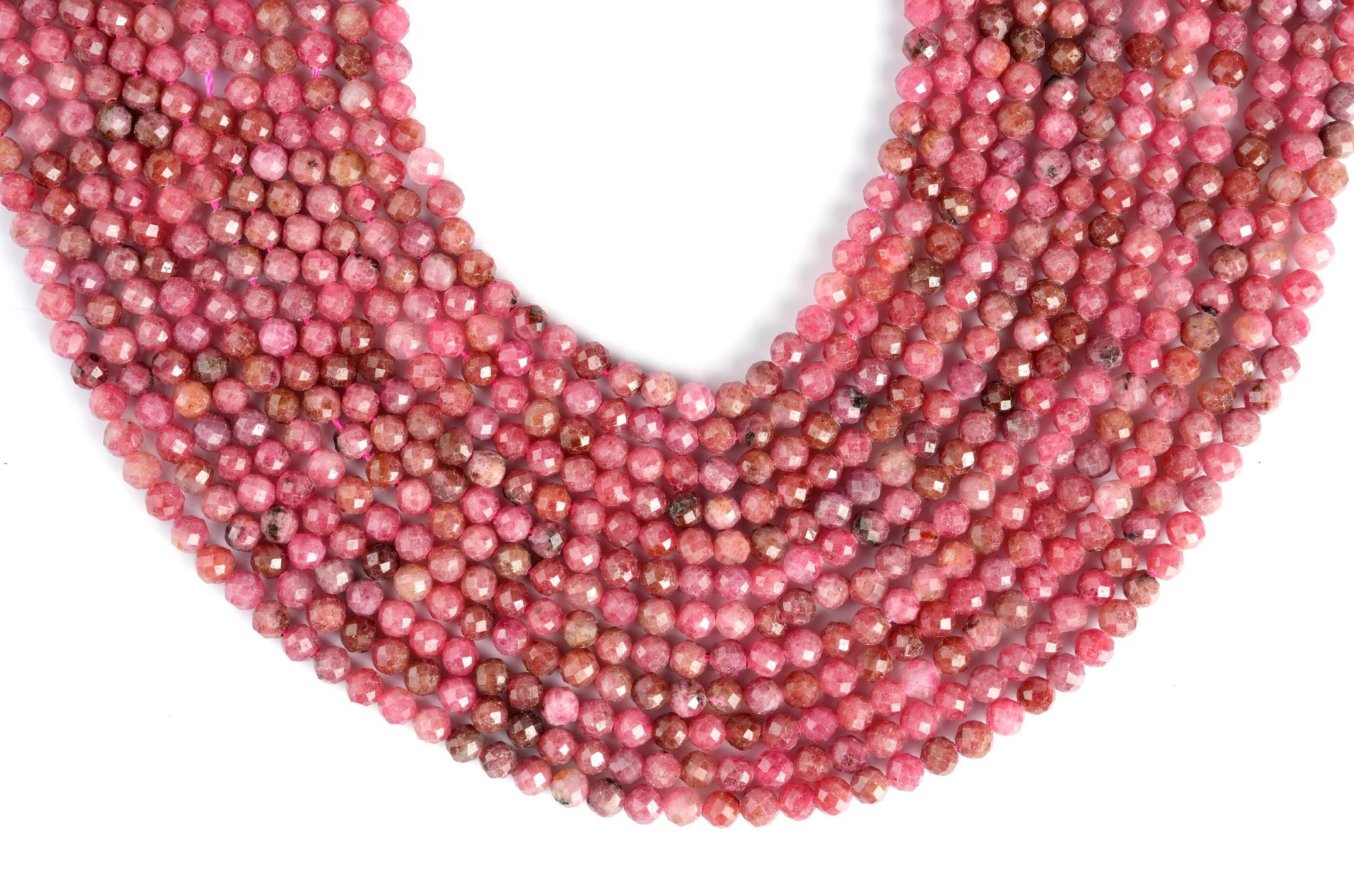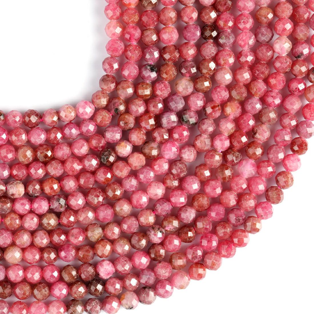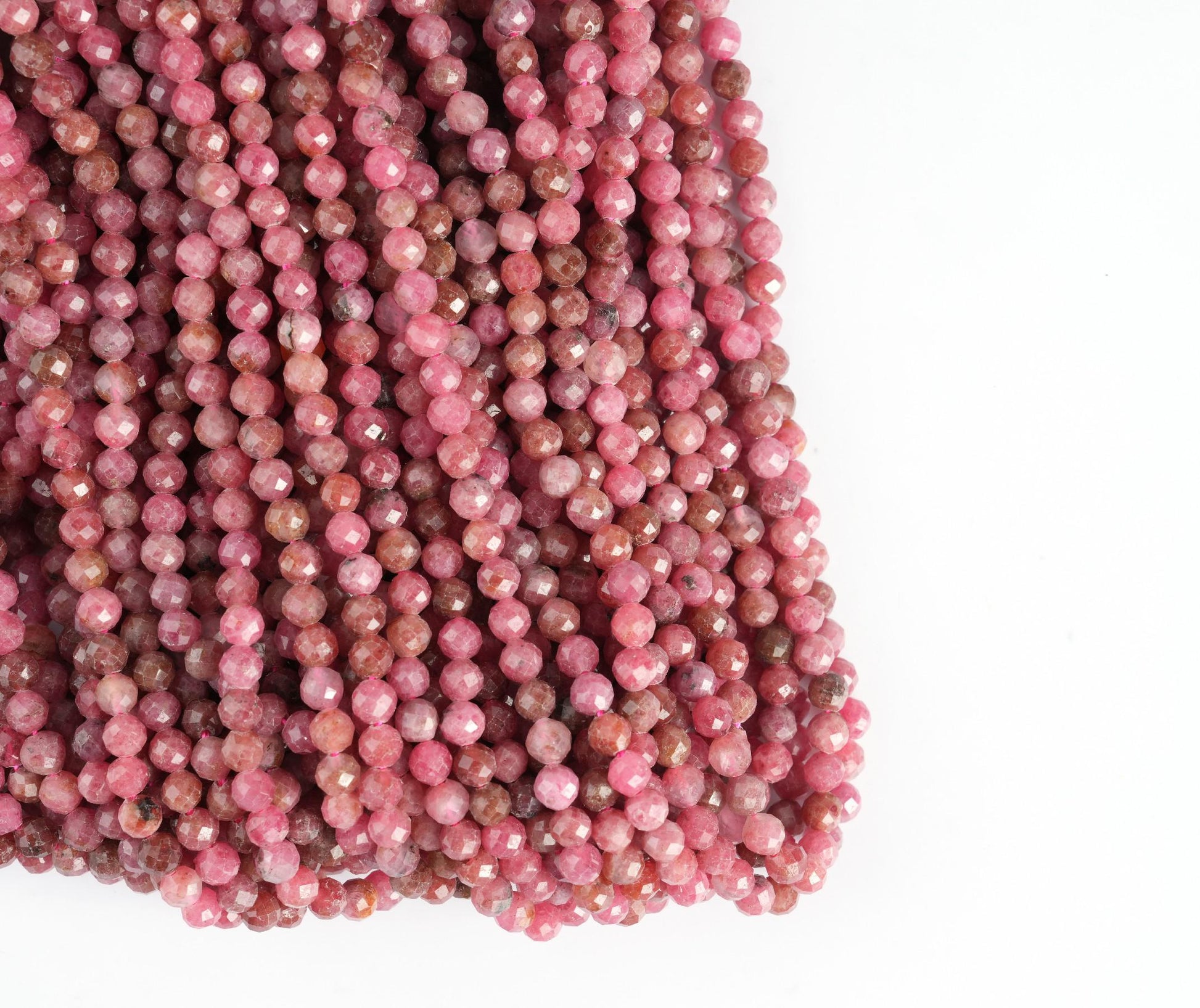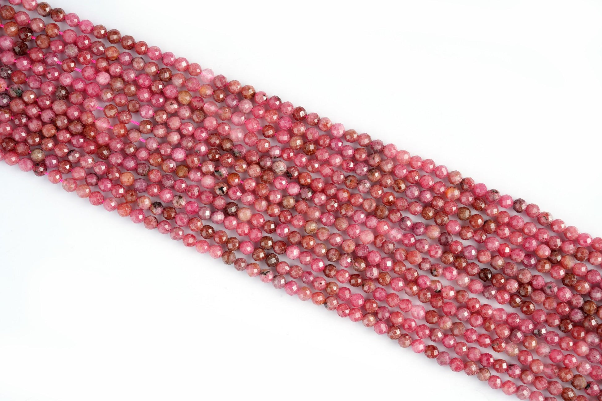 Natural Rhodochrosite Gemstone Round Micro Faceted Beads String 15.5 Inches Long 2/3/4/6 MM for Jewelry Making and Crafting - AS & JG