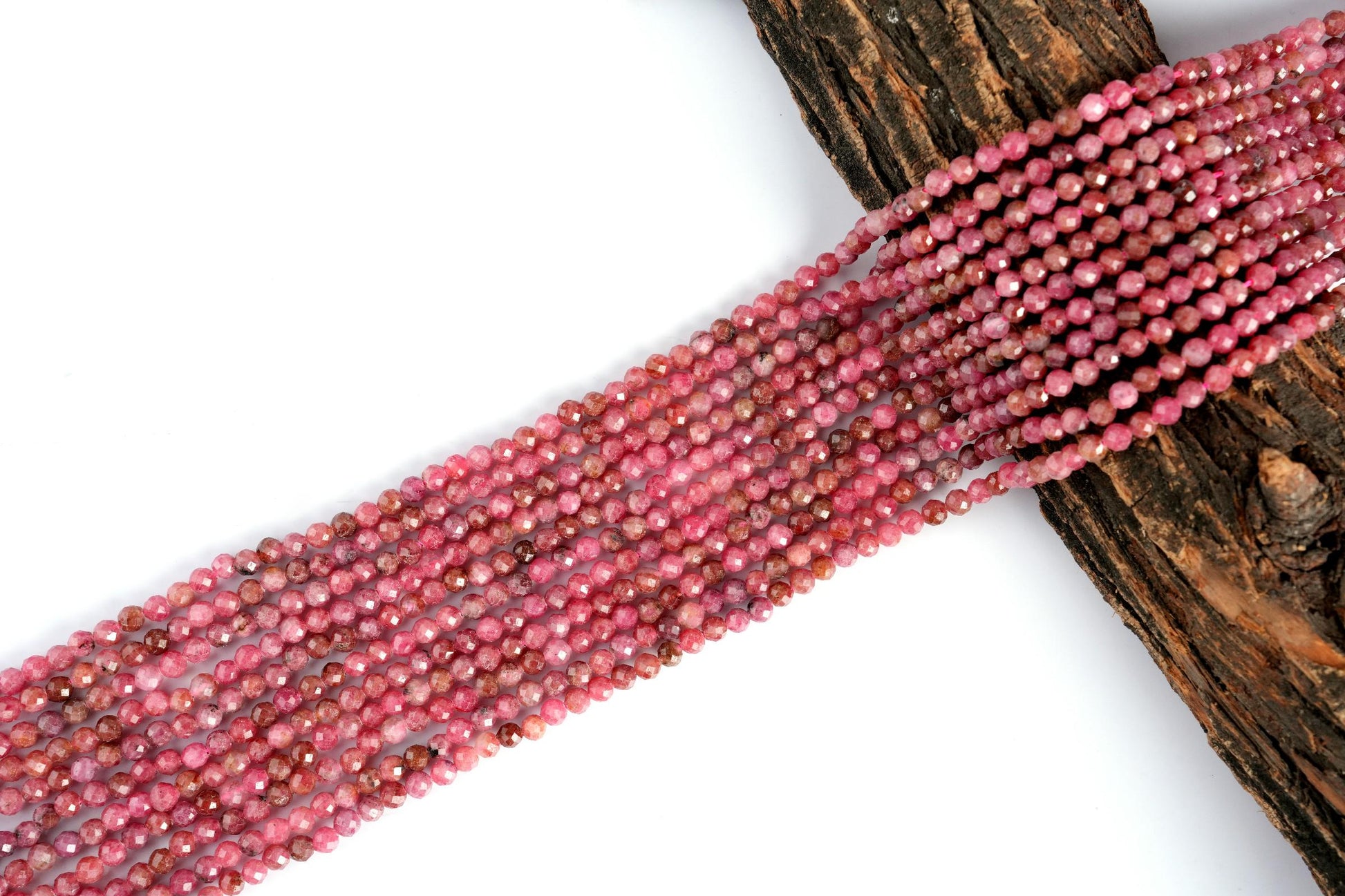 String Length : 15.5 Inches Each- **Premium Quality**: Crafted from authentic natural rhodochrosite, these micro-faceted beads boast exceptional quality and durability, ensuring your jewelry creations stand the test of time.- **Versatile Sizes**: Available in 2mm, 3mm, 4mm, and 6mm sizes, these beads offer endless possibilities for your crafting projects. Whether you're designing delicate necklaces or bold statement pieces, you'll find the perfect fit to express your unique style.- **Stunning Aesthetic**: Each bead features a mesmerizing blend of soft pinks and earthy tones that evoke feelings of warmth and love. Their micro-faceted surface catches the light beautifully, adding an enchanting sparkle to any design.- **Crafting Made Easy**: With a generous string length of 15.5 inches, you have ample material to work with—ideal for both beginners and seasoned artisans alike. Create stunning jewelry effortlessly or use them in various crafts like home décor or personalized gifts.- **Emotional Connection**: Known as the "stone of love," rhodochrosite is believed to promote emotional healing and self-love. Incorporating these beads into your designs not only enhances their beauty but also adds a meaningful touch that resonates with the wearer on a deeper level.Transform your creative visions into reality with our Natural Rhodochrosite Gemstone Round Micro Faceted Beads! Perfect for those who appreciate beauty infused with purpose.Number of beads per 15.5" strandWe sell our products by the strand, not by the number of beads. The following chart is for reference only. It's for traditional round-shaped beads strung continuously without spacer beads or knots in between.2mm in diameter- about 195pcs/strand 3mm in diameter- about 130pcs/strand 4mm in diameter- about 96pcs/strand 6mm in diameter- about 68pcs/strand Note: -Bead sizes are approximate and may have a variation of +/- 0.5mm. -Drill hole sizes are approximate and may have a variation of +/- 0.2mm. -All natural gemstones vary in color and pattern. We try our best to make our photos represent the real products in person.