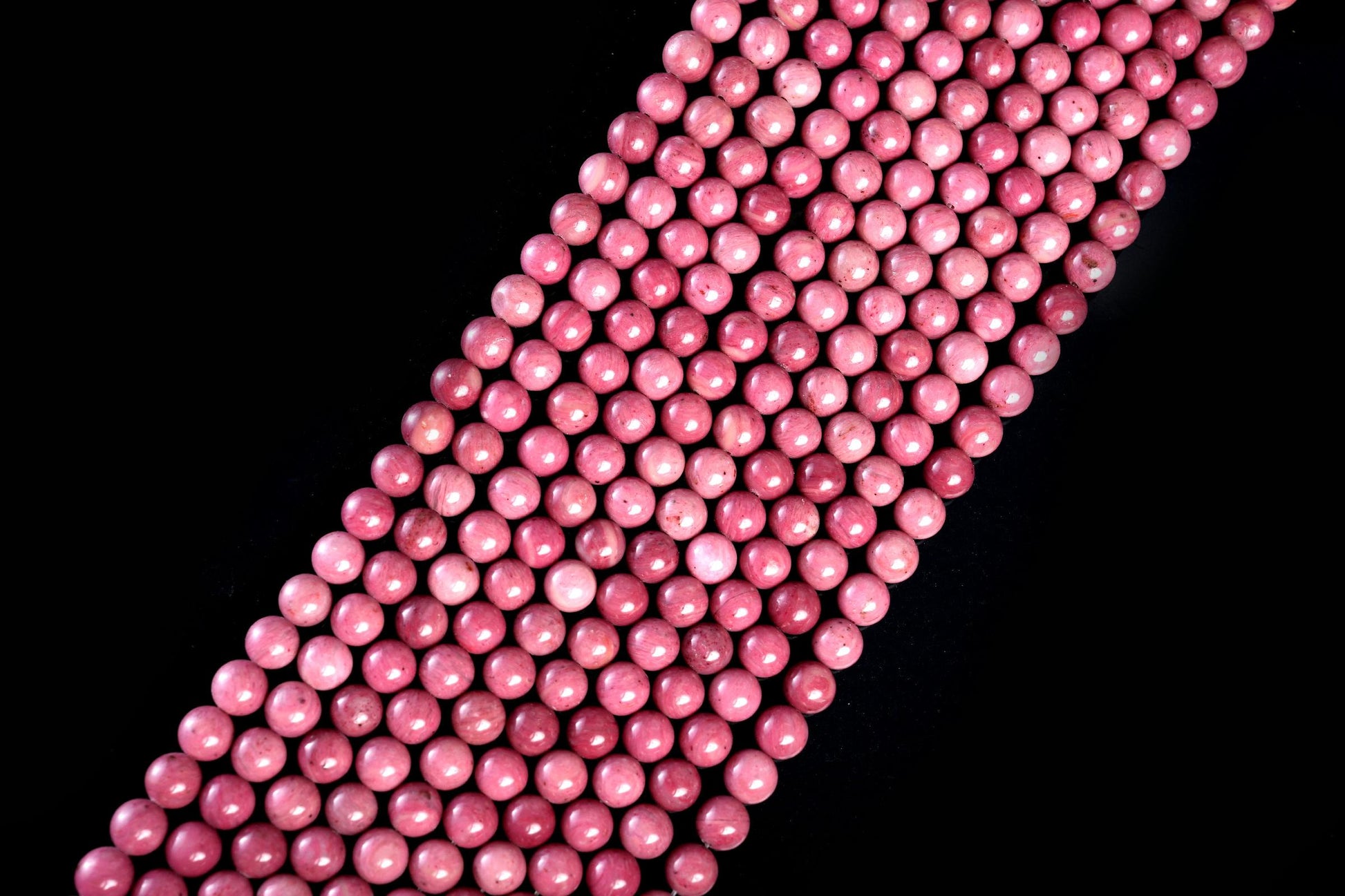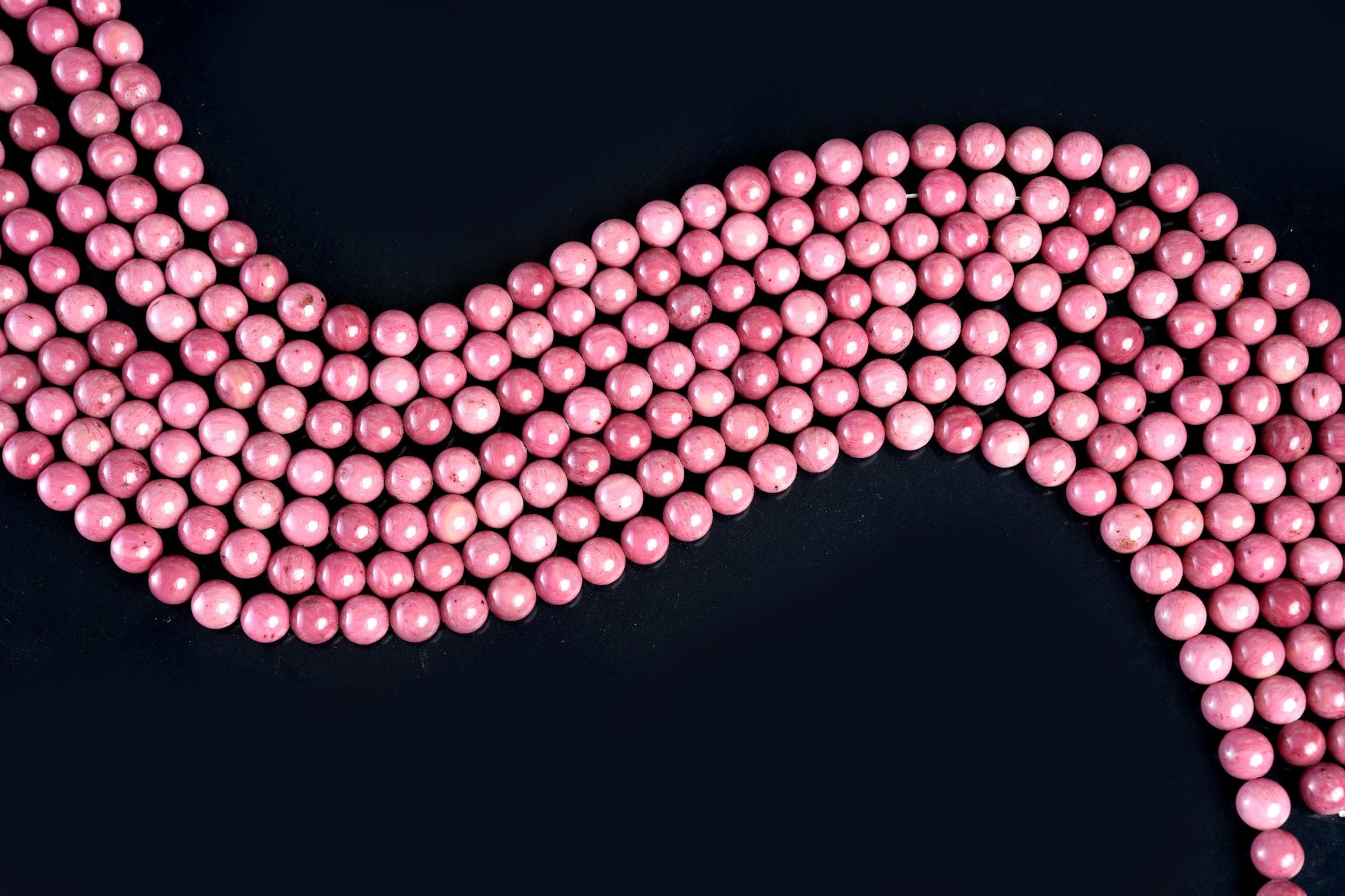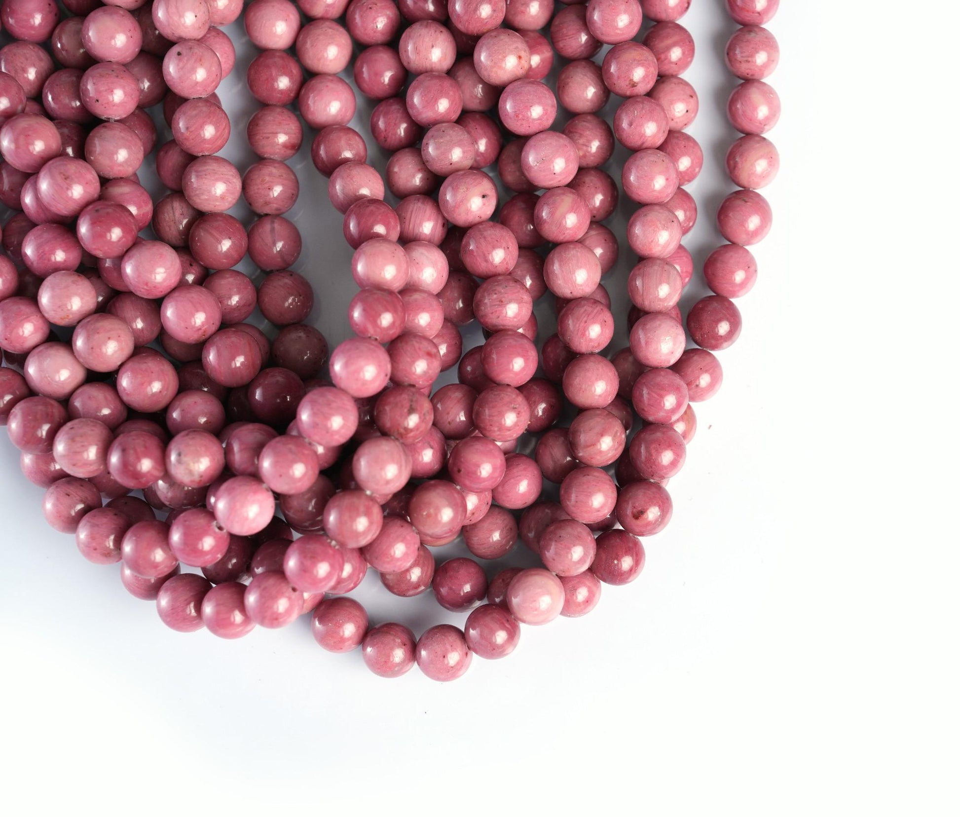String Length : 15.5 Inches Each- **Premium Quality**: Crafted from authentic Rhodonite gemstones, these beads offer exceptional quality and durability, ensuring your jewelry creations stand the test of time.- **Versatile Sizes**: Available in 4mm, 6mm, 8mm, and 10mm options, these beads cater to all your crafting needs. Whether you're designing delicate necklaces or bold statement pieces, you'll find the perfect size to bring your vision to life.- **Natural Beauty**: Each bead showcases unique patterns and colors inherent to Rhodonite. The stunning pink hues with black veining add a touch of elegance and individuality to every piece you create.- **Easy Crafting Experience**: The smooth finish of these round beads allows for effortless stringing and design. Spend less time fussing over materials and more time enjoying the creative process!- **Emotional Connection**: Known for its healing properties, Rhodonite is believed to promote emotional balance and love. Incorporate this beautiful gemstone into your designs not just as an accessory but as a meaningful gift that resonates with positivity.- **Perfect Length**: With a generous length of 15.5 inches per string, you have ample material for multiple projects—ideal for both beginners looking to experiment and seasoned crafters aiming for larger creations.Elevate your jewelry-making experience with our Natural Rhodonite AB+ Gemstone Round Smooth Beads! Transform ordinary moments into extraordinary expressions of art while enjoying the unique benefits each bead brings.Number of beads per 15.5" strandWe sell our products by the strand, not by the number of beads. The following chart is for reference only. It's for traditional round-shaped beads string continuously without spacer beads or knots in between.4mm in diameter- about 96pcs/strand 6mm in diameter- about 68pcs/strand 8mm in diameter- about 48pcs/strand 10mm in diameter- about 38pcs/strand Note: -Bead sizes are approximate and may have a variation of +/- 0.5mm. -Drill hole sizes are approximate and may have a variation of +/- 0.2mm. -All natural gemstones vary in color and pattern. We try our best to make our photos represent the real products in person.