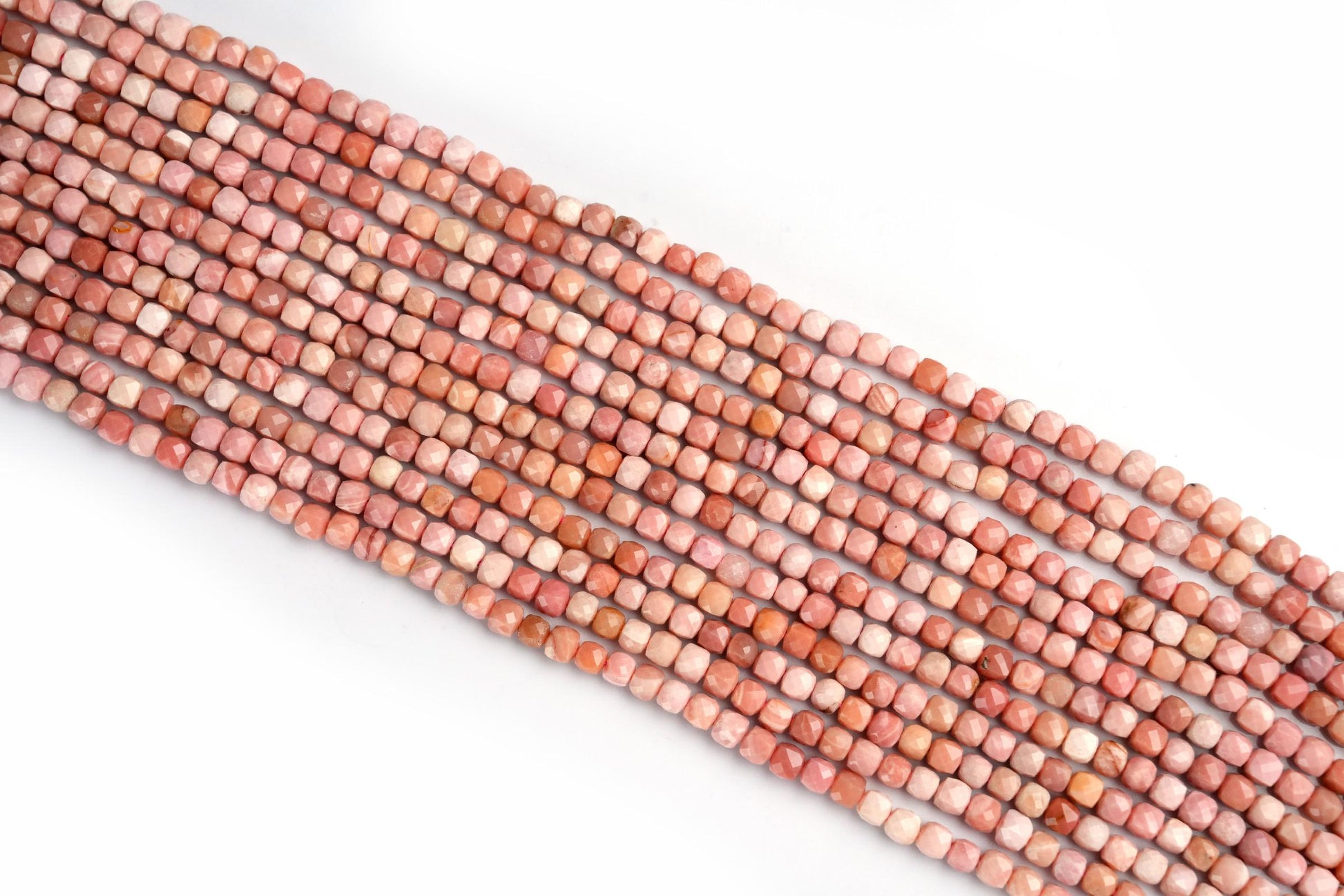 String Length : 15.5 Inches Each- **Premium Quality**: Crafted from exquisite natural rhodonite, these micro-faceted beads are designed to elevate your jewelry-making experience with their stunning color and durability.- **Versatile Sizes**: Available in 2mm, 3mm, 4mm, and 6mm options, this string of beads (15.5 inches long) allows you to mix and match for endless creative possibilities—perfect for everything from delicate bracelets to bold statement pieces.- **Unique Aesthetic Appeal**: Each bead features a distinctive cube shape that catches the light beautifully, adding a touch of elegance and sophistication to your creations. The unique patterns within the rhodonite ensure that no two pieces are alike!- **Inspiration for Creativity**: Whether you're a seasoned jewelry maker or just starting out, these beads inspire creativity. Use them in necklaces, earrings, or even home decor projects—let your imagination run wild!- **Healing Properties**: Beyond aesthetics, rhodonite is known for its emotional healing properties. Incorporate these beads into your designs as a meaningful gift for loved ones or yourself—a reminder of love and compassion.Transform your crafting journey with our Natural Rhodonite Gemstone Cube Beads! Perfectly blend beauty with purpose while creating one-of-a-kind jewelry that tells a story.Number of beads per 15.5" strandWe sell our products by the strand, not by the number of beads. The following chart is for reference only. It's for traditional round-shaped beads strung continuously without spacer beads or knots in between.2mm in diameter- about 195pcs/strand 3mm in diameter- about 130pcs/strand 4mm in diameter- about 96pcs/strand 6mm in diameter- about 68pcs/strand Note: -Bead sizes are approximate and may have a variation of +/- 0.5mm. -Drill hole sizes are approximate and may have a variation of +/- 0.2mm. -All natural gemstones vary in color and pattern. We try our best to make our photos represent the real products in person.