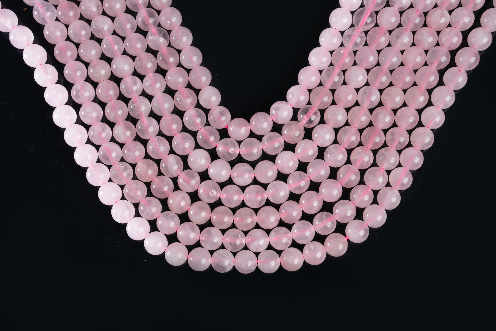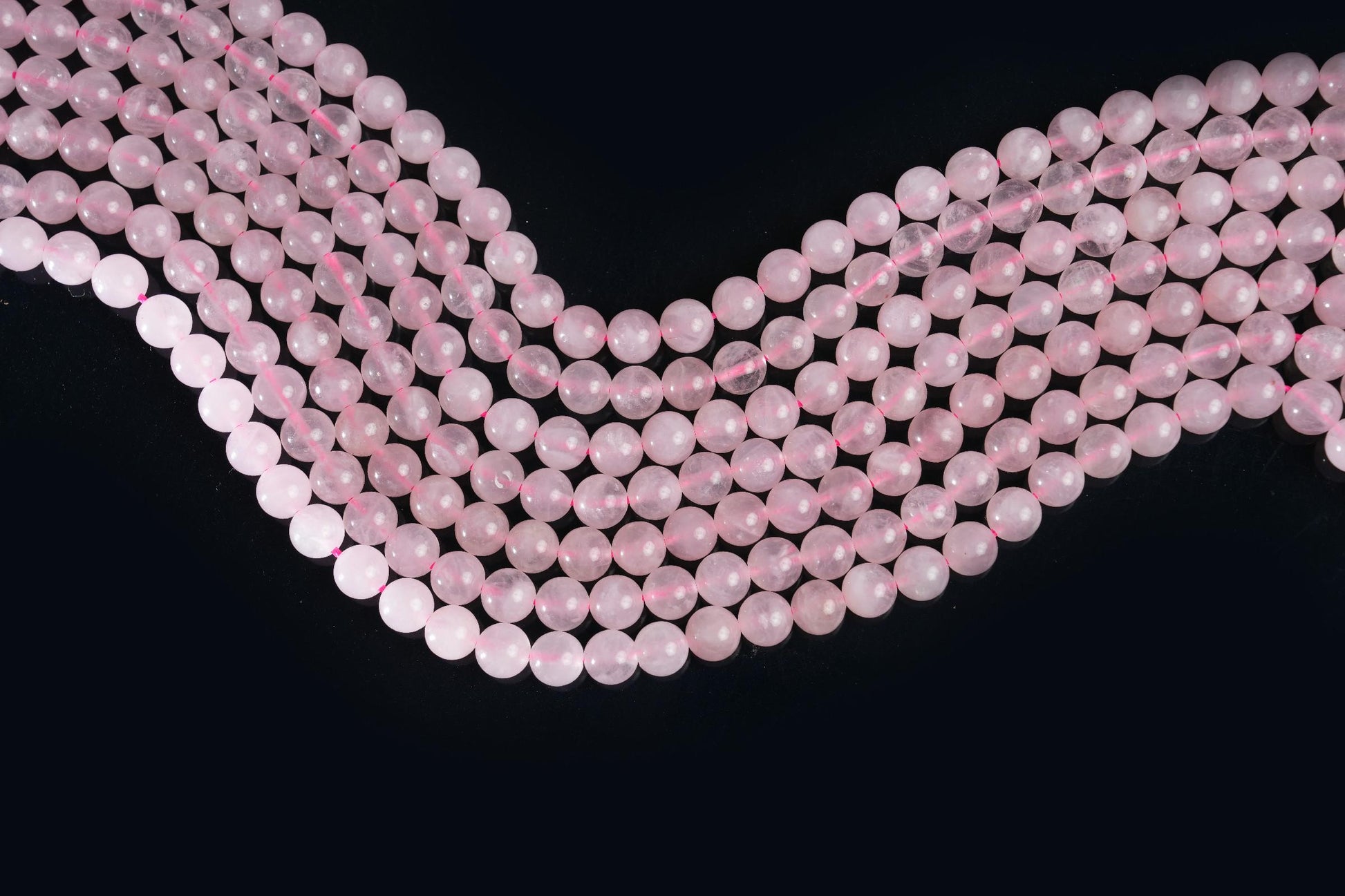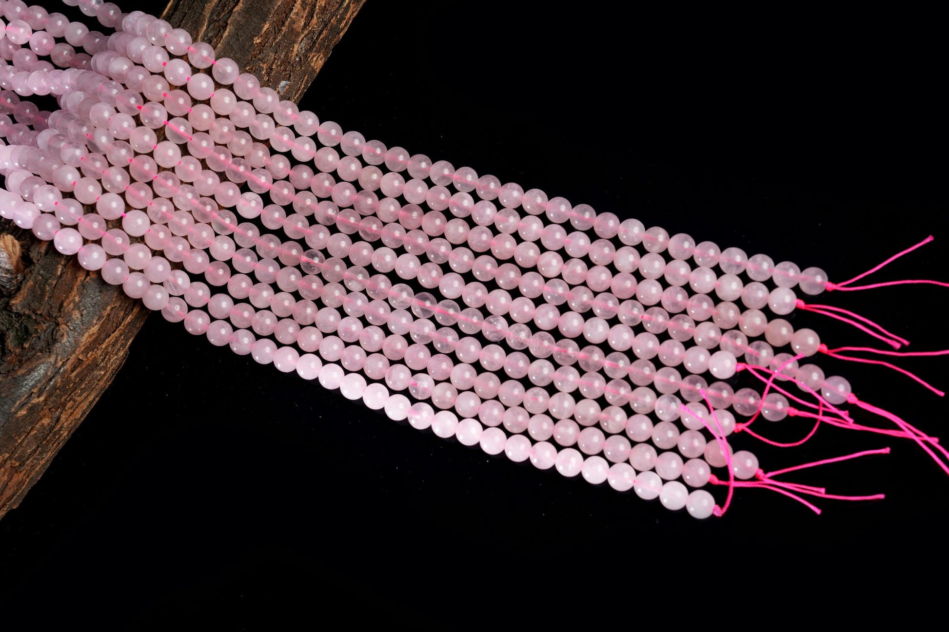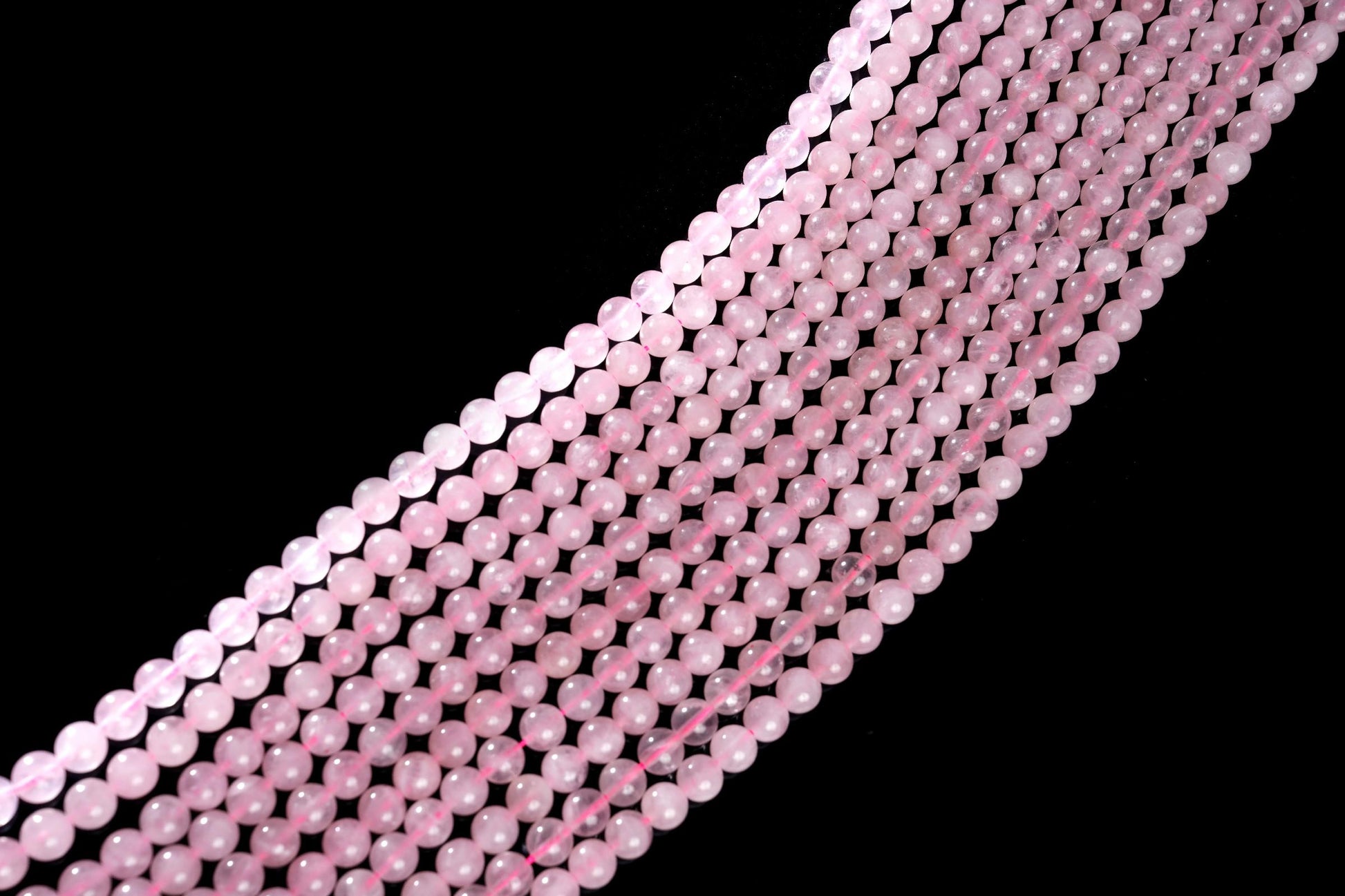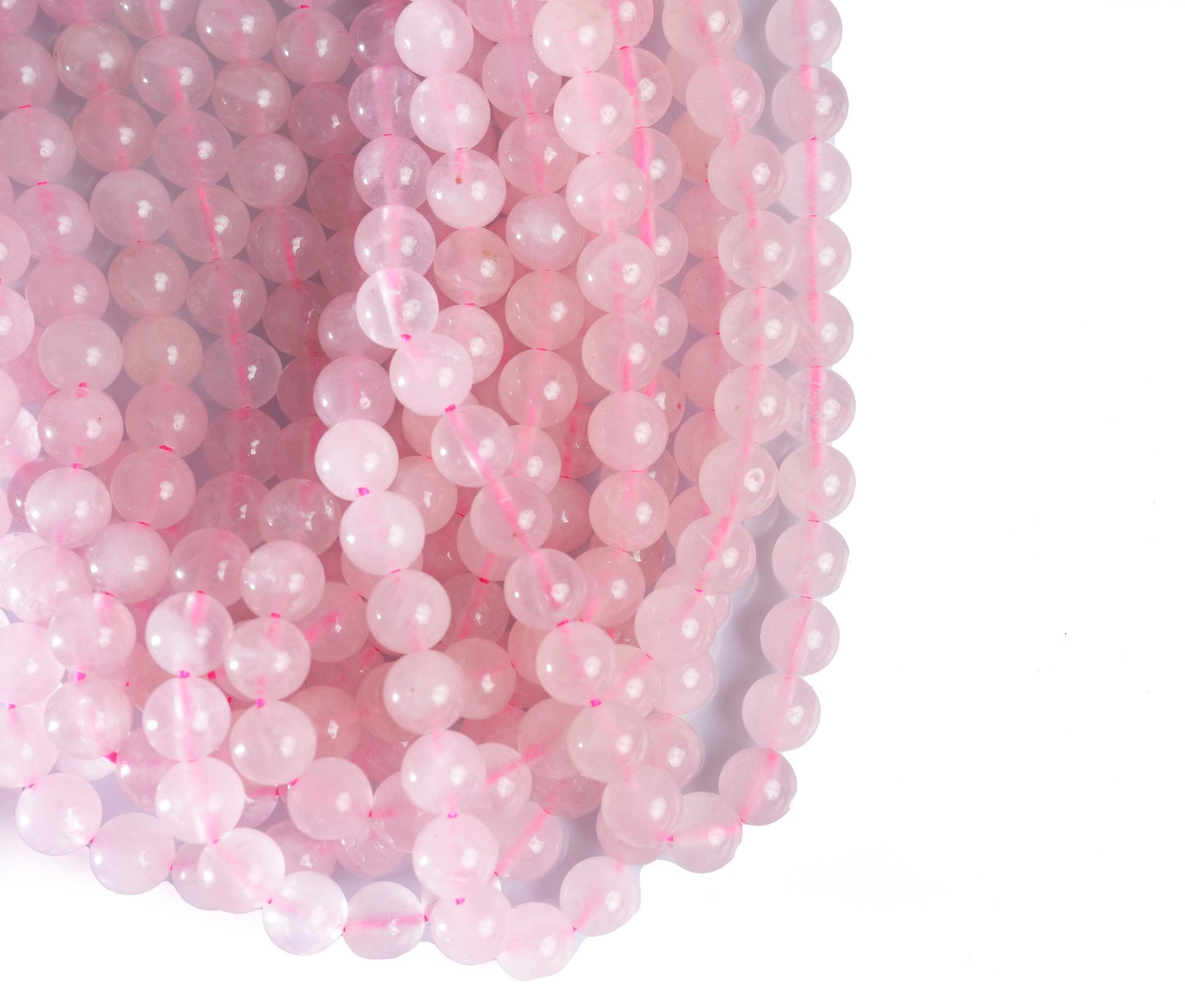 String Length : 15.5 Inches Each- **Premium Quality:** Crafted from top-tier natural rose quartz, these smooth beads exude elegance and durability, ensuring your jewelry creations stand the test of time.- **Versatile Sizes:** Available in 4mm, 6mm, 8mm, and 10mm options, these beads offer endless possibilities for your crafting projects. Whether you're designing delicate bracelets or statement necklaces, you'll find the perfect size to bring your vision to life.- **Healing Properties:** Known as the stone of love and compassion, rose quartz promotes emotional healing and self-love. Incorporate this powerful gemstone into your jewelry to create pieces that not only look beautiful but also resonate with positive energy.- **Design Excellence:** Each bead is round and smooth, providing a luxurious feel that enhances any design. The soft pink hues vary slightly between each bead, adding a unique touch that makes every piece you create truly one-of-a-kind.- **Crafting Made Easy:** With a generous length of 15.5 inches per string, you have ample material to work with—perfect for both beginners and seasoned artisans alike! Elevate your DIY projects effortlessly with these stunning beads that inspire creativity.Transform your jewelry-making experience with our Natural Rose Quartz Gemstone Round Smooth Beads. Let each creation tell a story of beauty and positivity!Number of beads per 15.5" strandWe sell our products by the strand, not by the number of beads. The following chart is for reference only. It's for traditional round-shaped beads string continuously without spacer beads or knots in between.4mm in diameter- about 96pcs/strand 6mm in diameter- about 68pcs/strand 8mm in diameter- about 48pcs/strand 10mm in diameter- about 38pcs/strand Note: -Bead sizes are approximate and may have a variation of +/- 0.5mm. -Drill hole sizes are approximate and may have a variation of +/- 0.2mm. -All natural gemstones vary in color and pattern. We try our best to make our photos represent the real products in person.